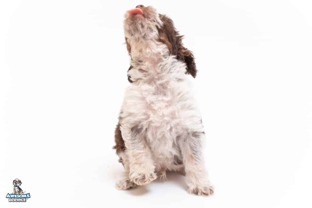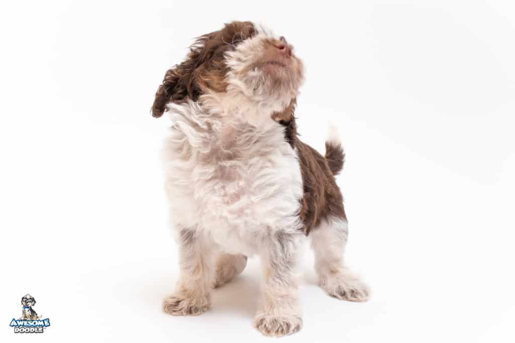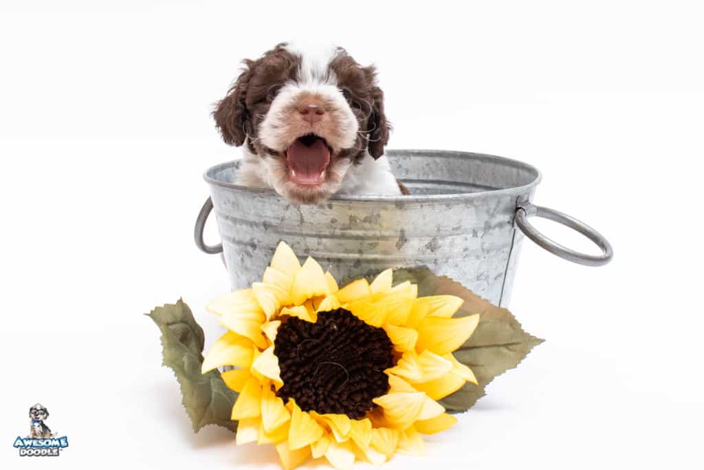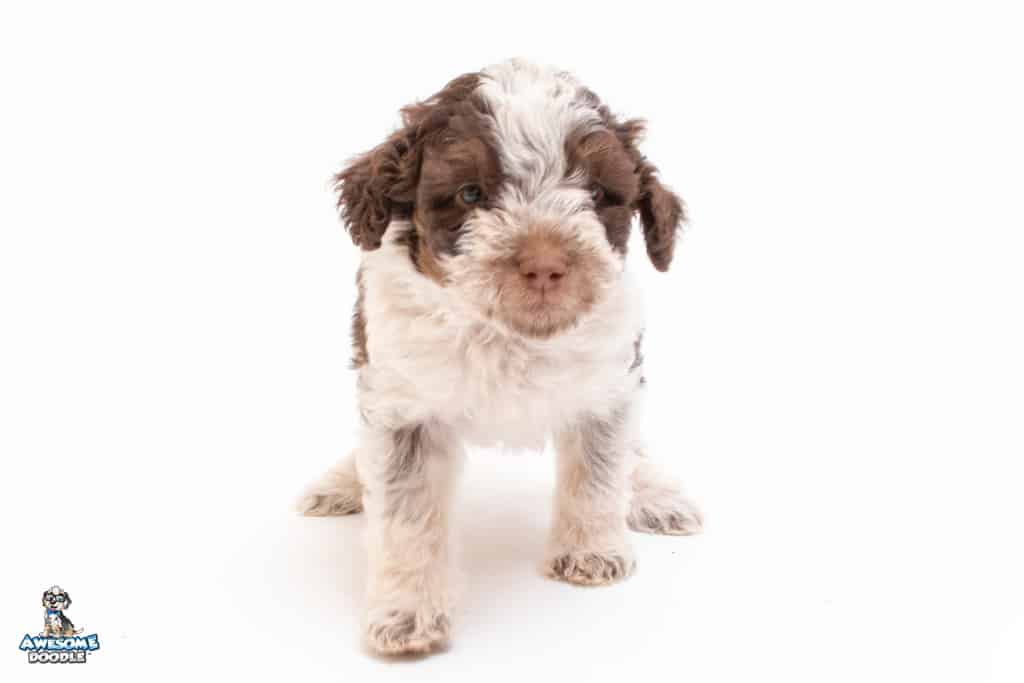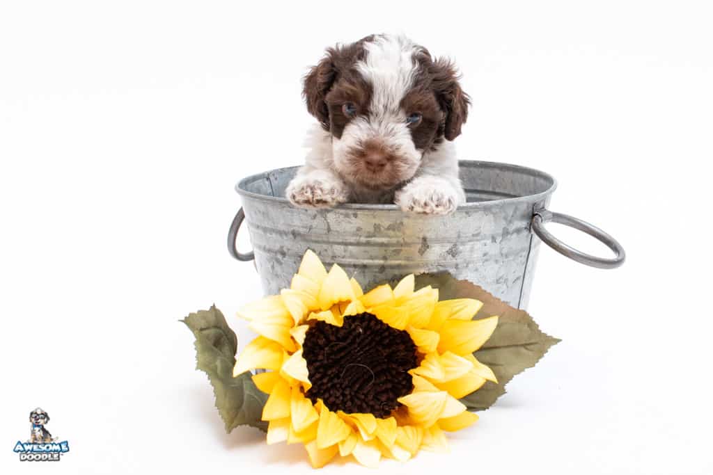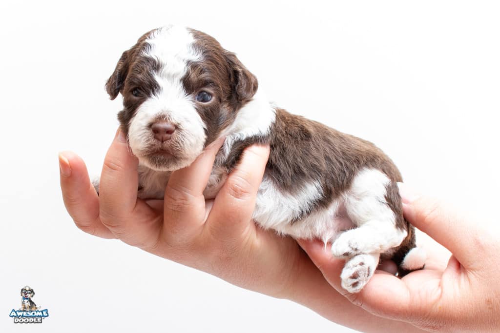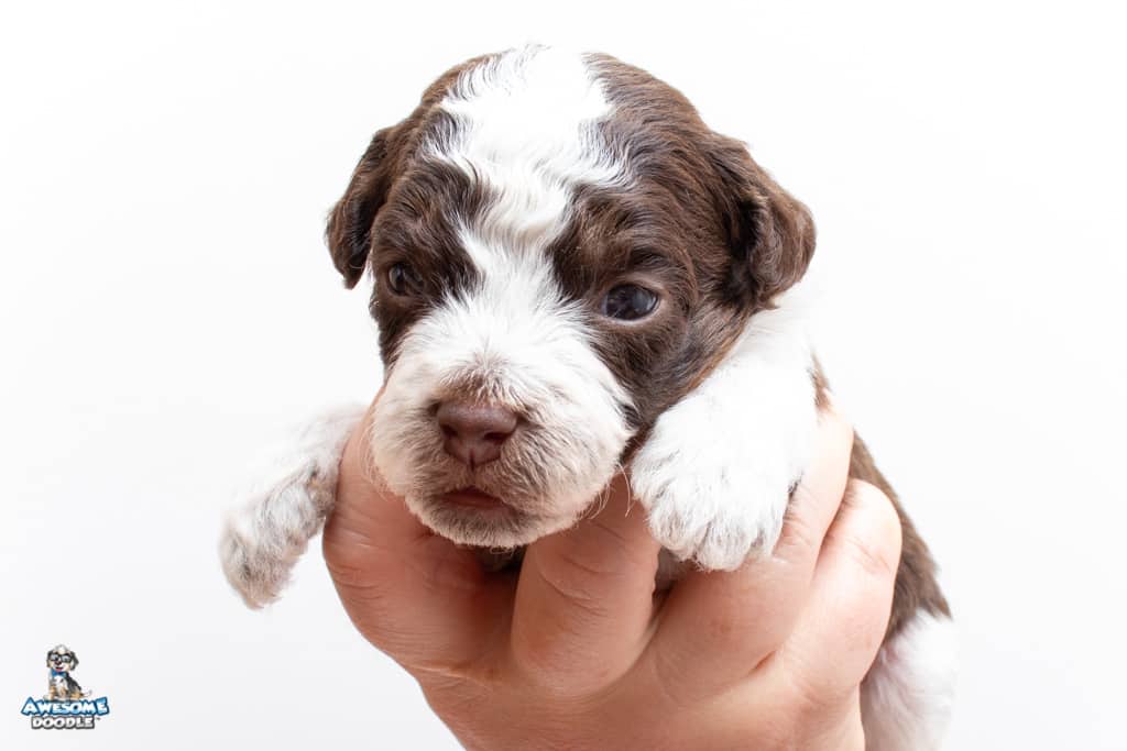Henry is a male Chocolate Tri-Color F1 AussieDoodle puppy.
