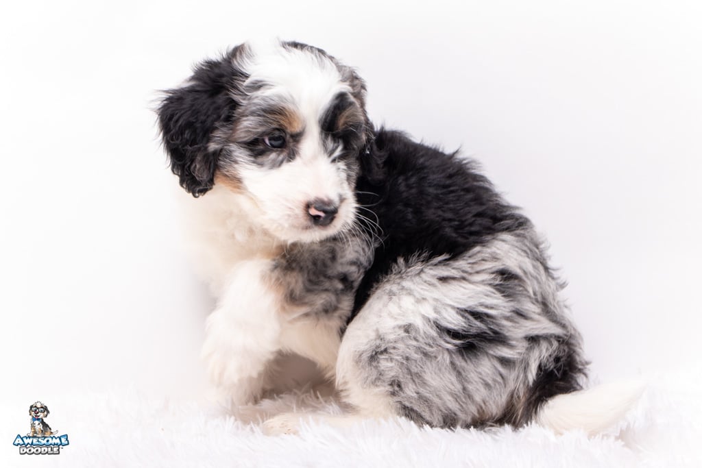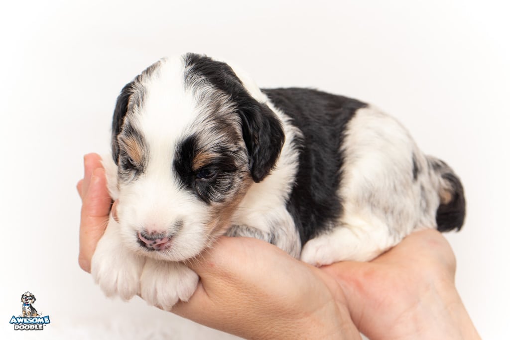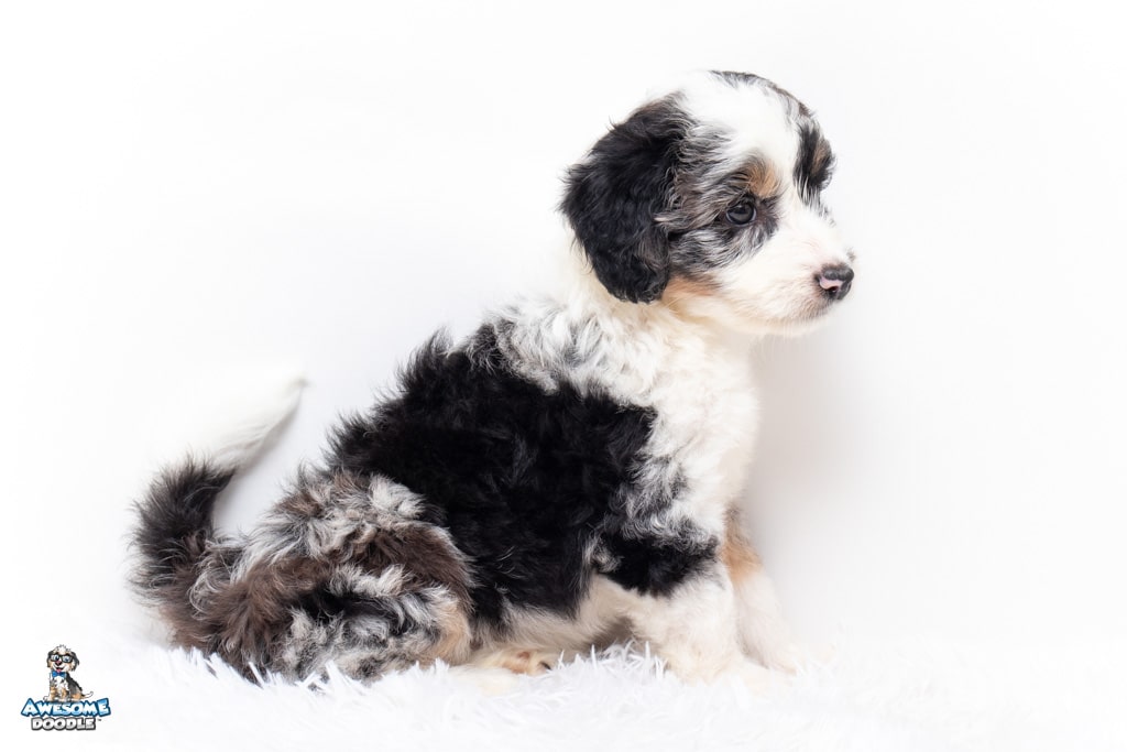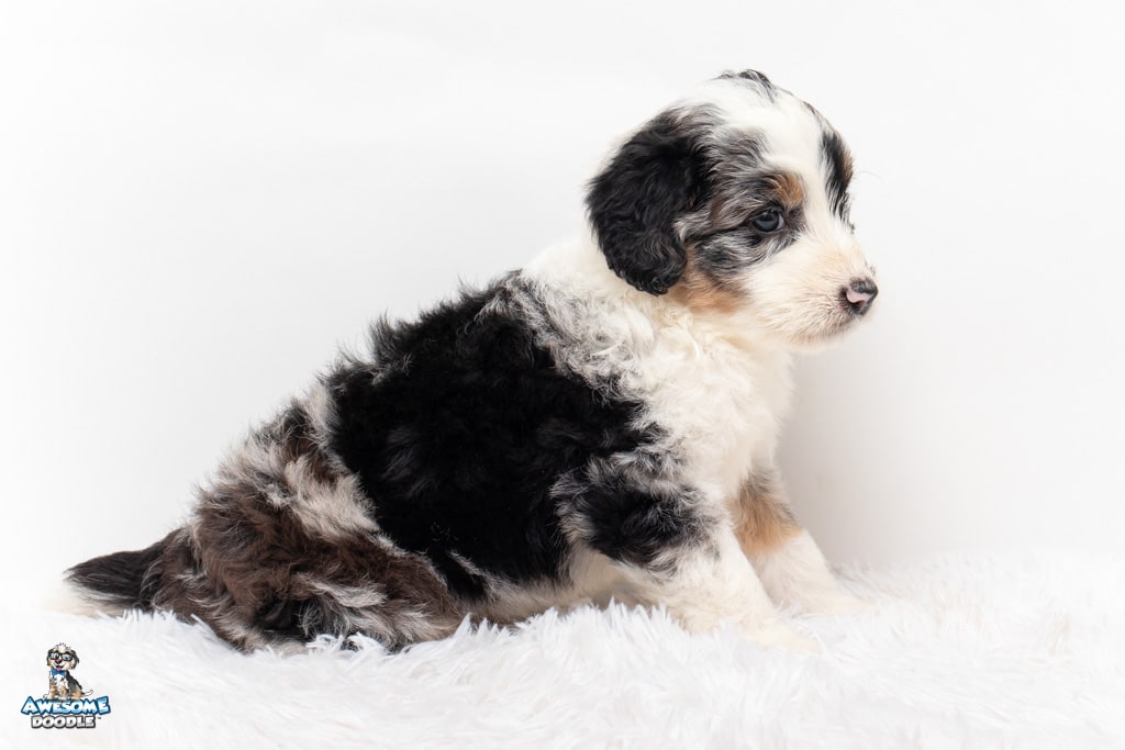 Mars is a male Blue Merle w/ White & Copper F1 AussieDoodle puppy.