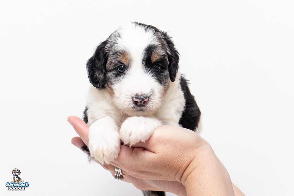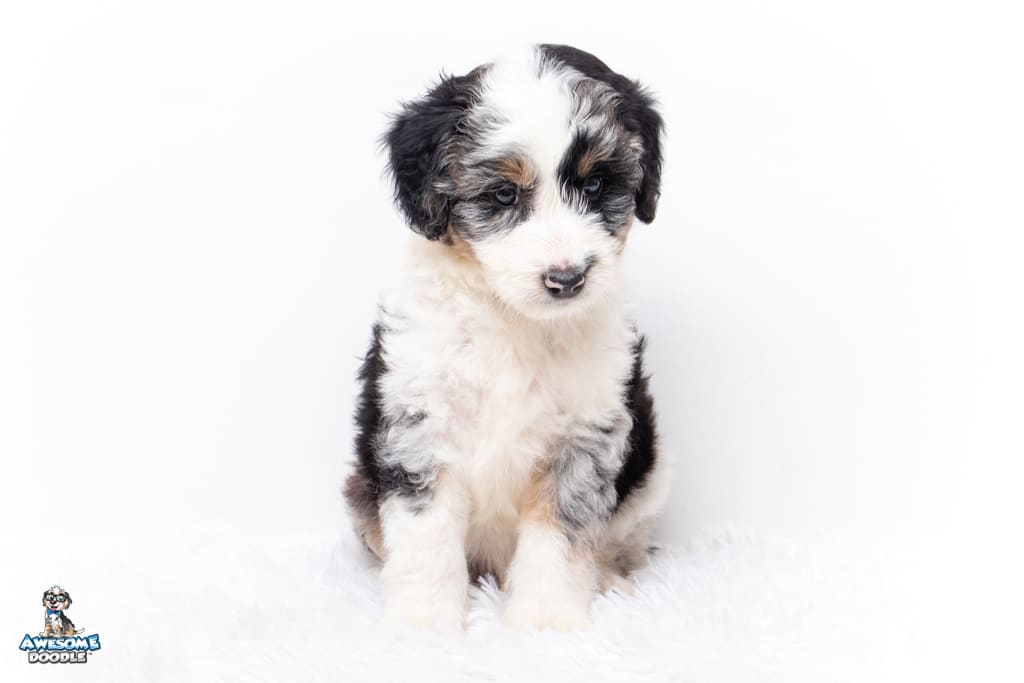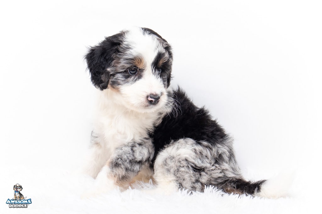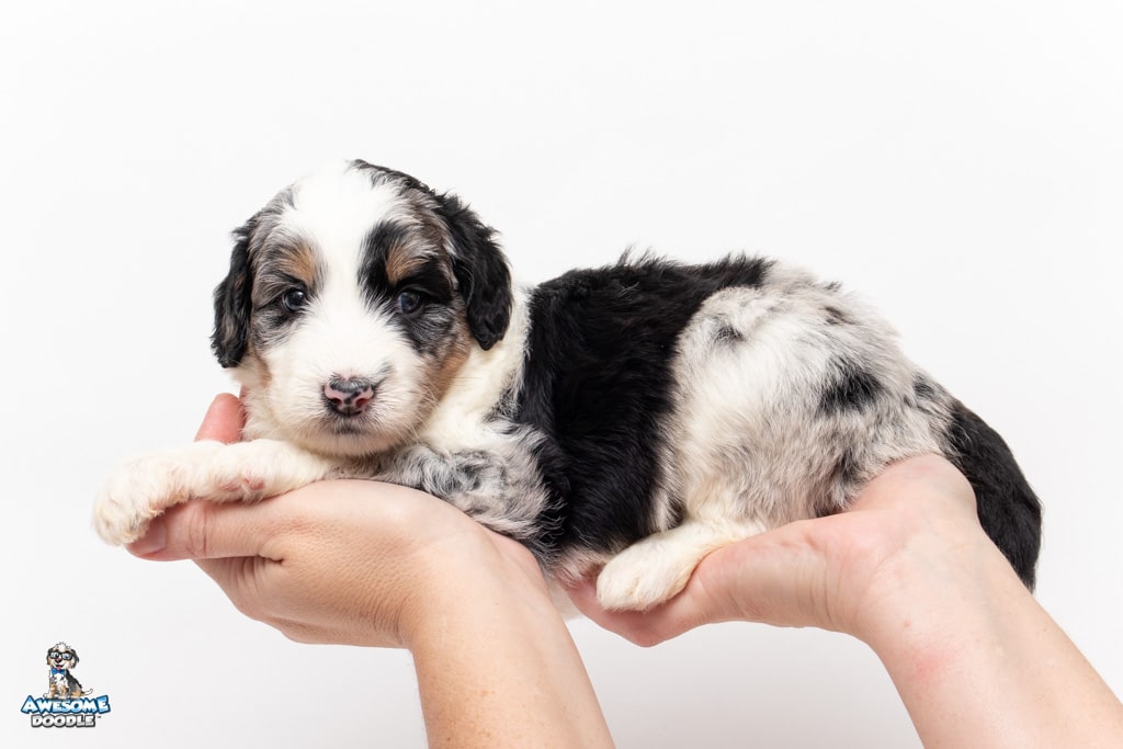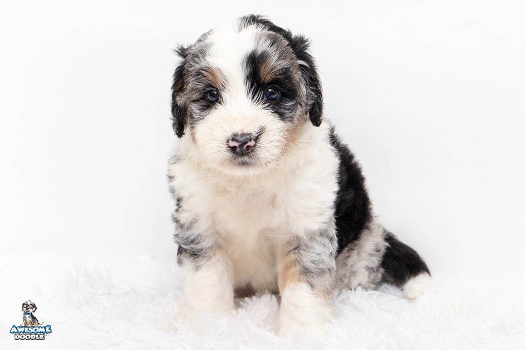 Mars is a male Blue Merle w/ White & Copper F1 AussieDoodle puppy.