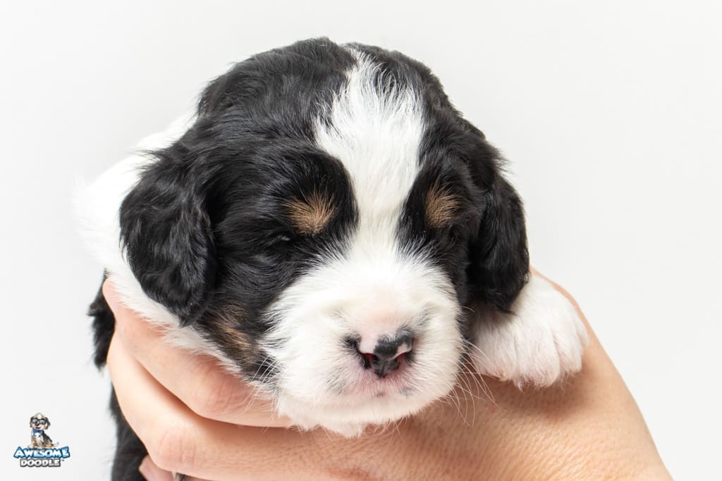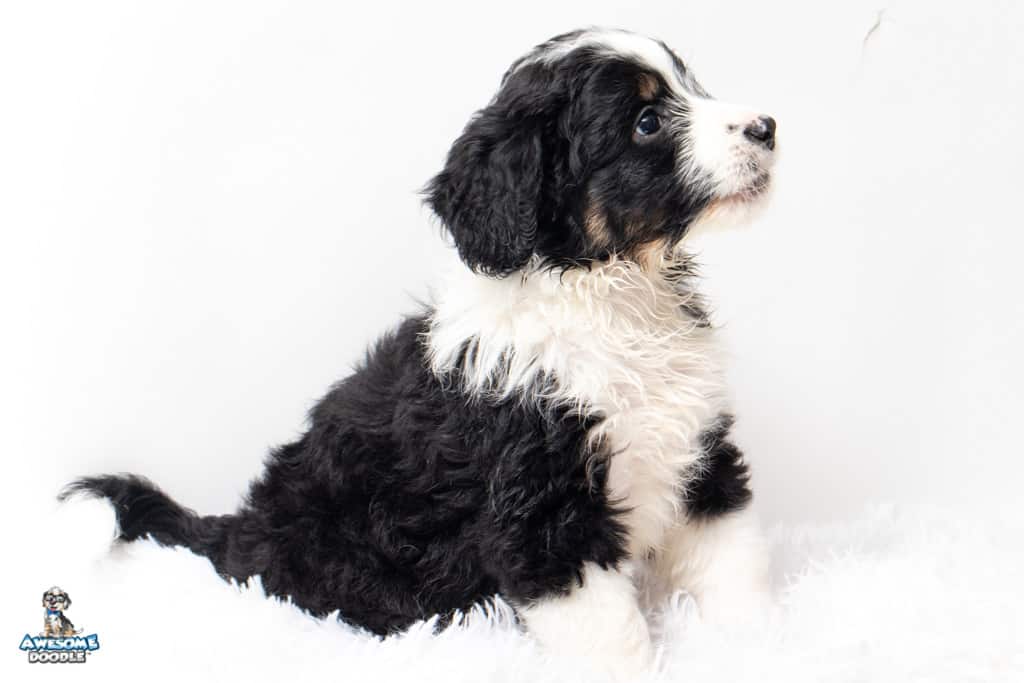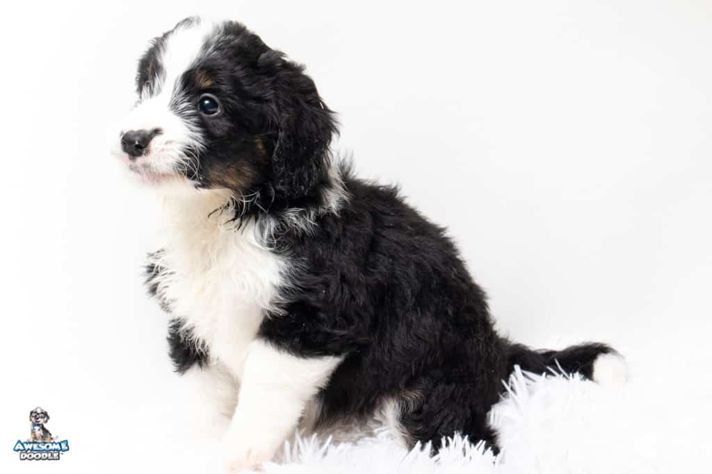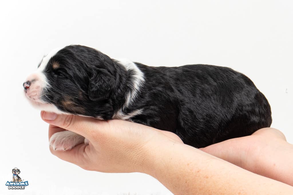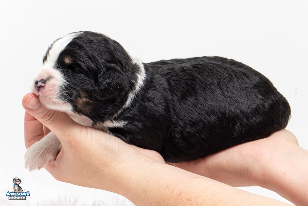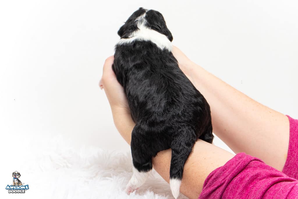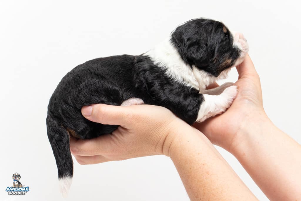 Tippy is a female Black Tri-Color F1 AussieDoodle puppy.