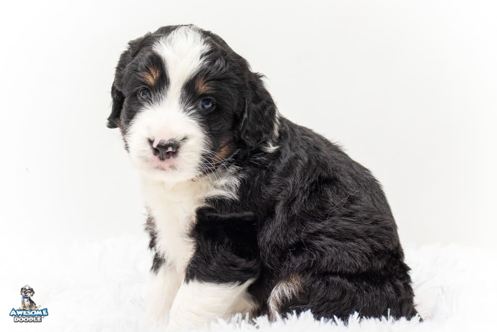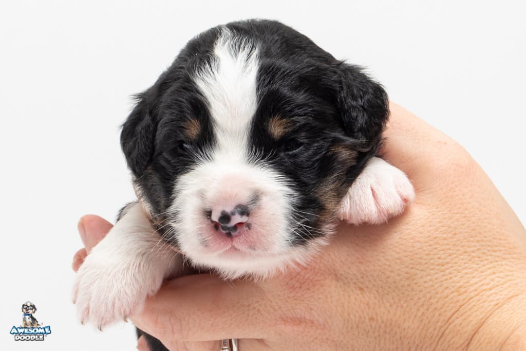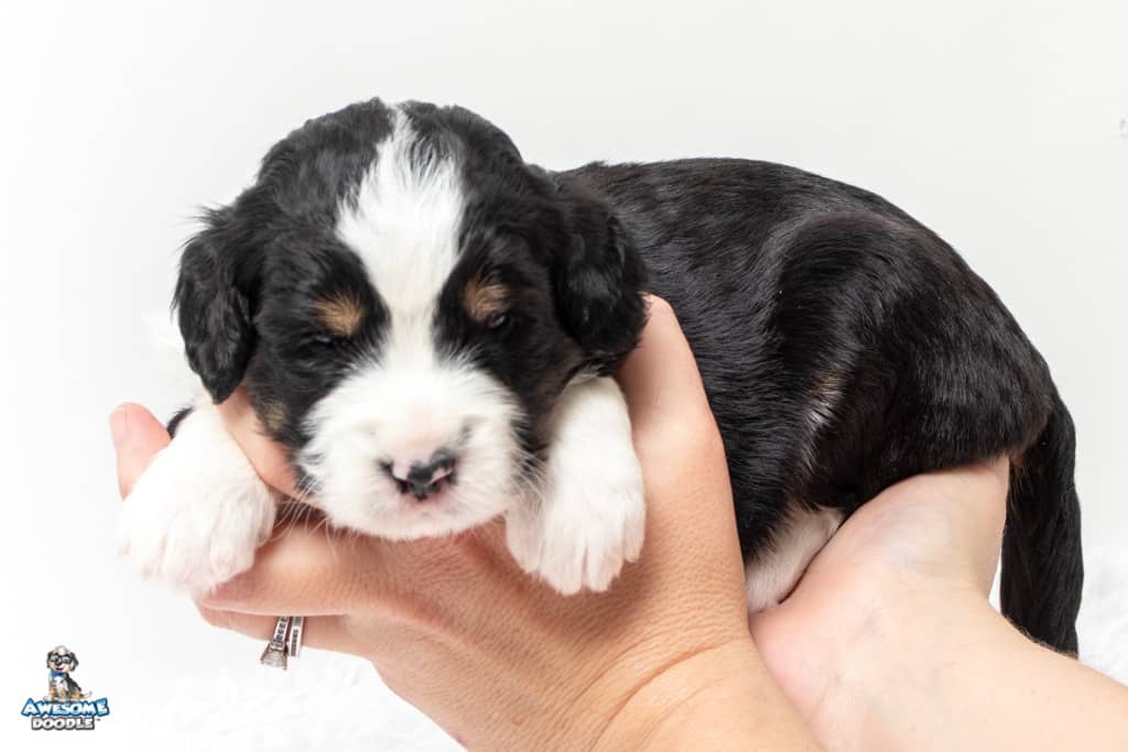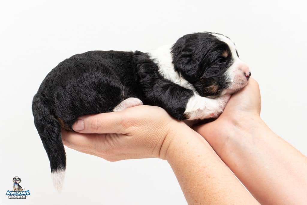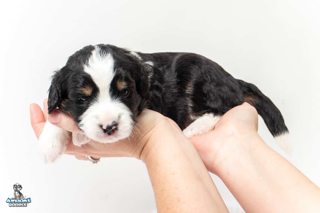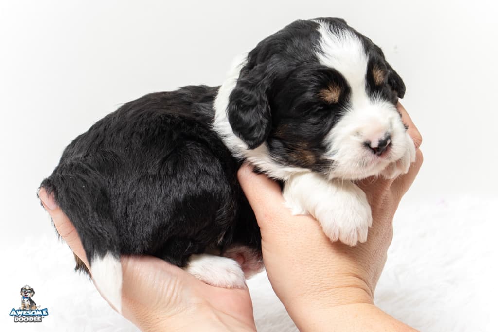 Tippy is a female Black Tri-Color F1 AussieDoodle puppy.