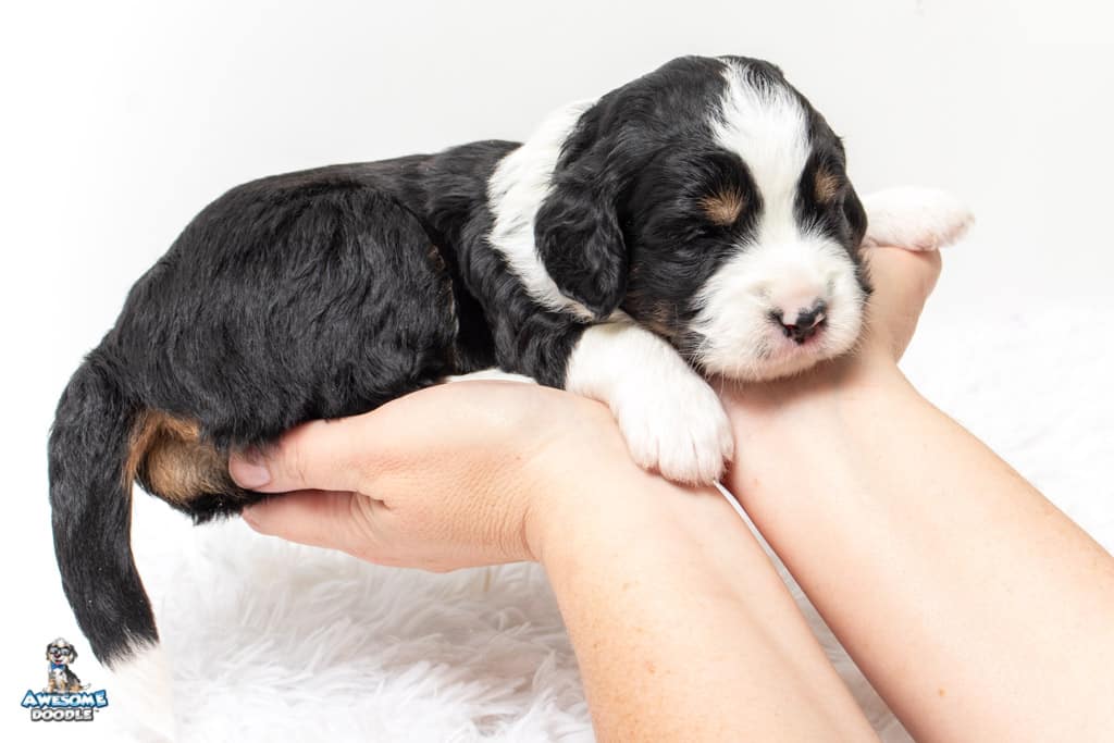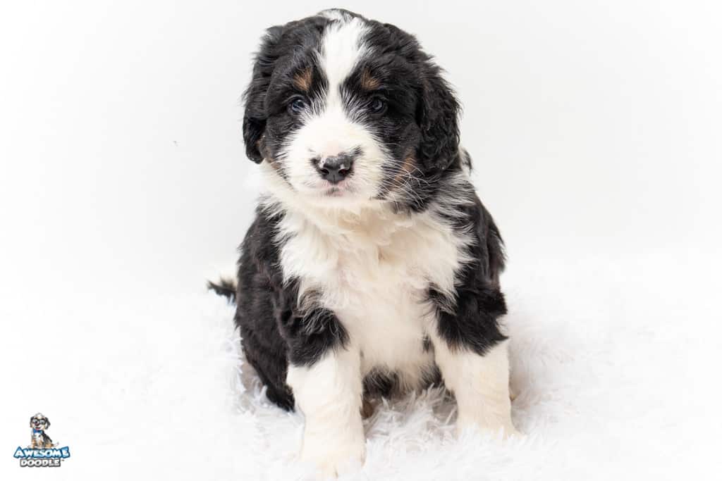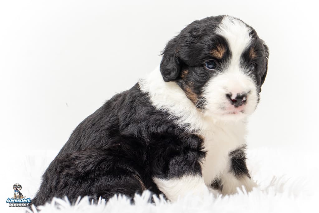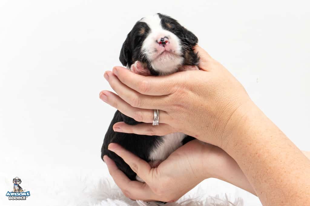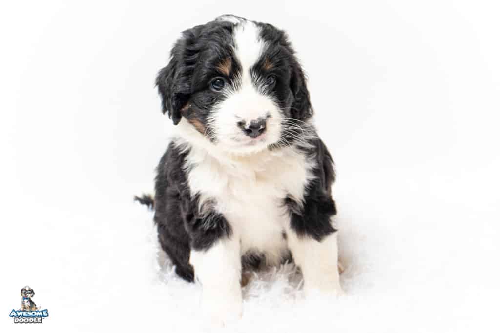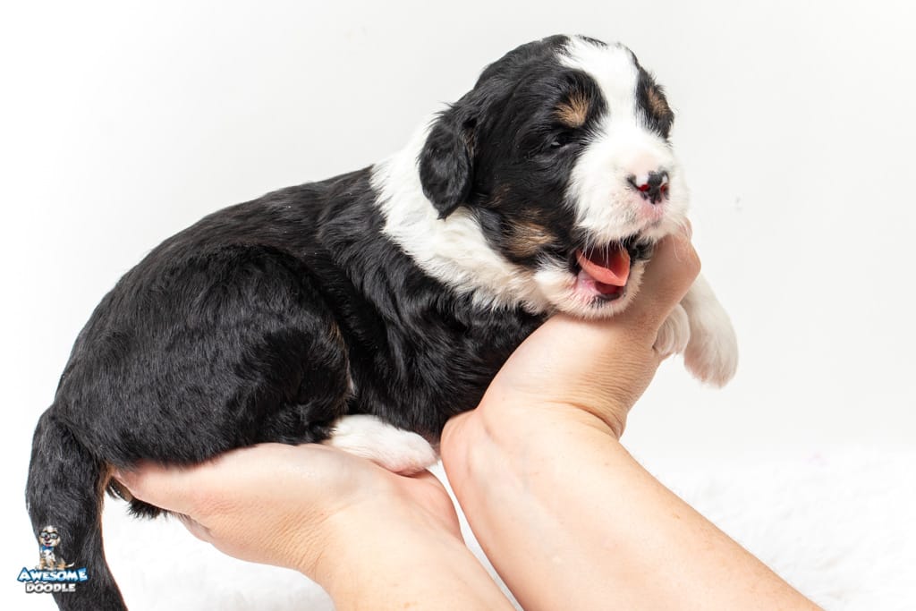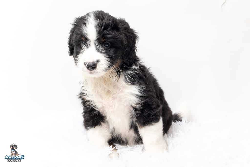 Tippy is a female Black Tri-Color F1 AussieDoodle puppy.