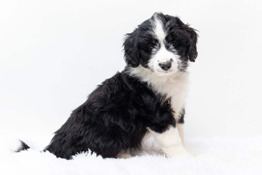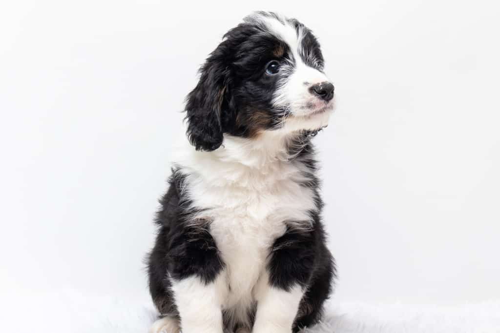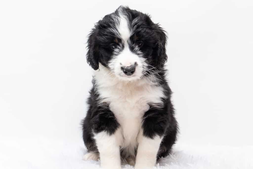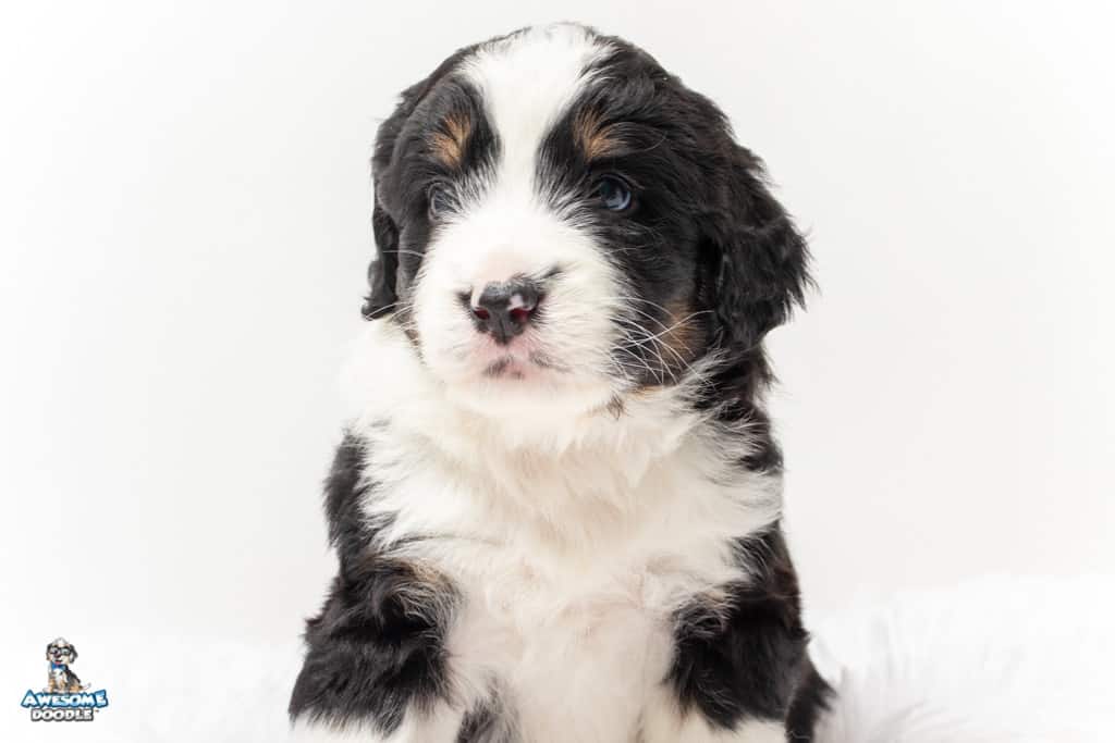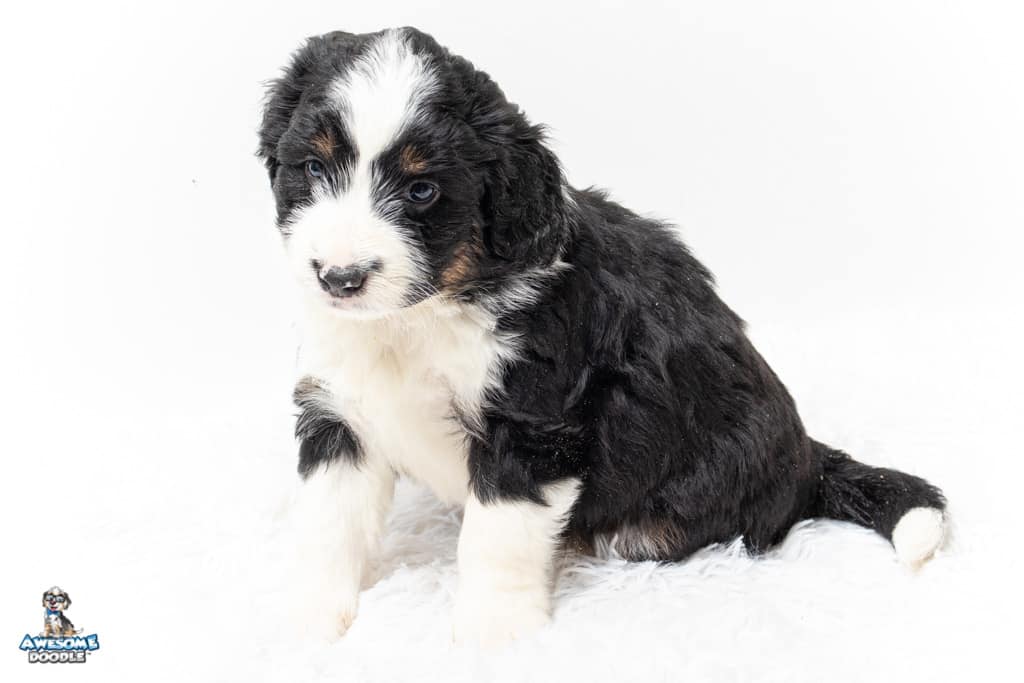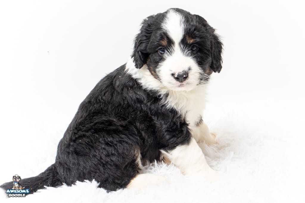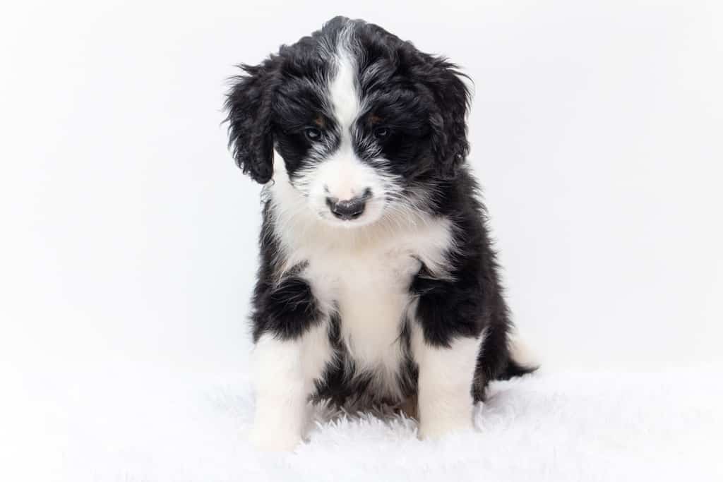 Tippy is a female Black Tri-Color F1 AussieDoodle puppy.