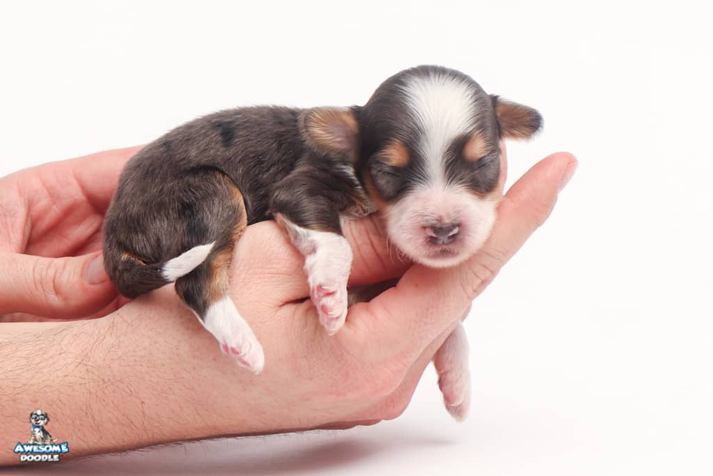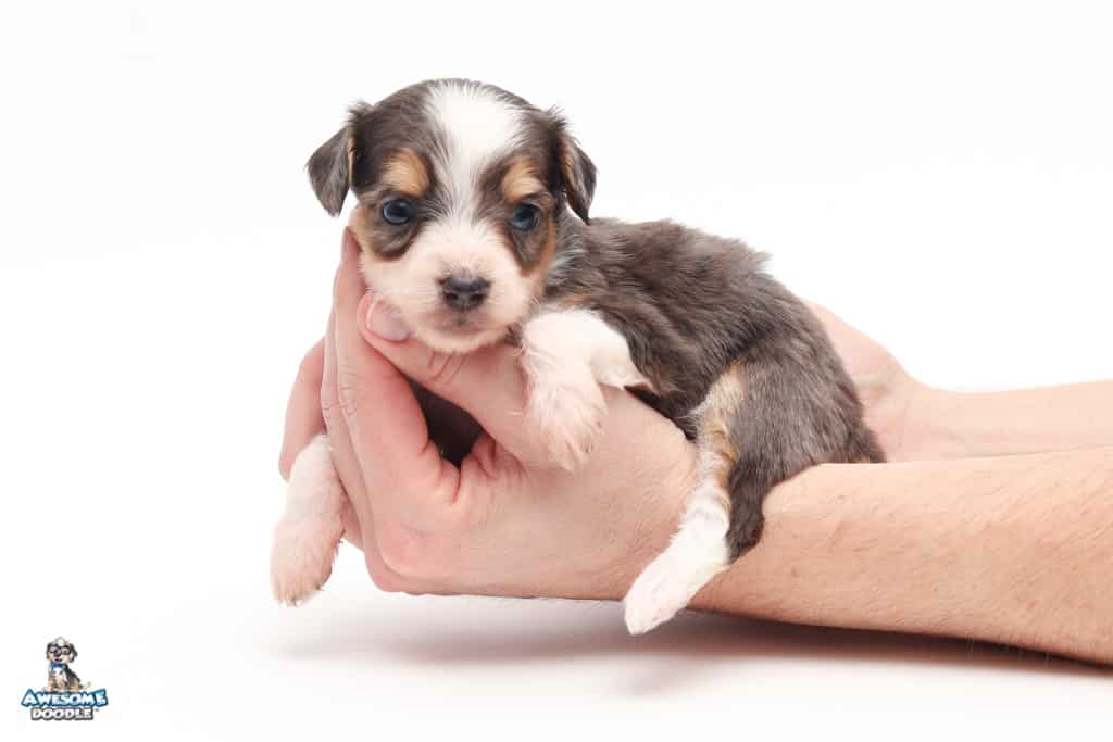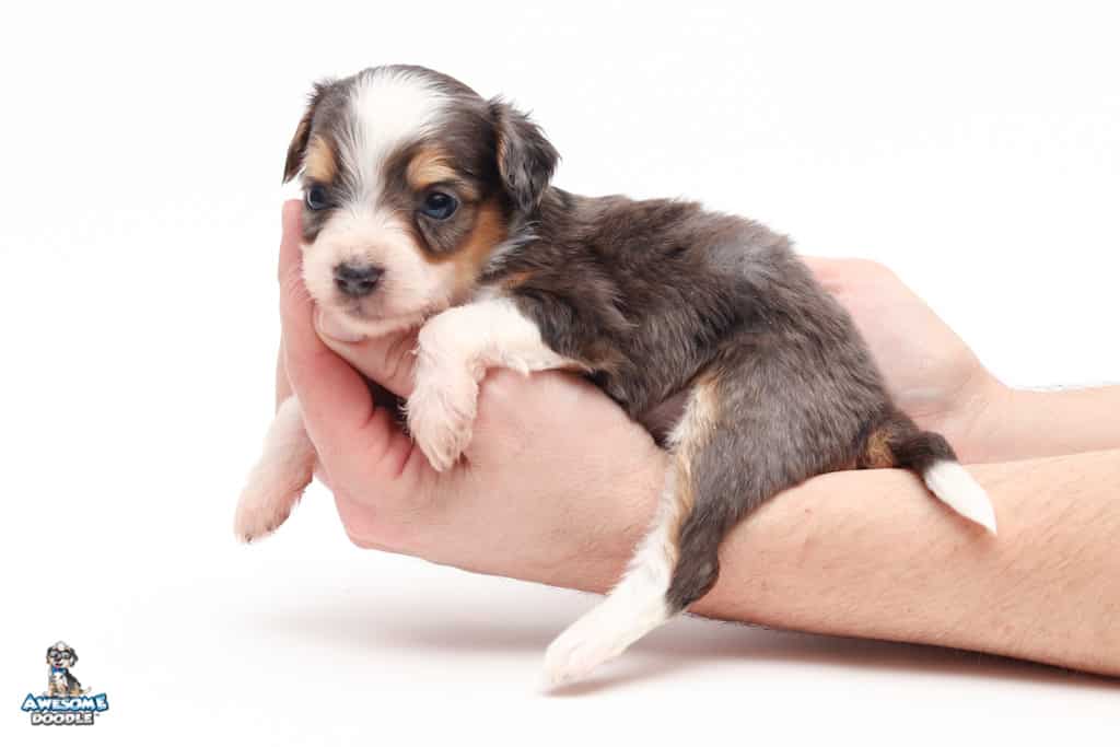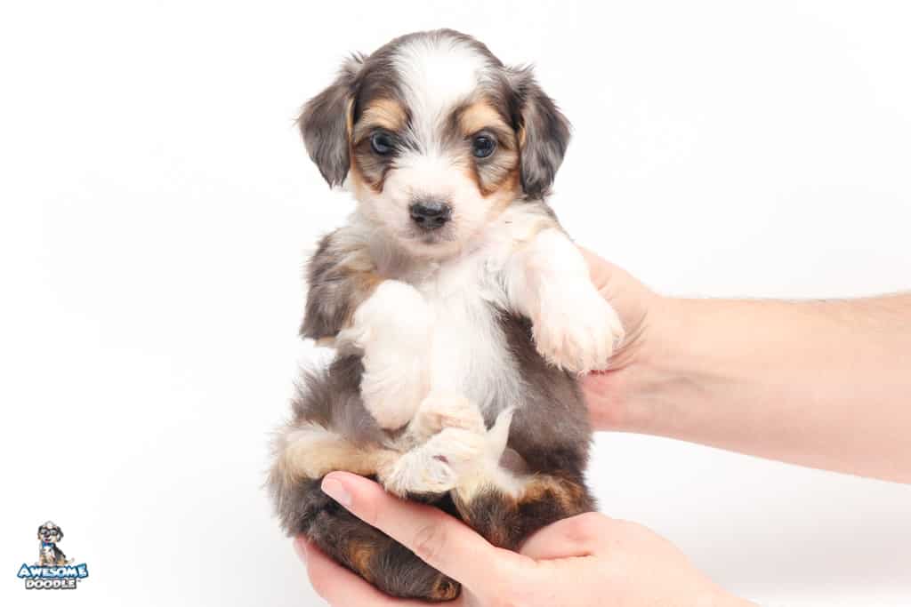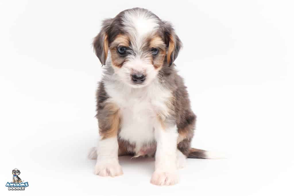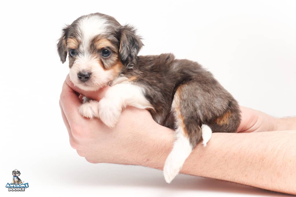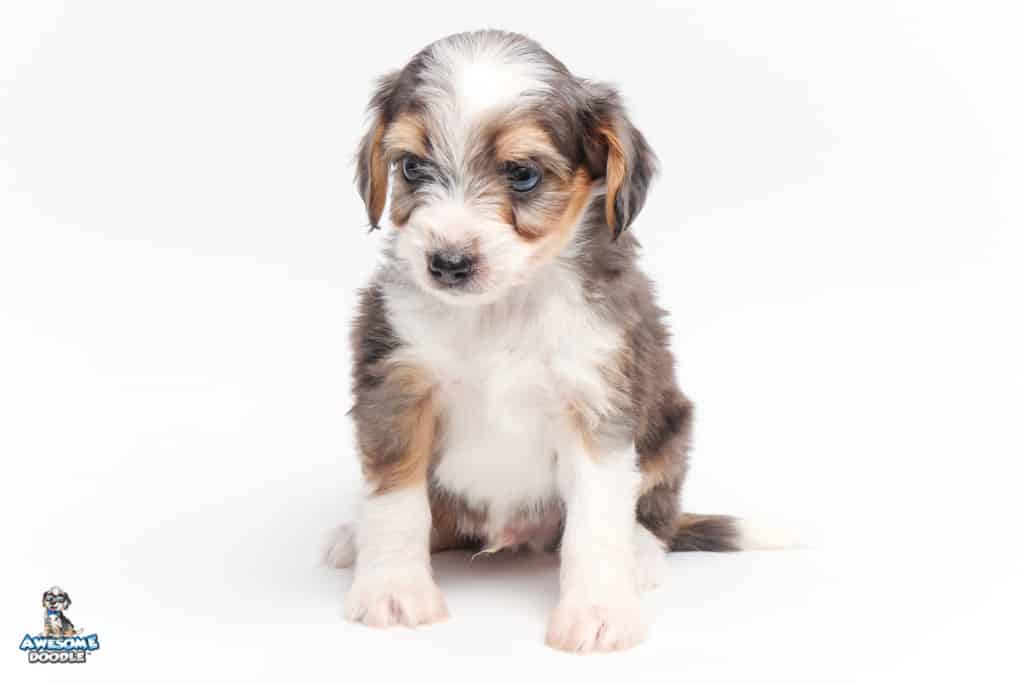 Vincent is a male Blue Merle w/ White & Copper F1 AussieDoodle puppy.
