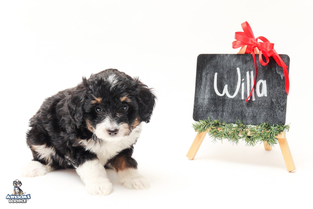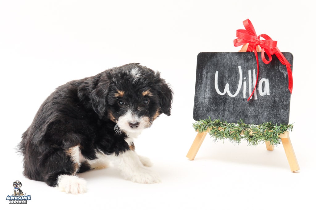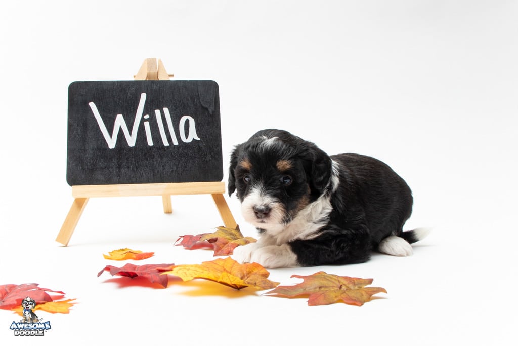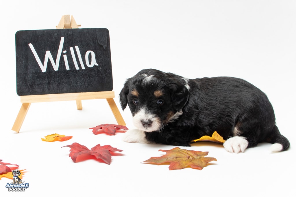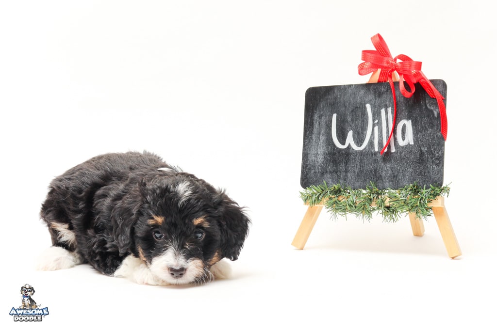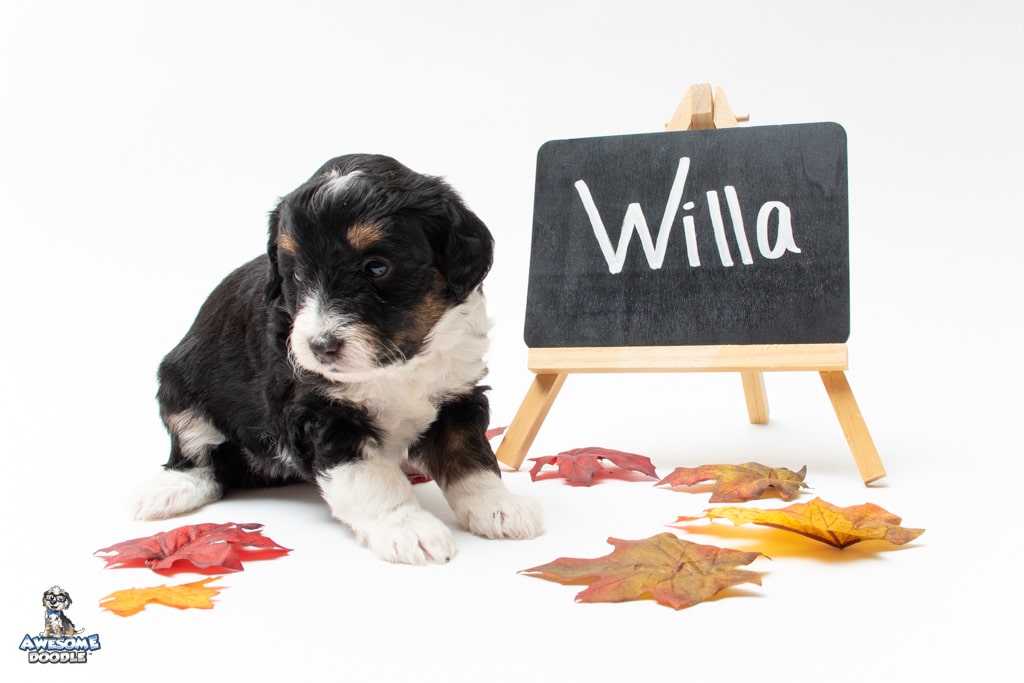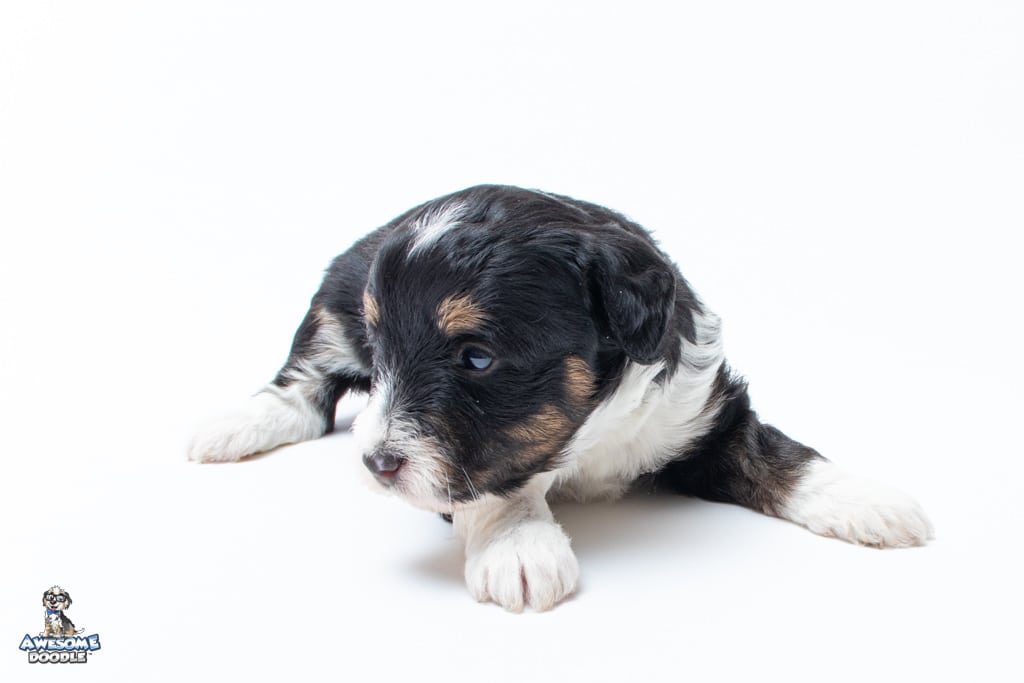Willa is a female Black Tri-Color F1 AussieDoodle puppy.