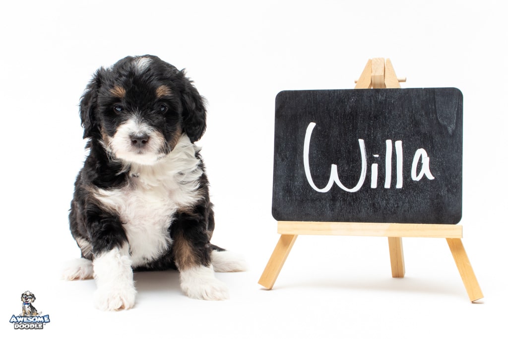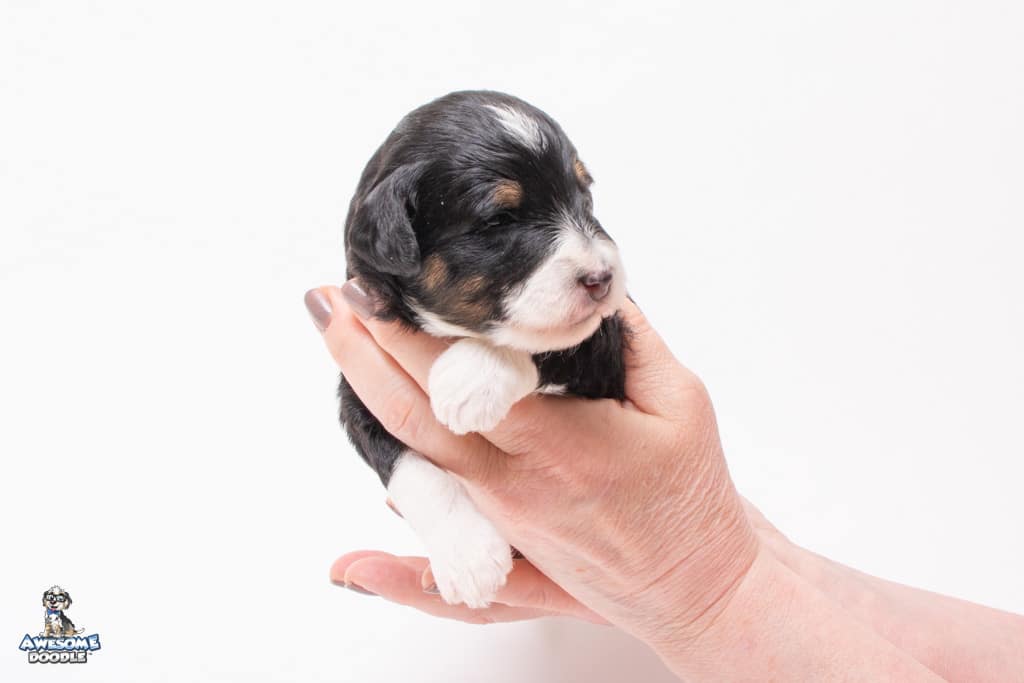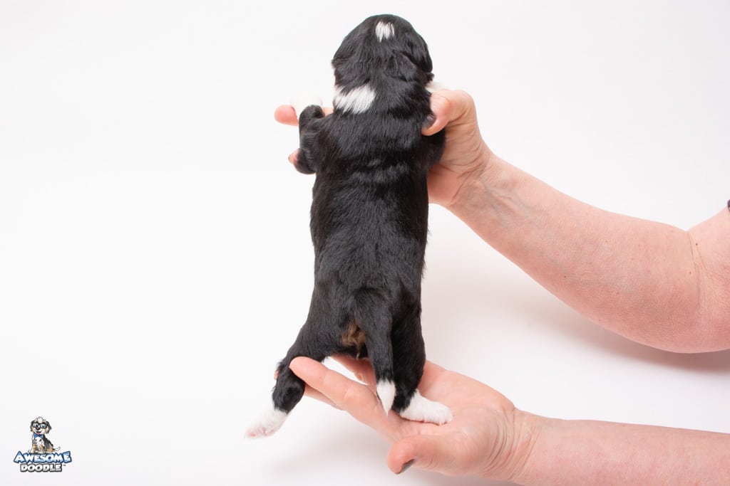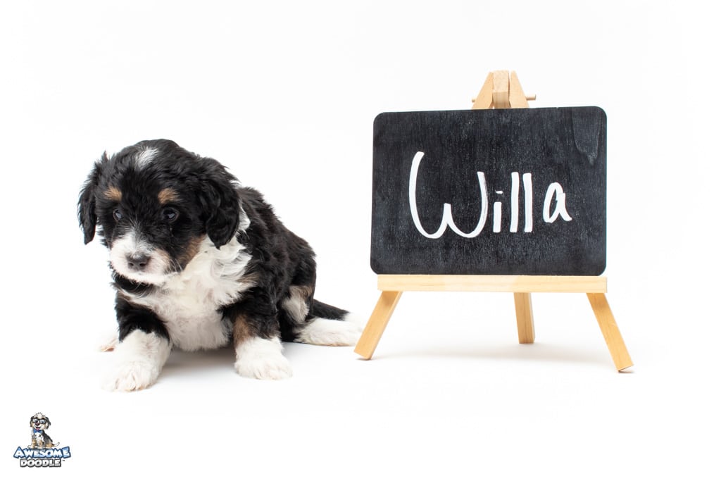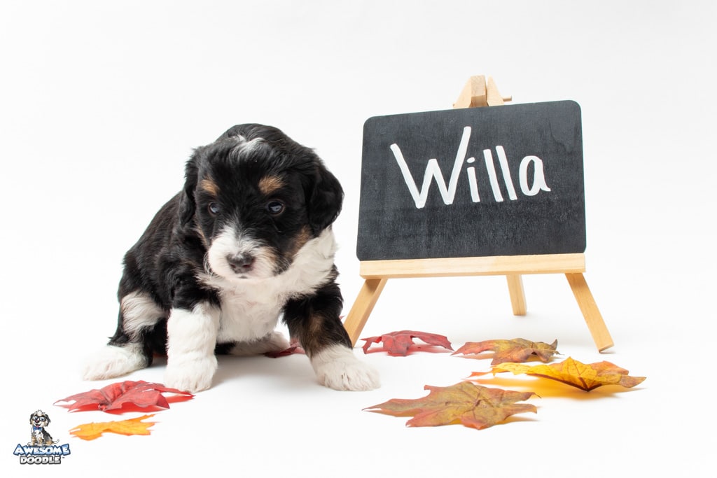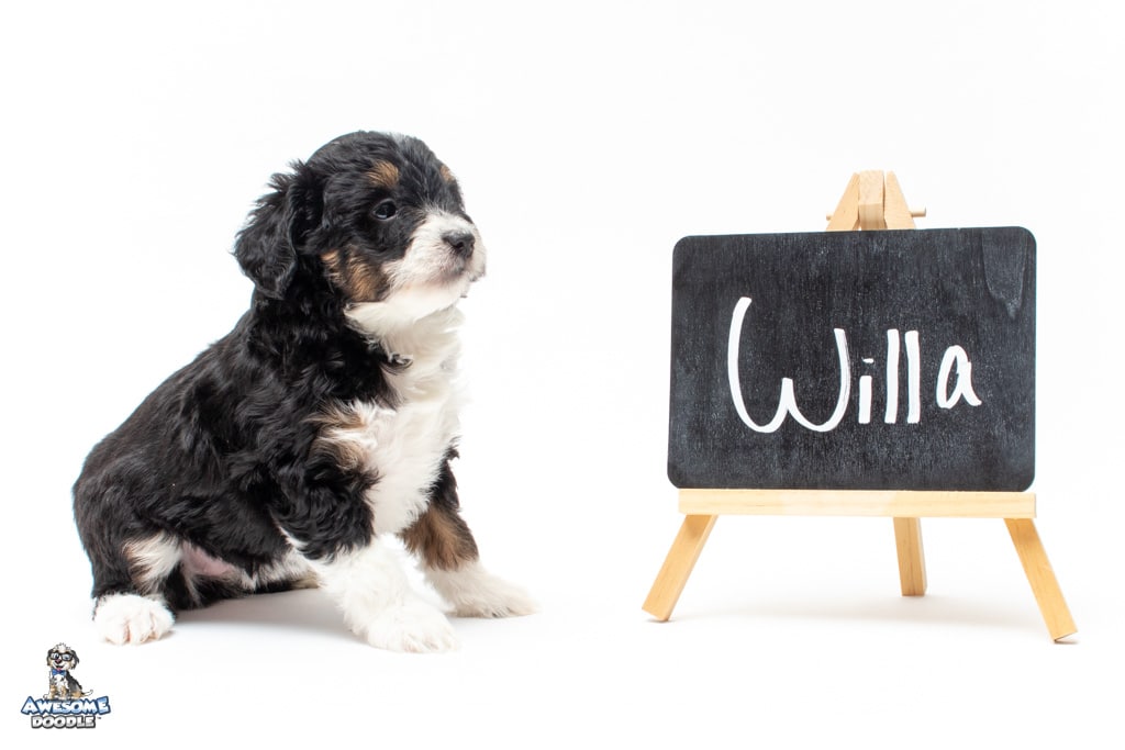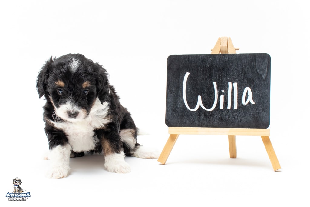 Willa is a female Black Tri-Color F1 AussieDoodle puppy.