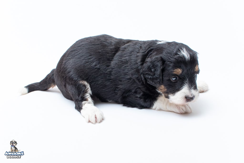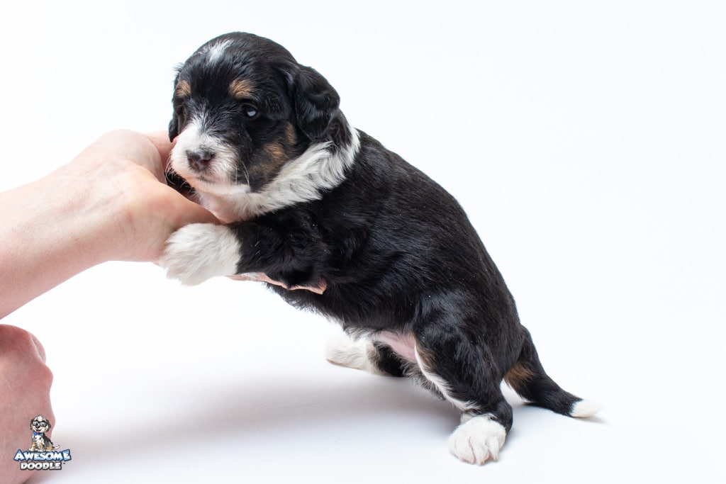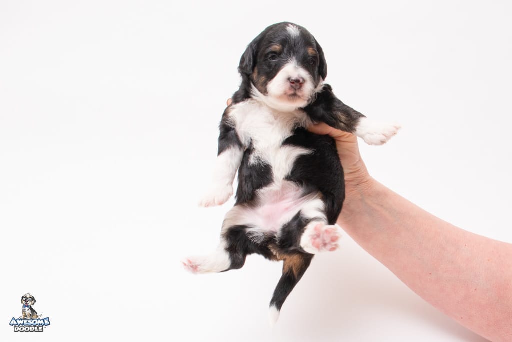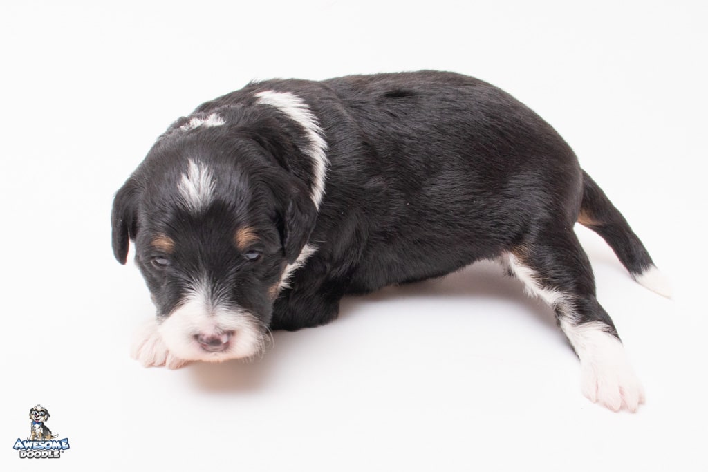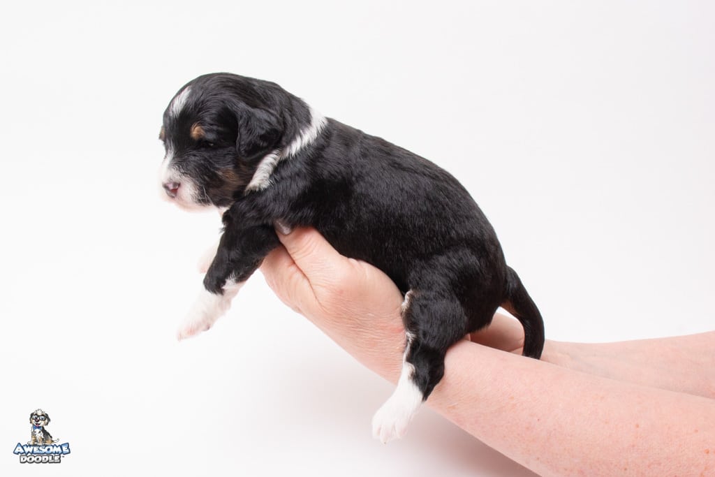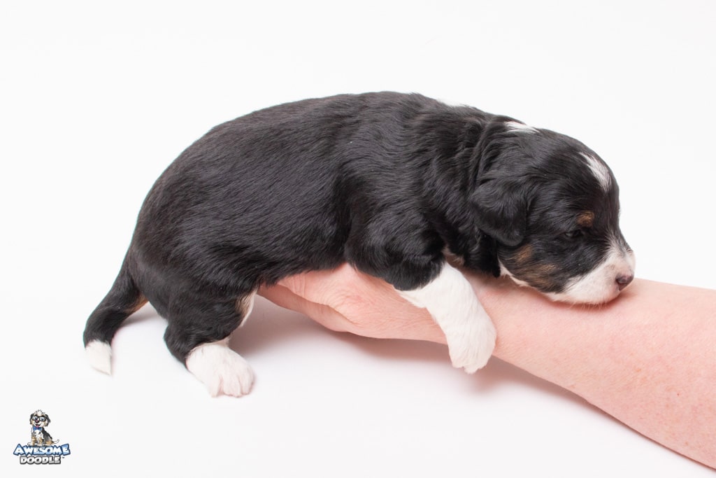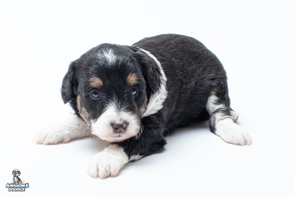 Willa is a female Black Tri-Color F1 AussieDoodle puppy.