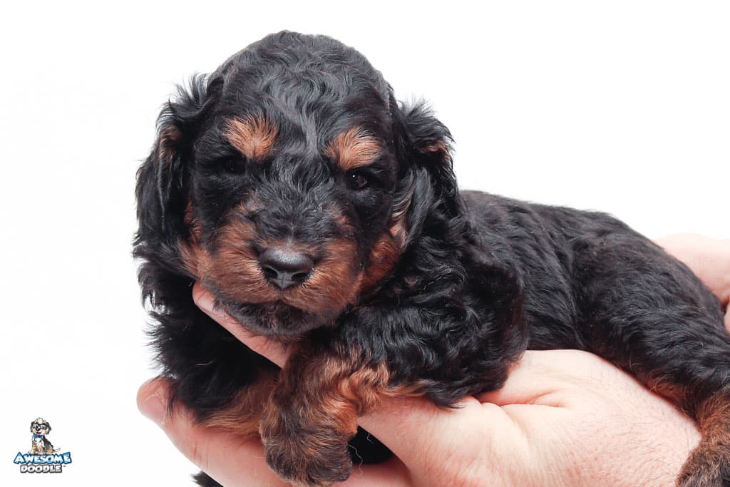 Willy is a male Black Phantom F1 AussieDoodle puppy.