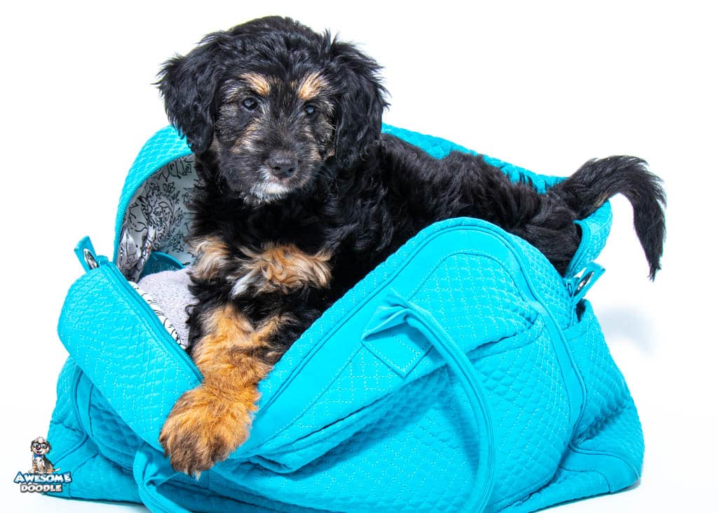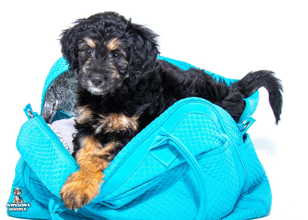Ziti is a female Black Phantom F1 AussieDoodle puppy.