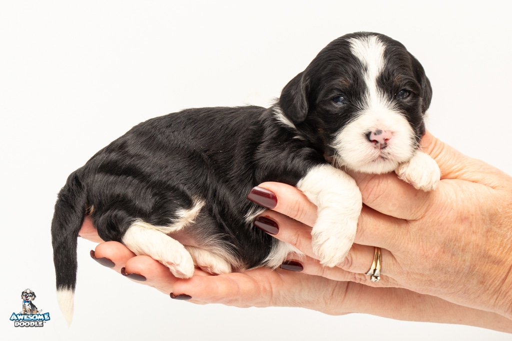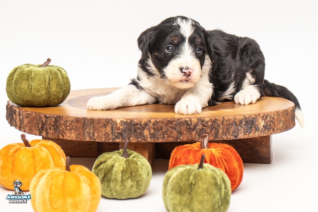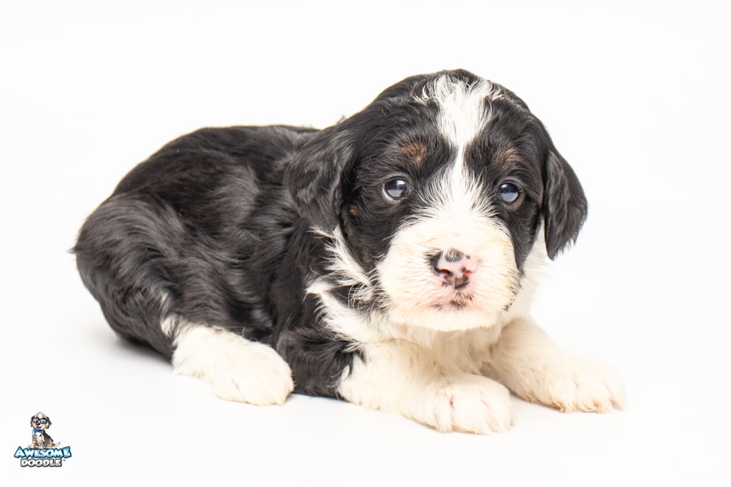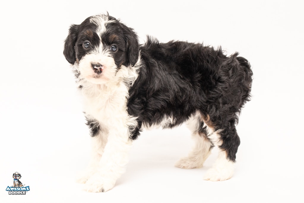 Lola is a female Black Tri-Color F1b BerneDoodle puppy.