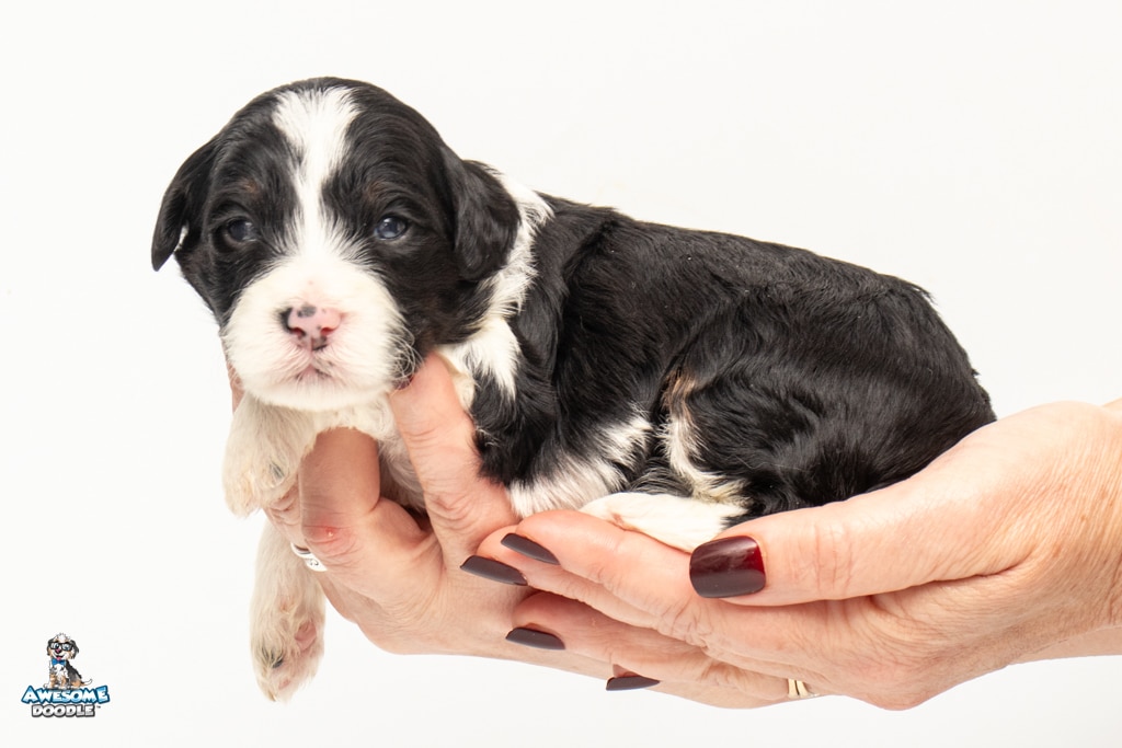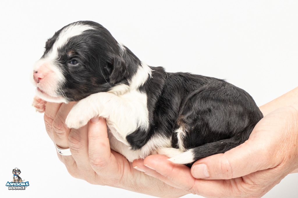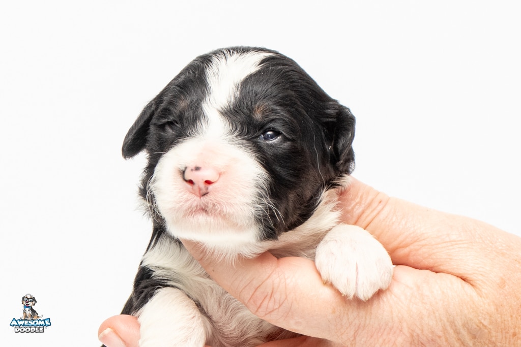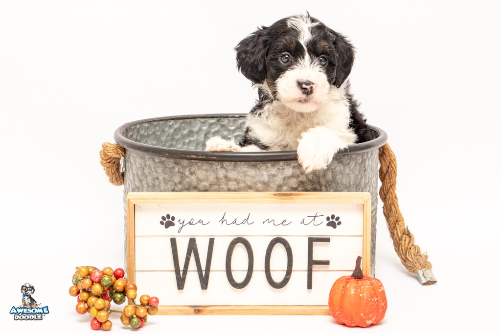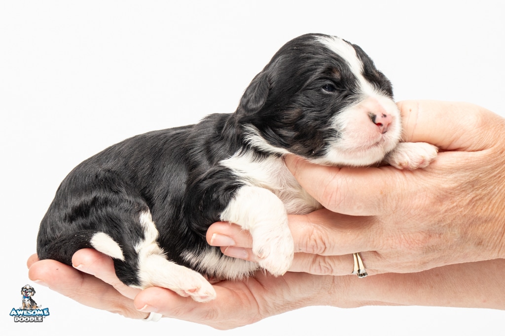 Lola is a female Black Tri-Color F1b BerneDoodle puppy.