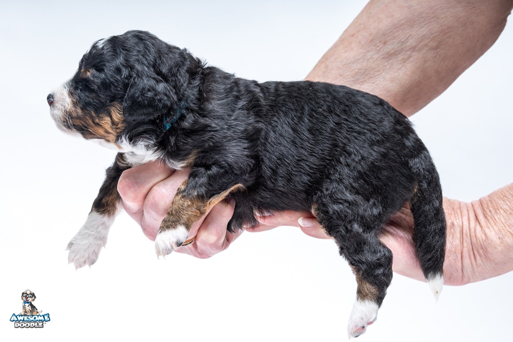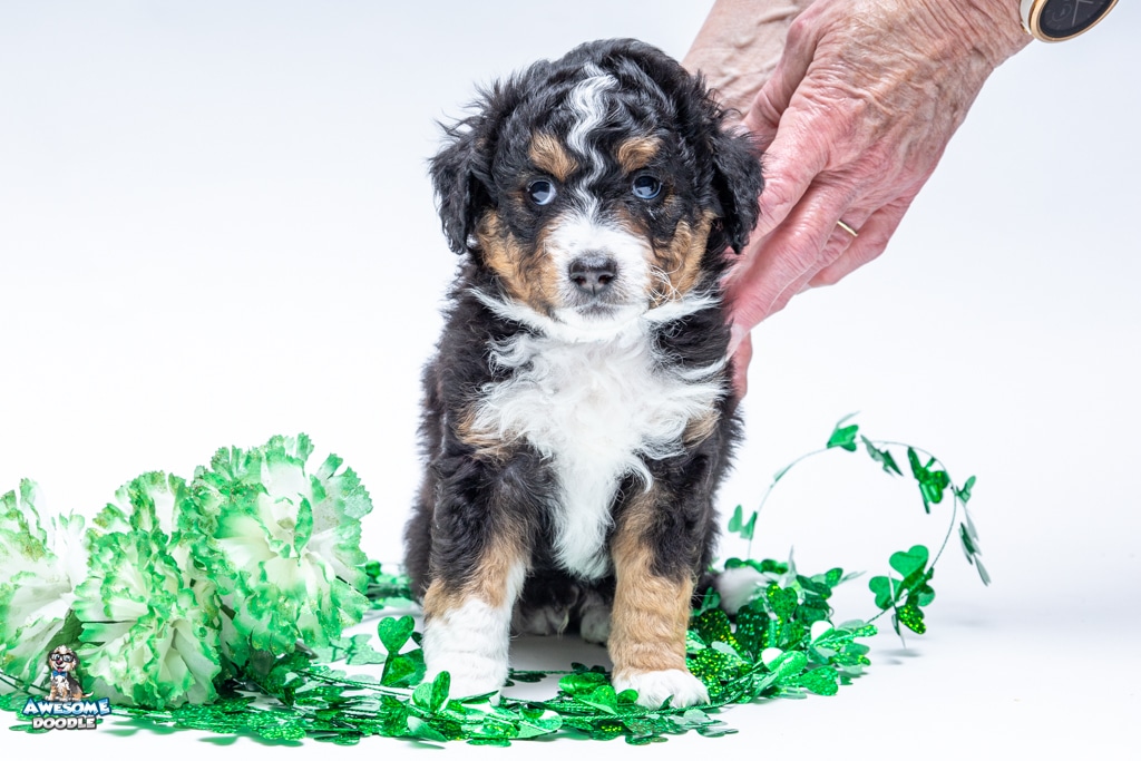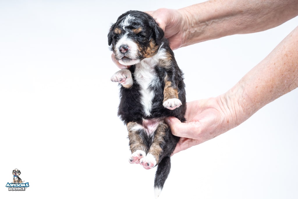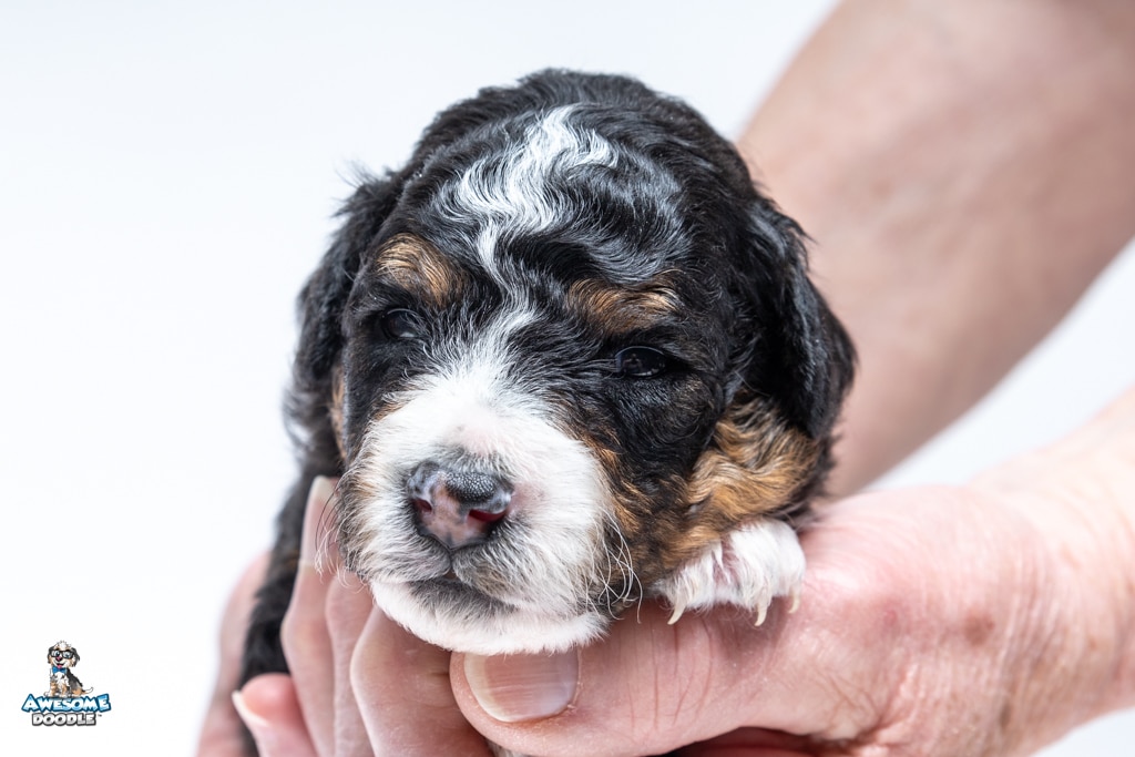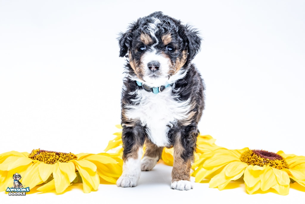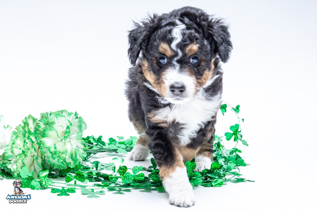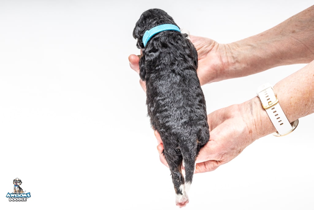 Schumie is a male Black Tri-Color F1 AussieDoodle puppy.