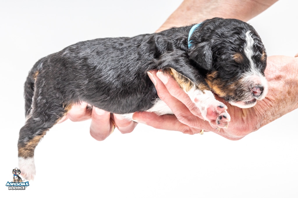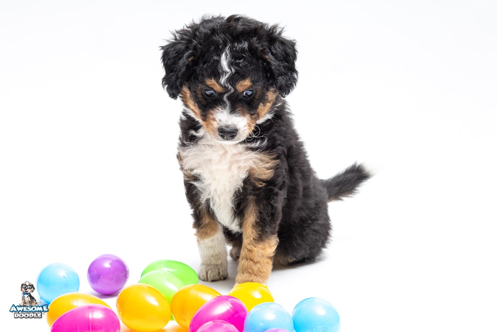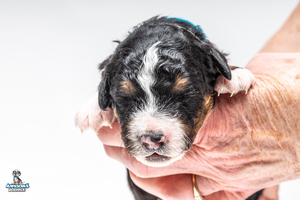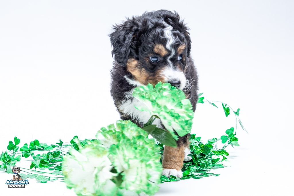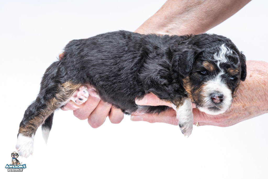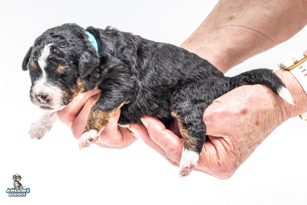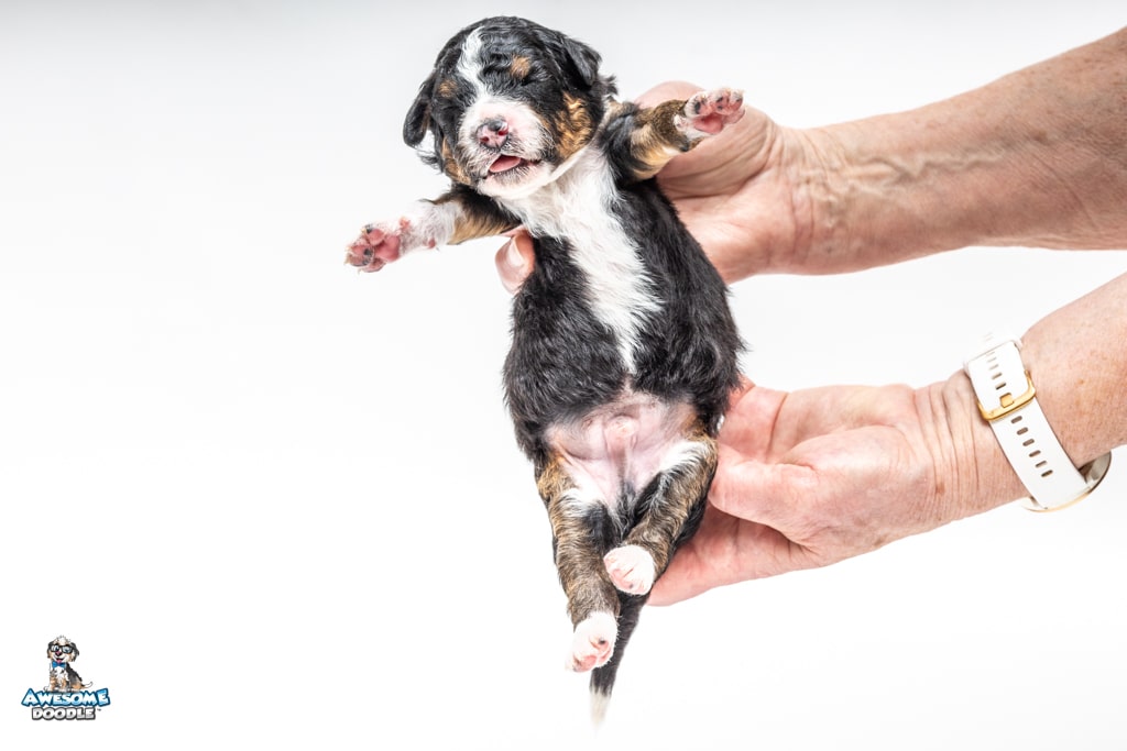 Schumie is a male Black Tri-Color F1 AussieDoodle puppy.