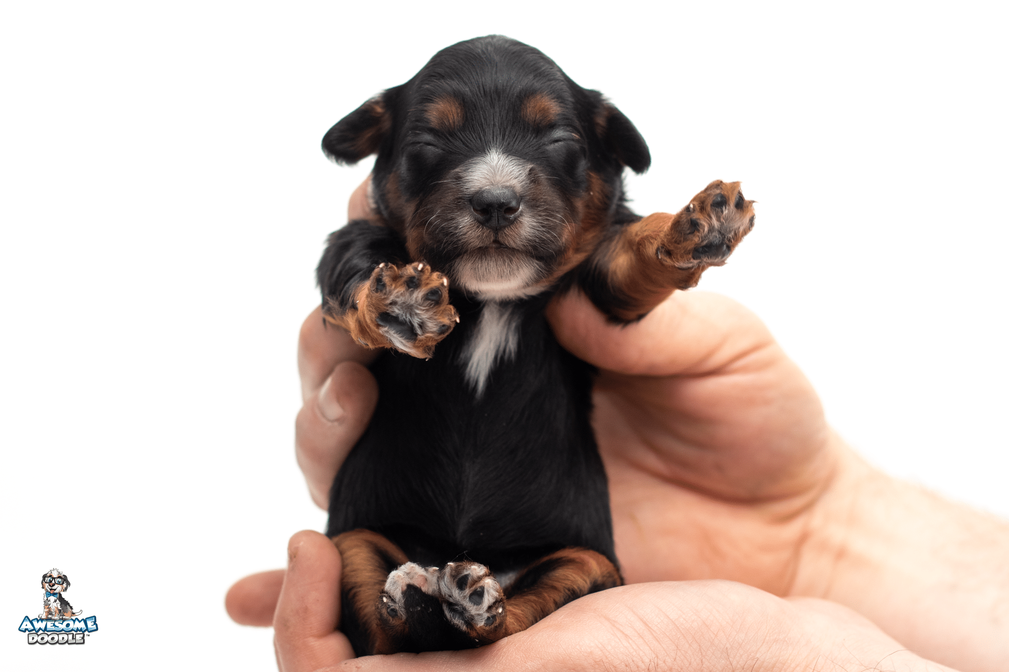 BoPeep is a female Black Phantom F1 AussieDoodle puppy.