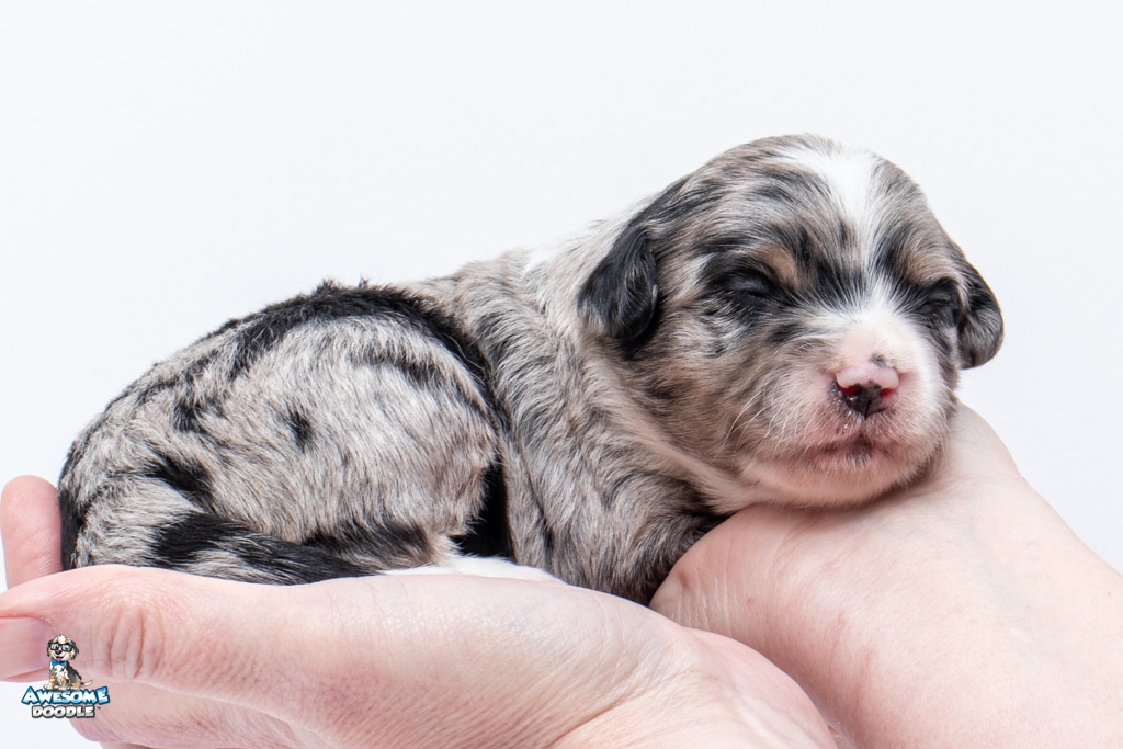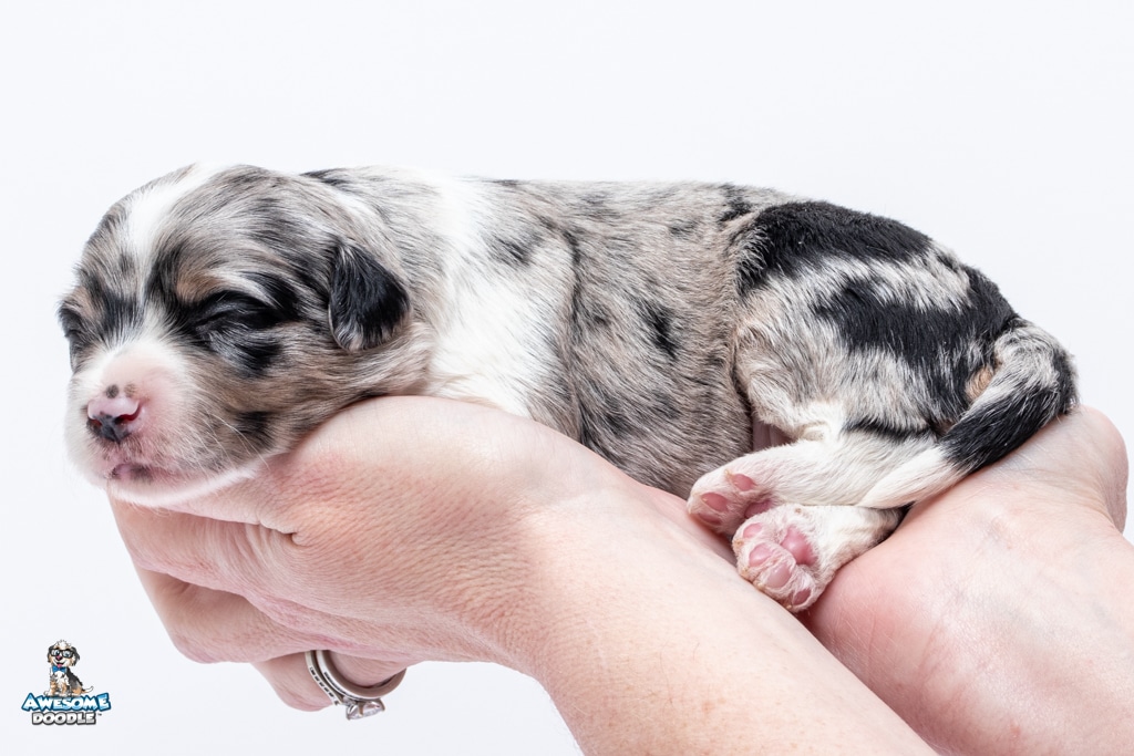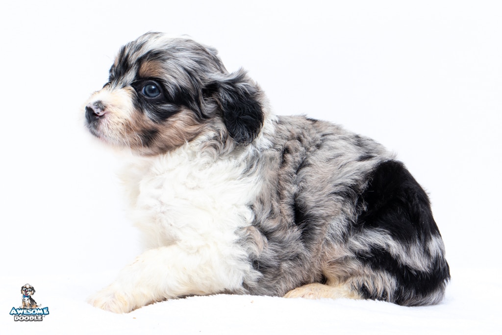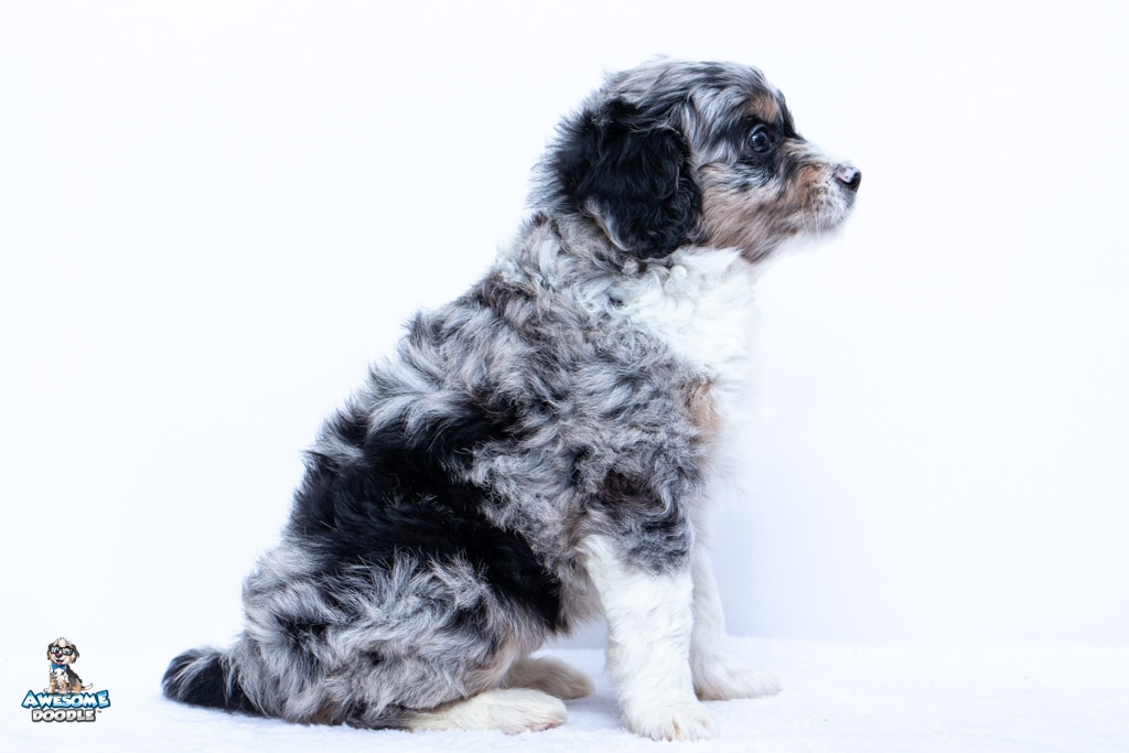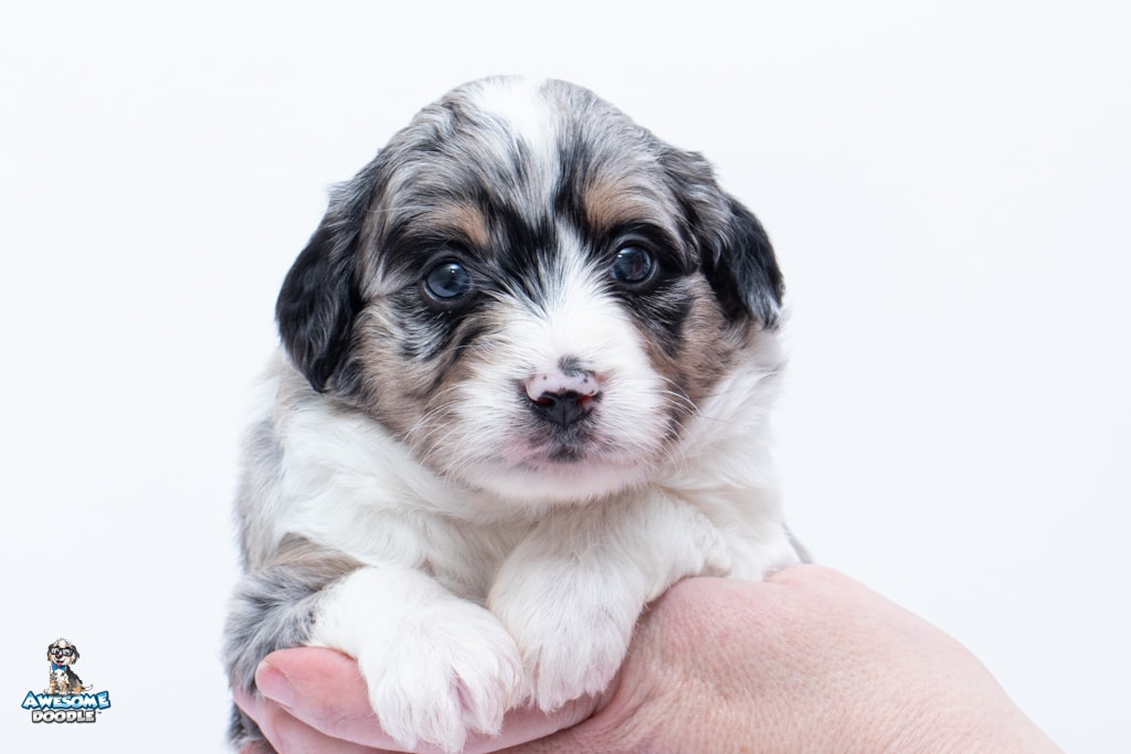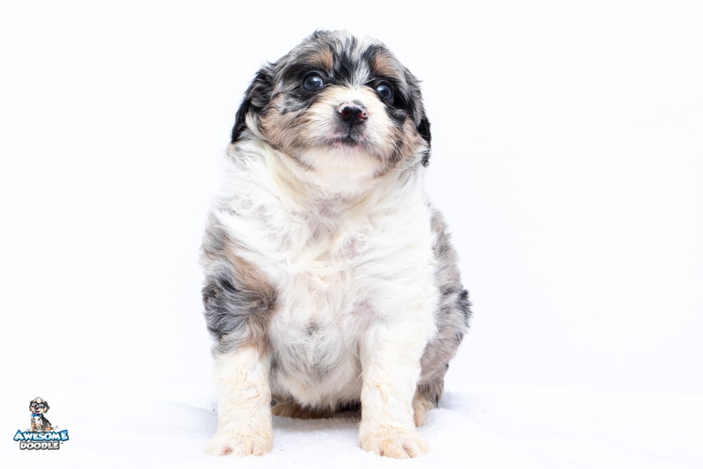 Zamboni is a female Blue Merle w/ White & Copper F1 AussieDoodle puppy.