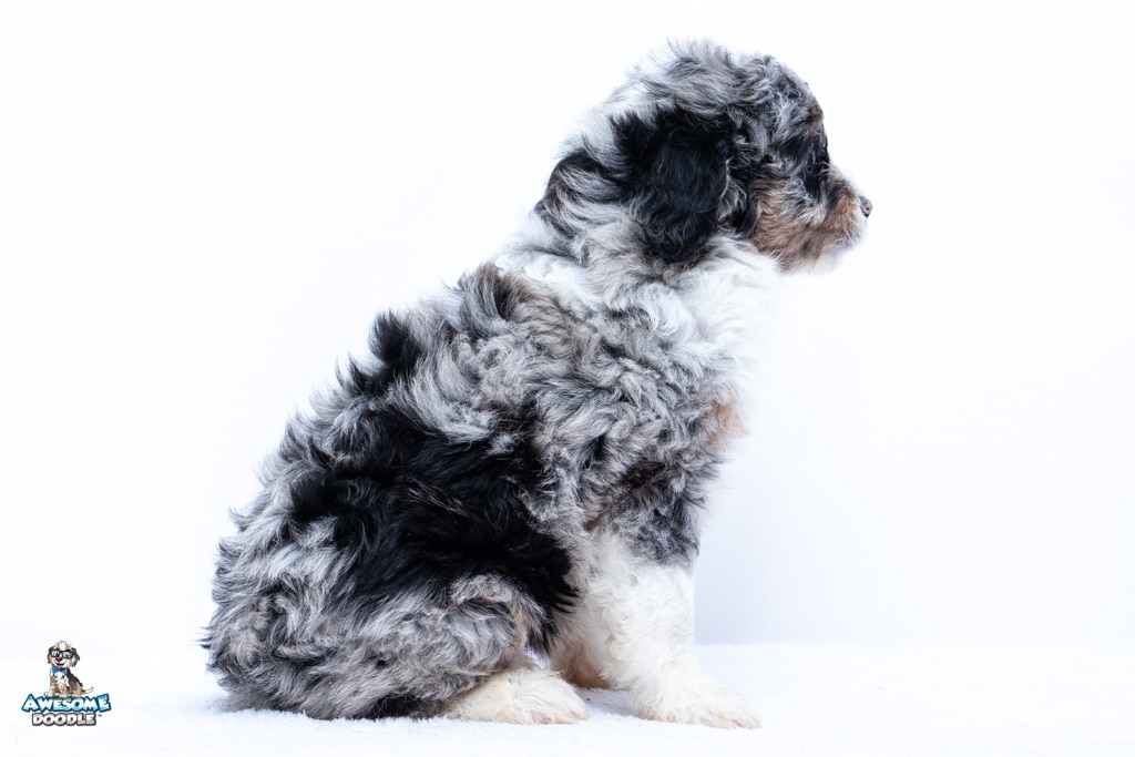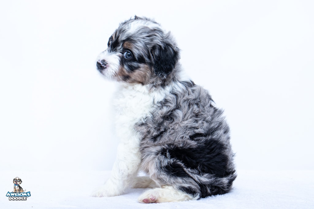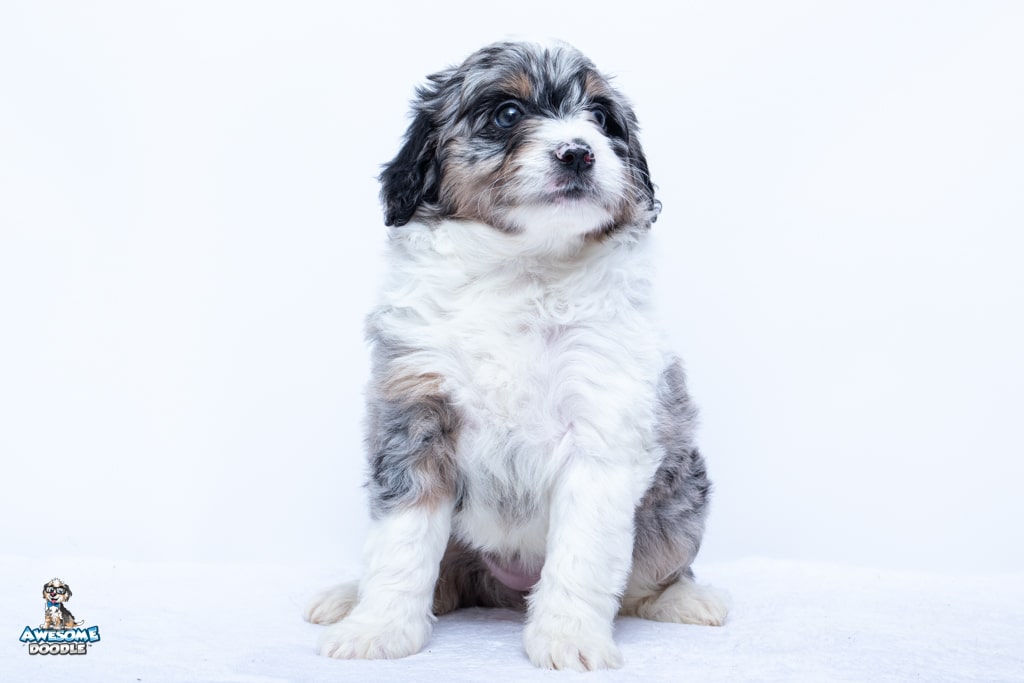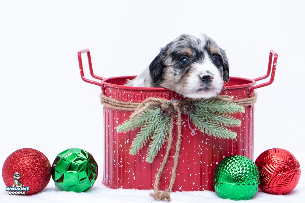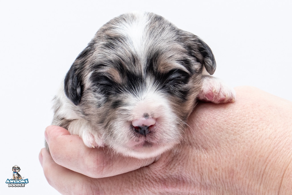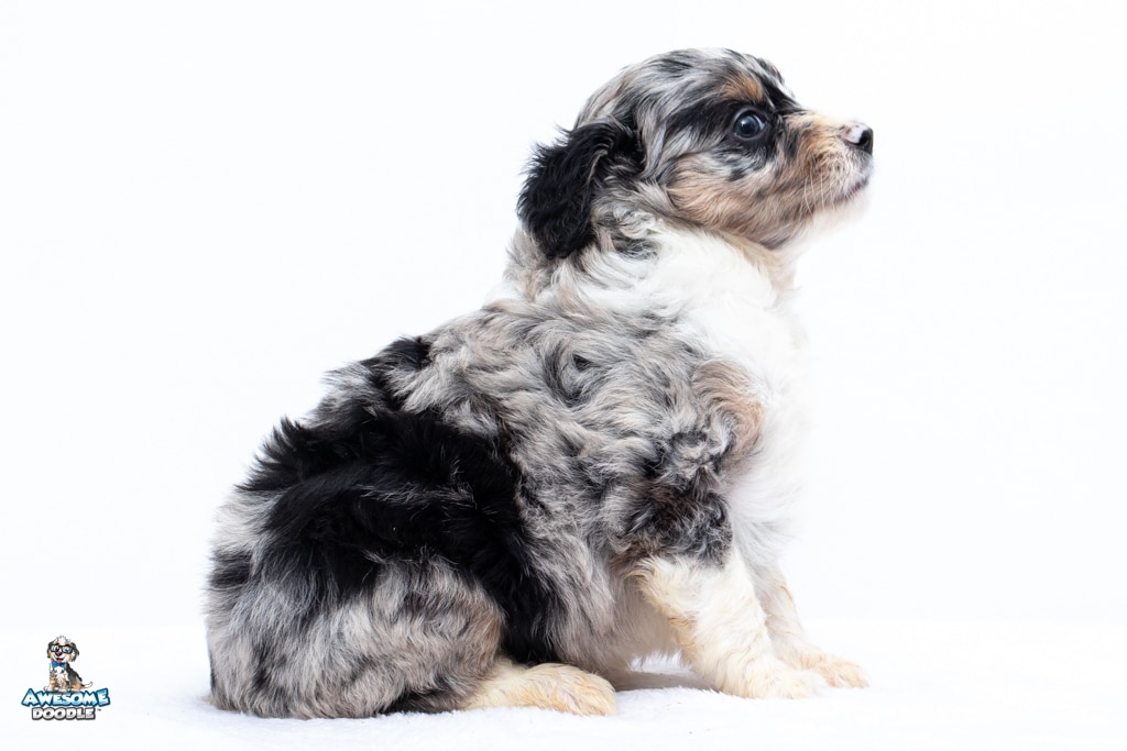 Zamboni is a female Blue Merle w/ White & Copper F1 AussieDoodle puppy.