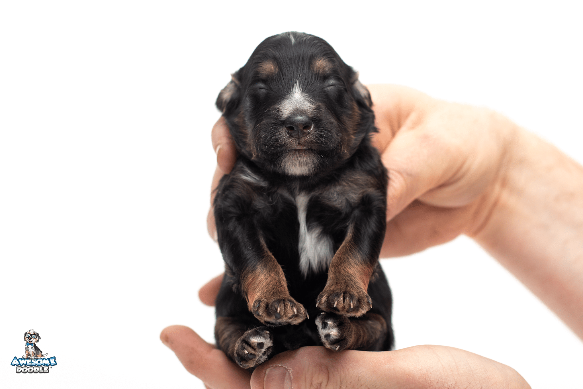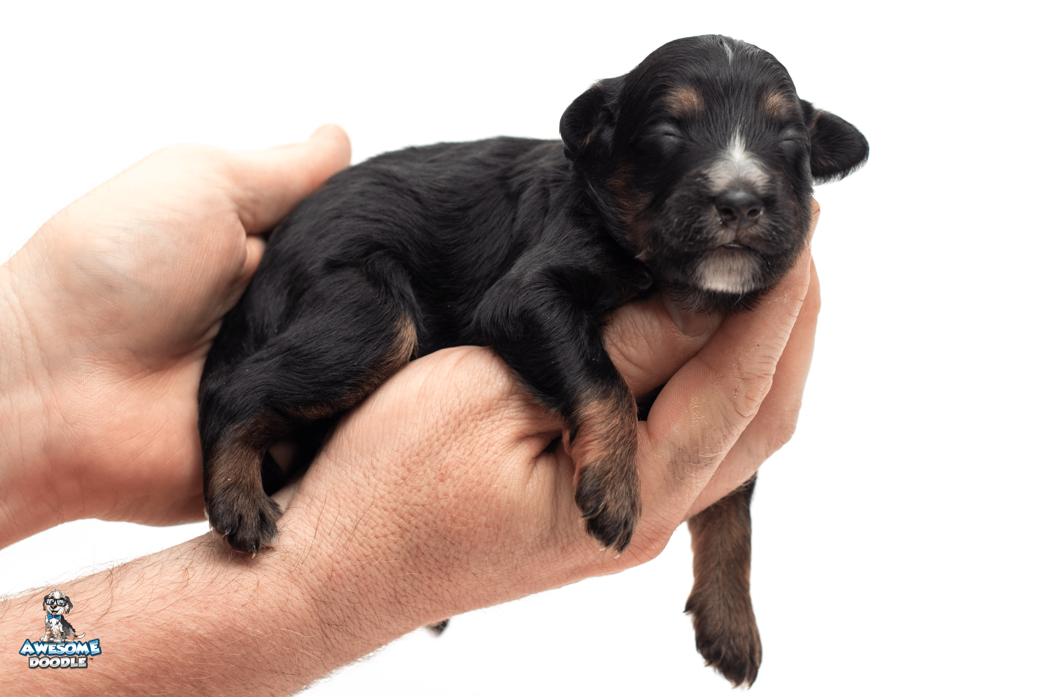 Buzz is a male Black Phantom F1 AussieDoodle puppy.