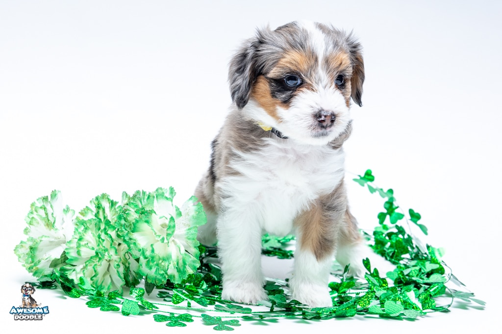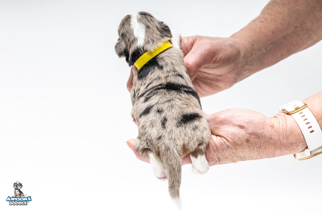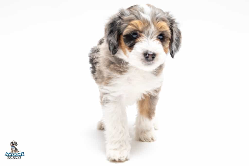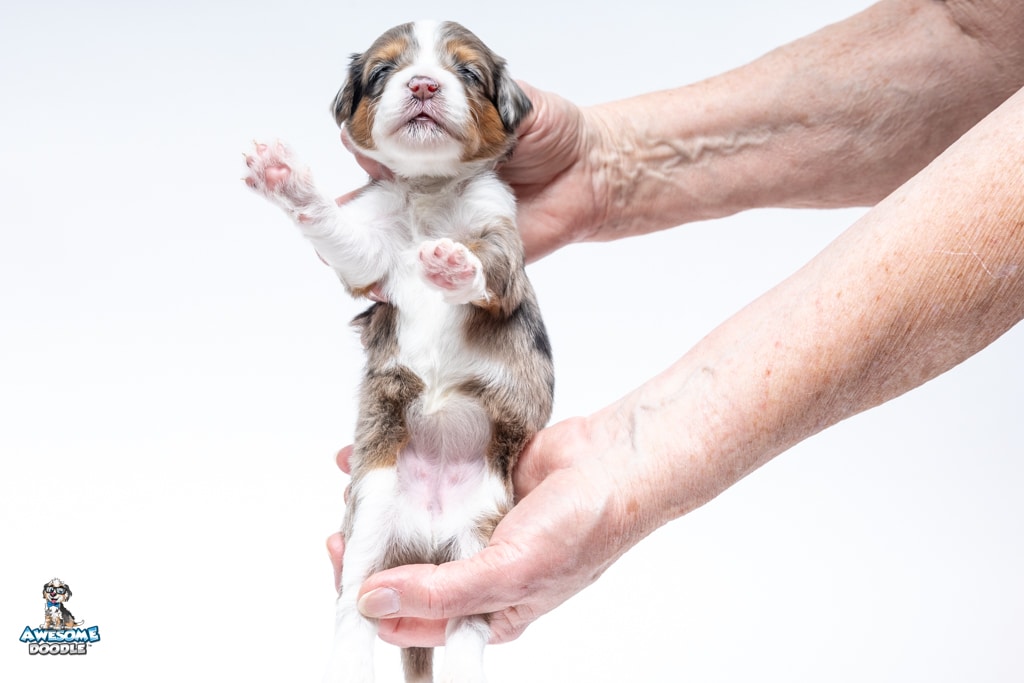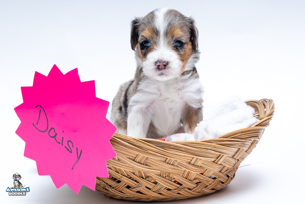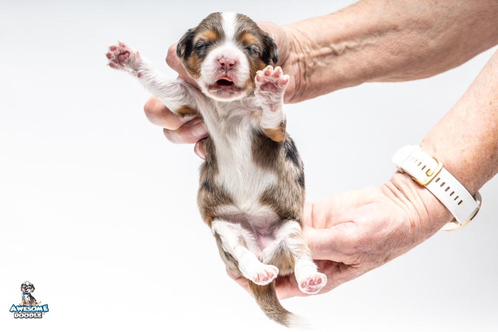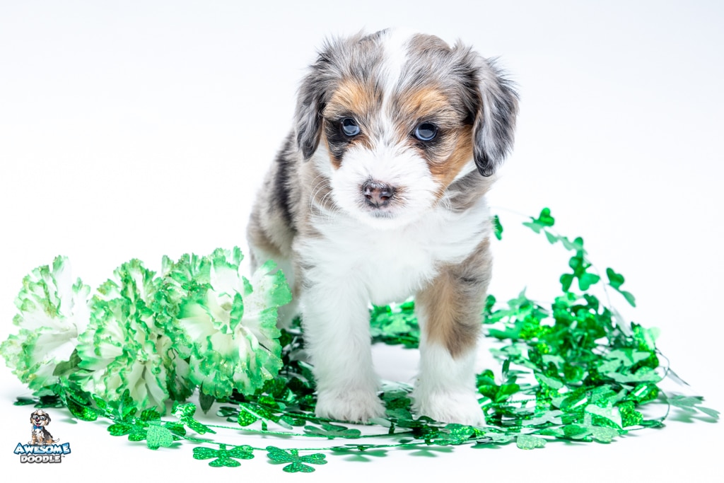 Harper is a female Blue Merle w/ White & Copper F1 AussieDoodle puppy.