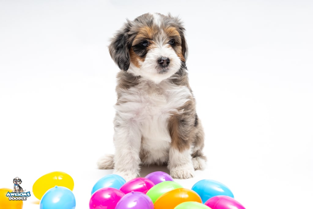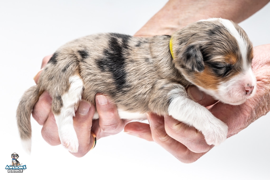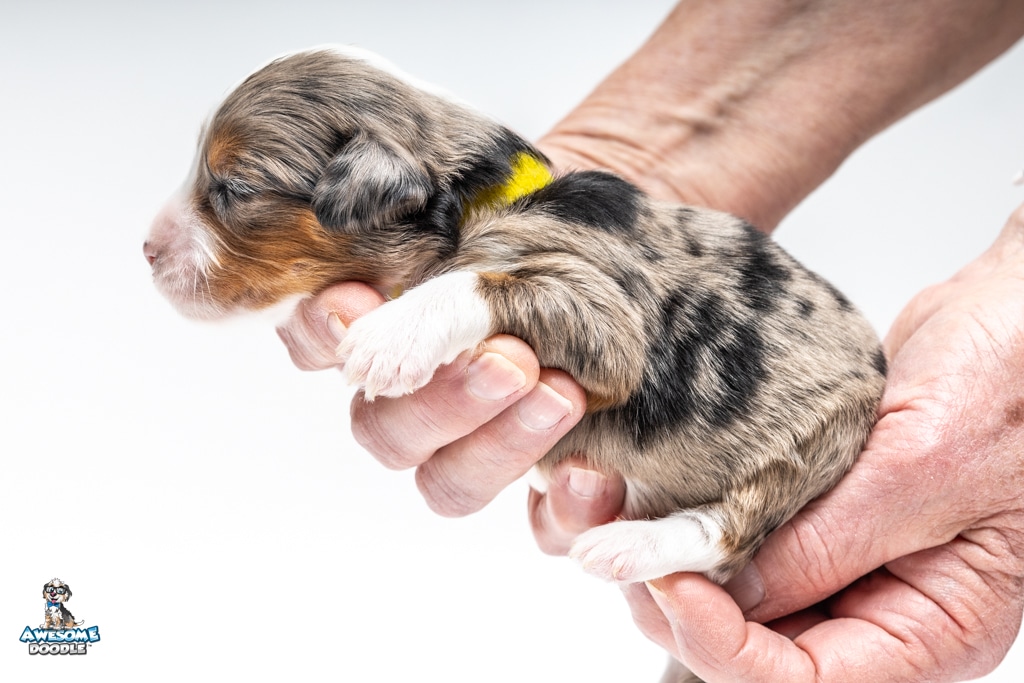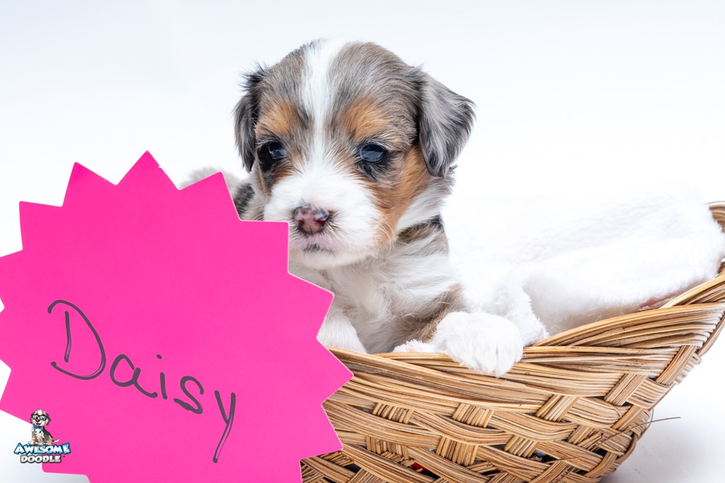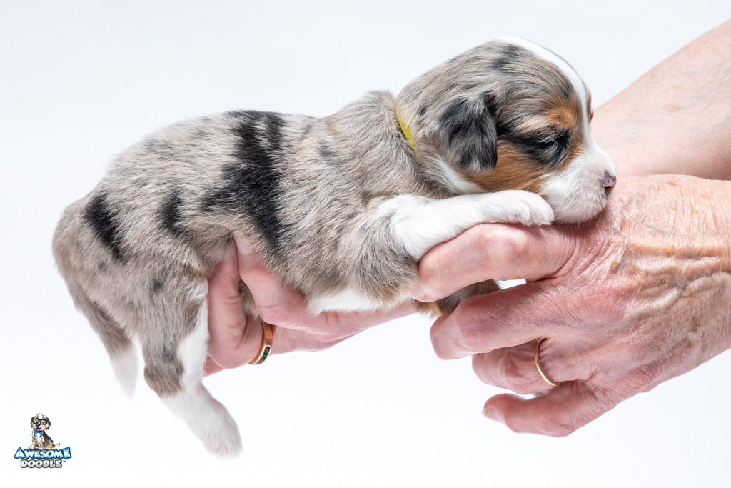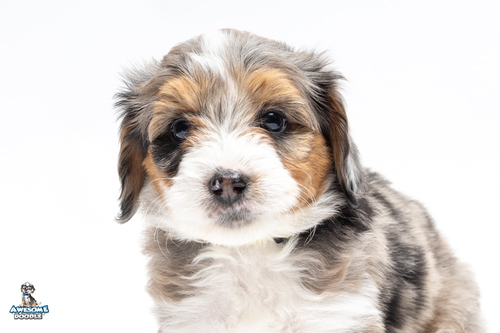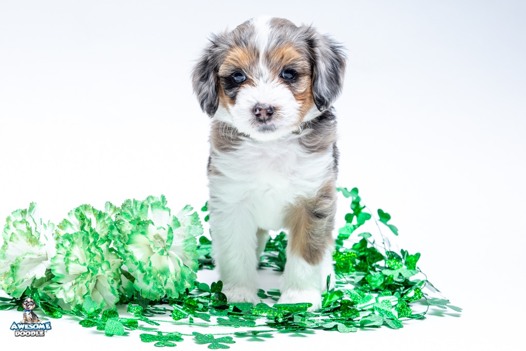 Harper is a female Blue Merle w/ White & Copper F1 AussieDoodle puppy.