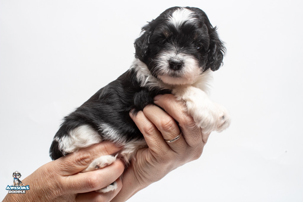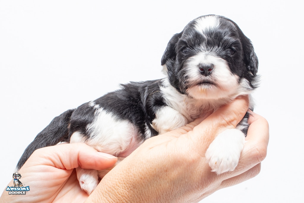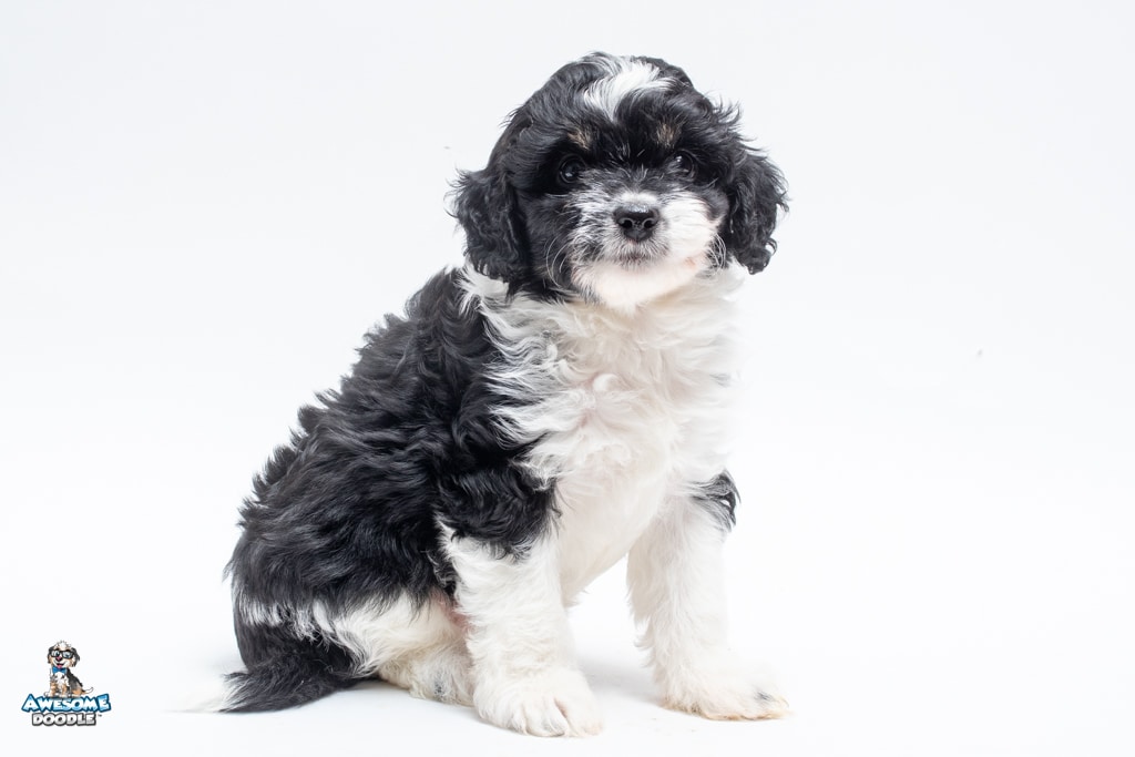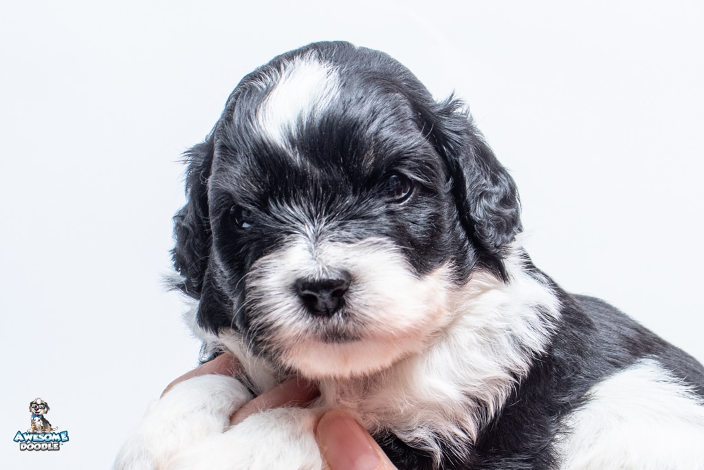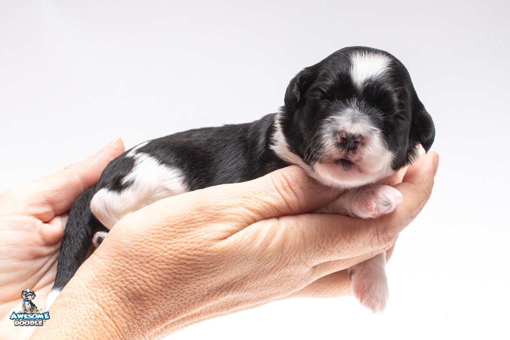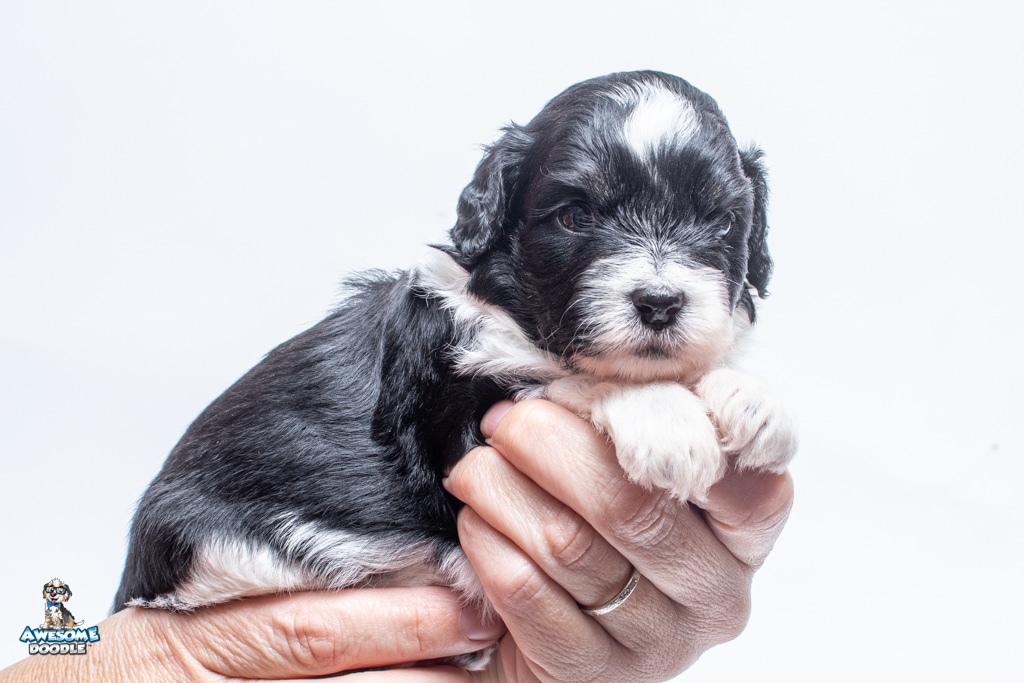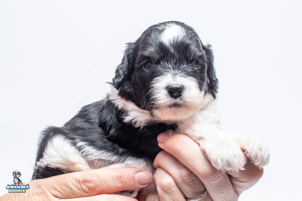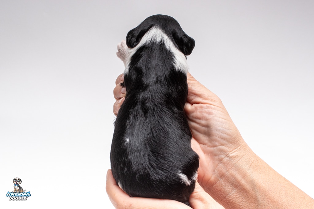Sydney is a female Black Tri-Color F1 AussieDoodle puppy.
