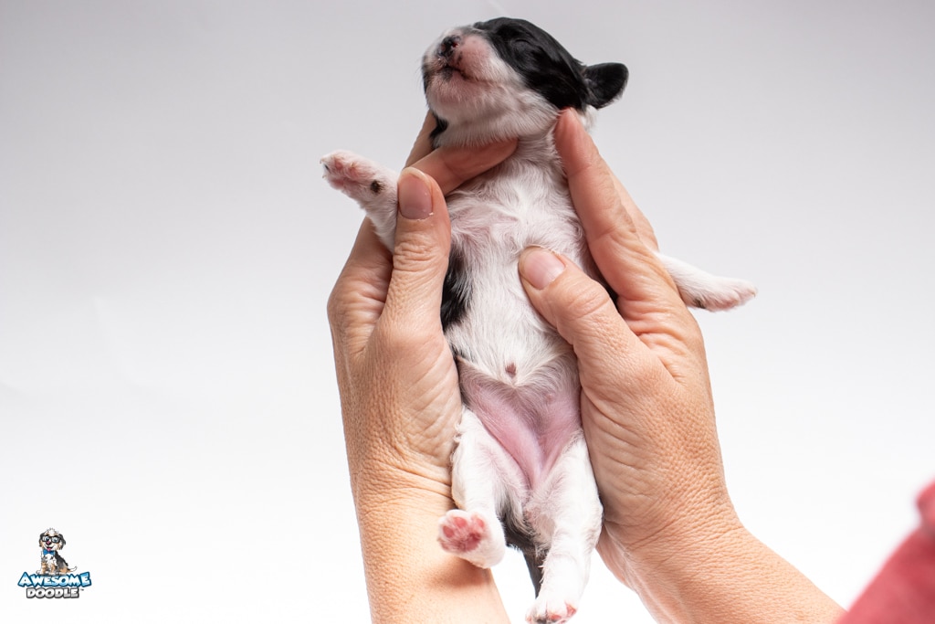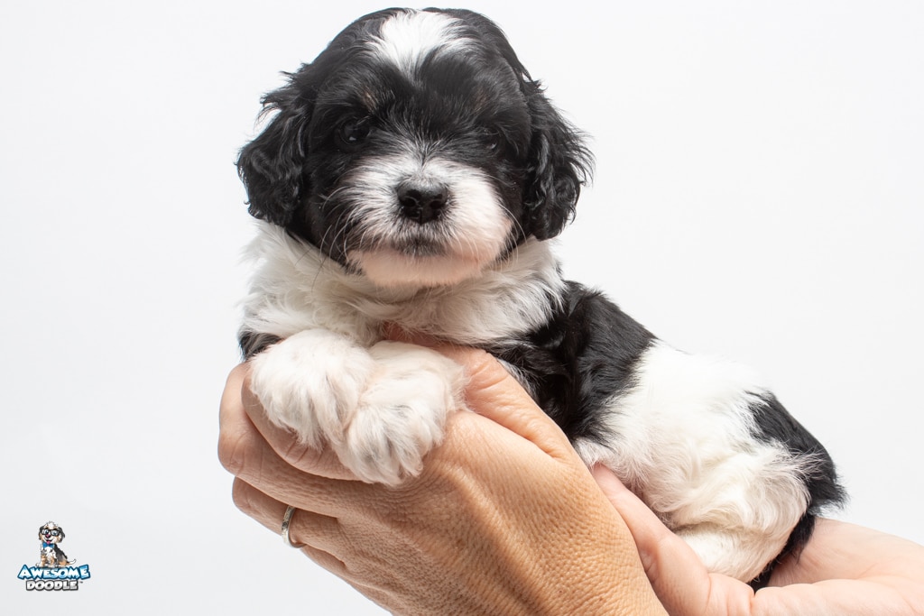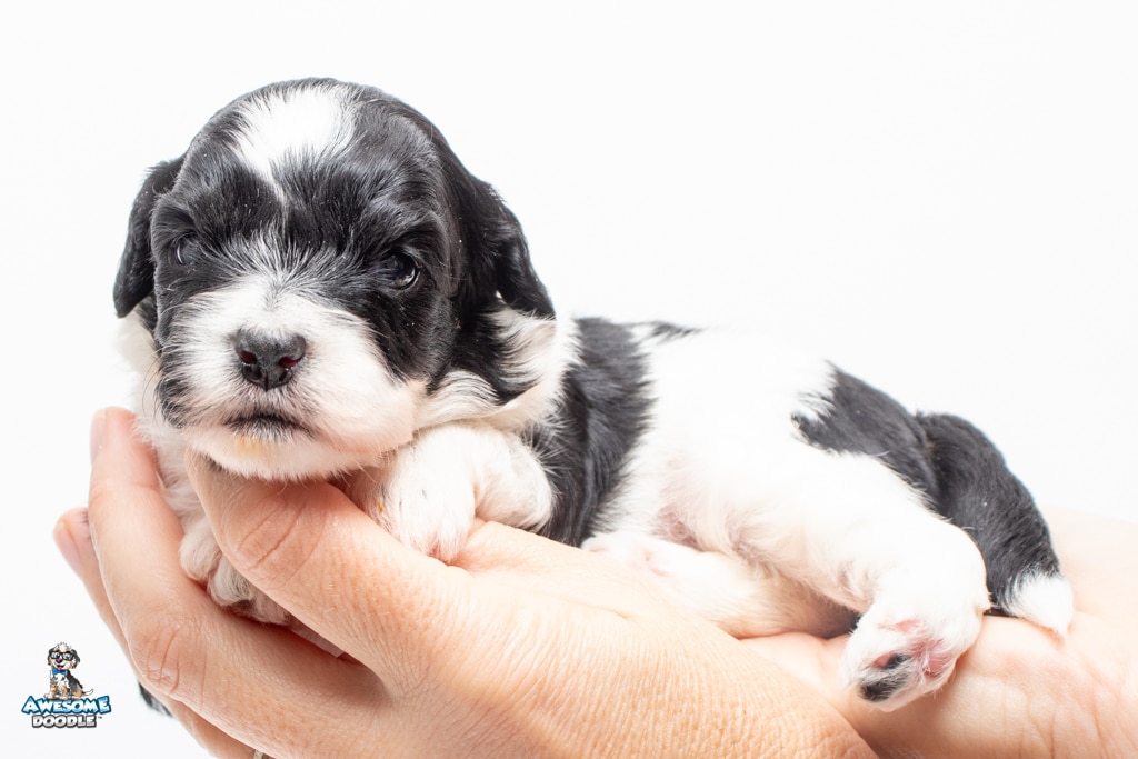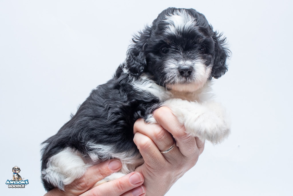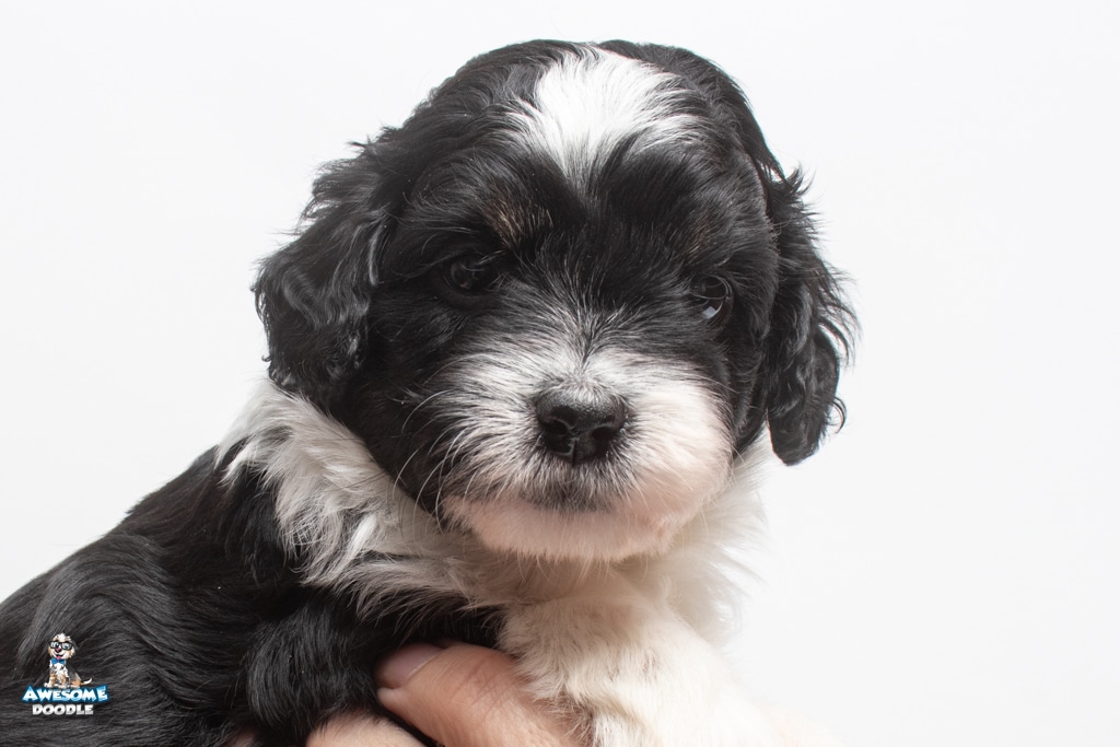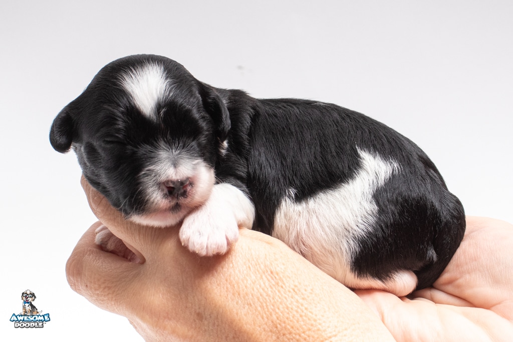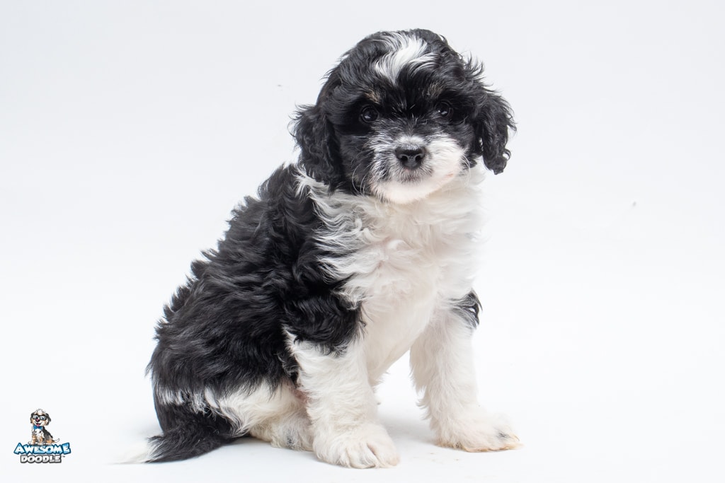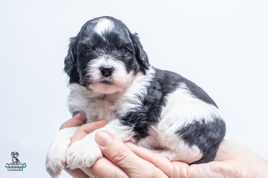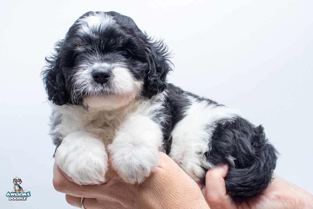 Sydney is a female Black Tri-Color F1 AussieDoodle puppy.
