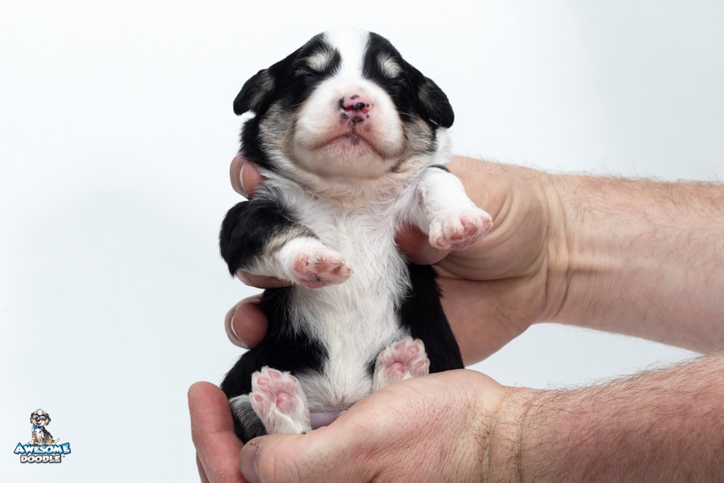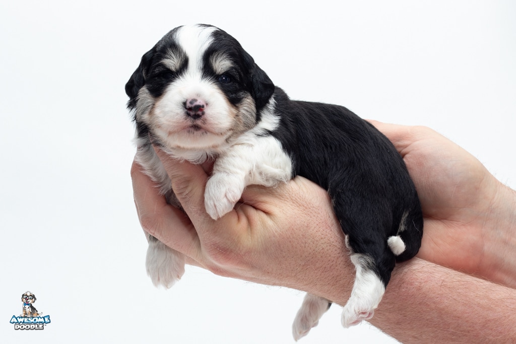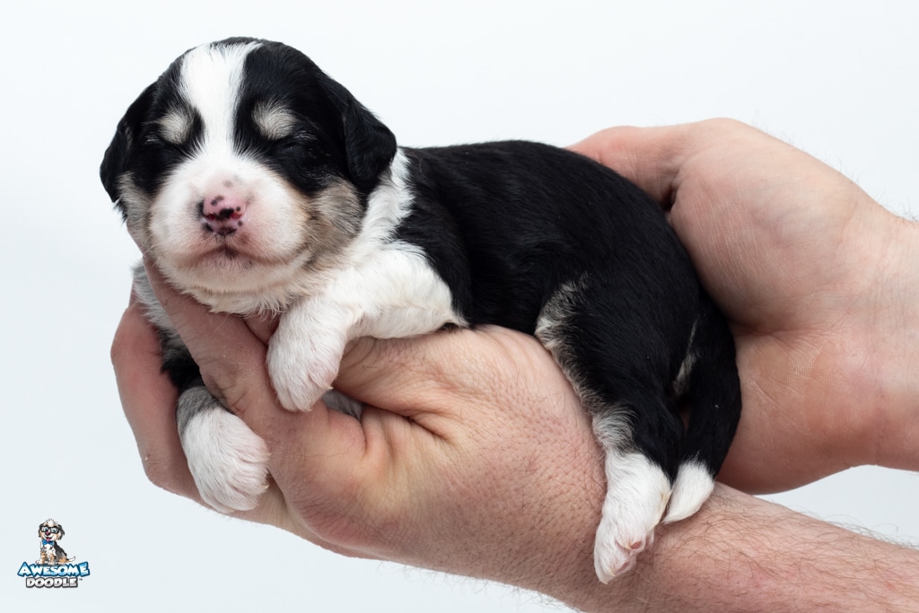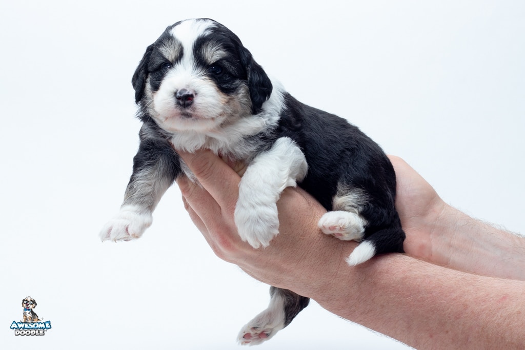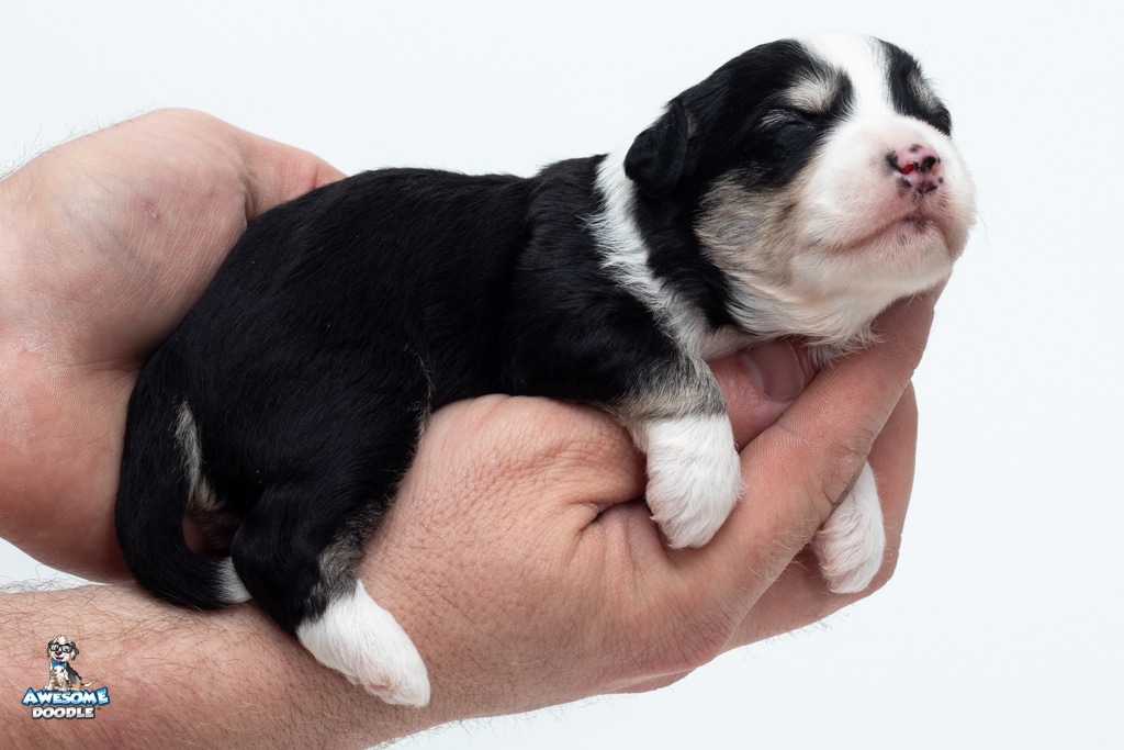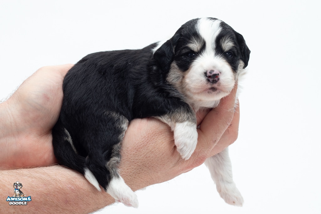 Archie is a male Black Tri-Color F1 AussieDoodle puppy.