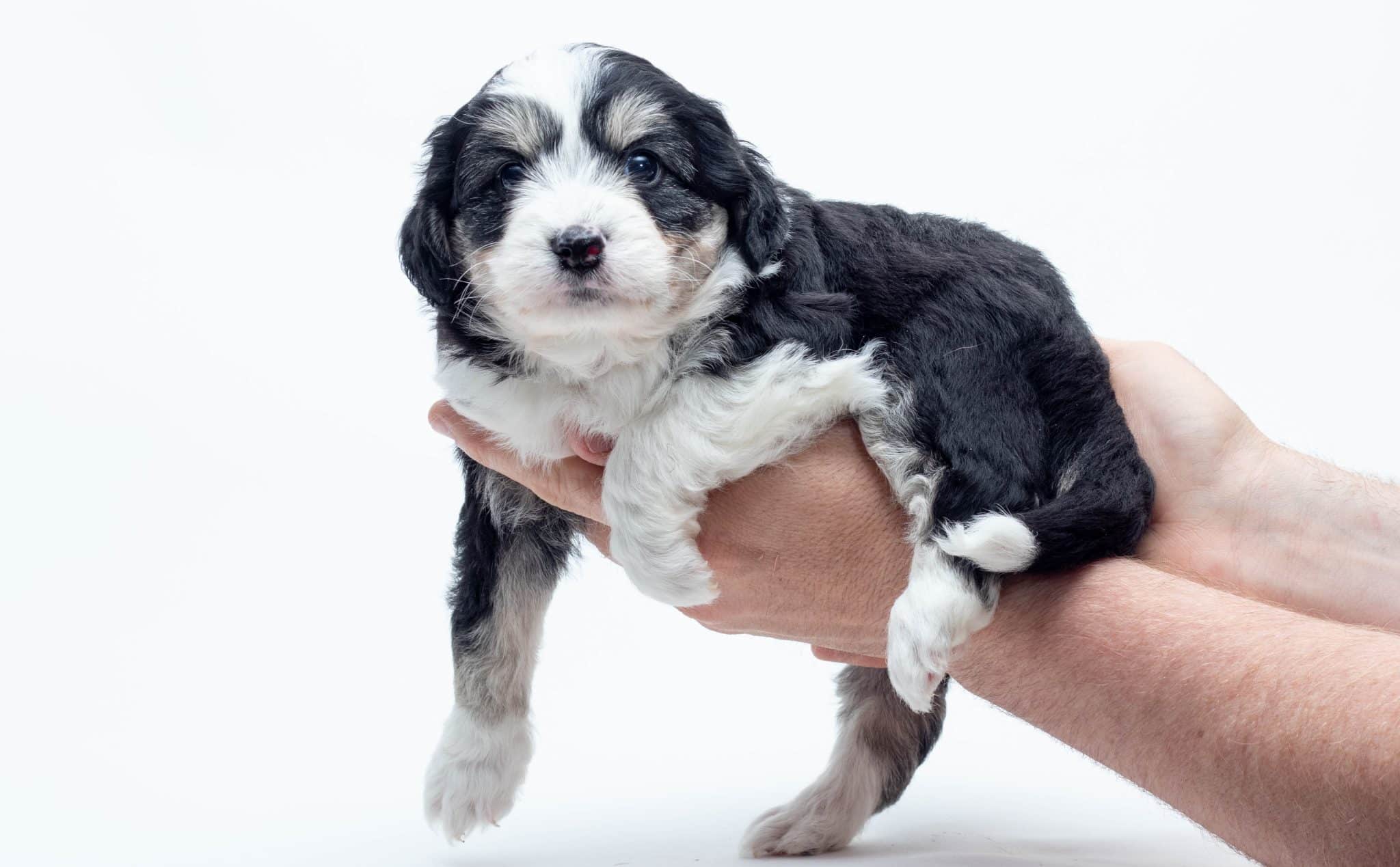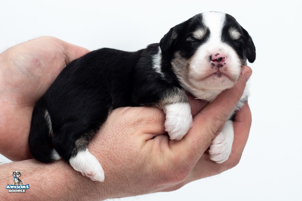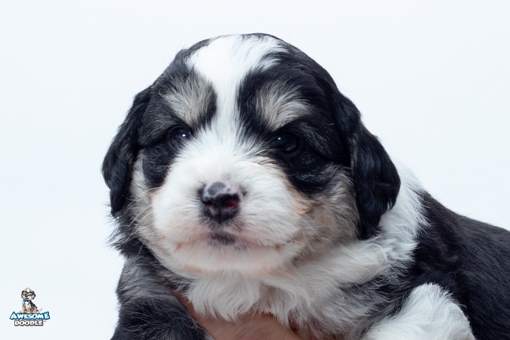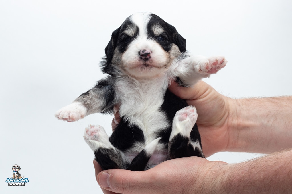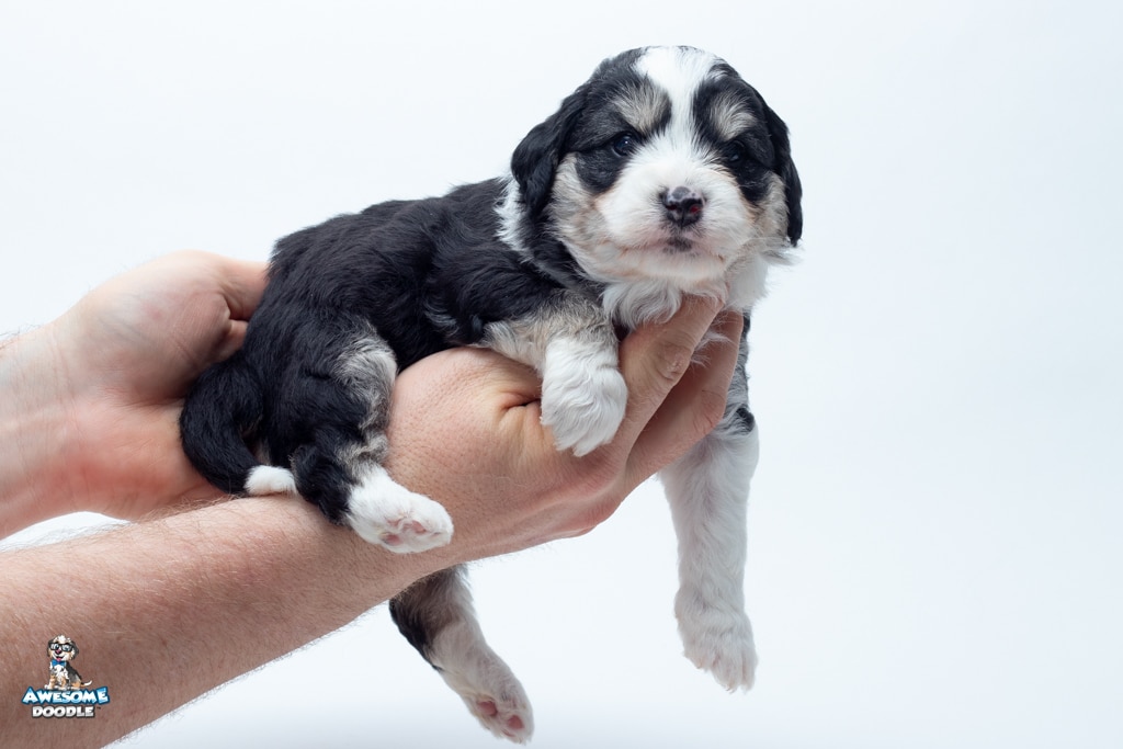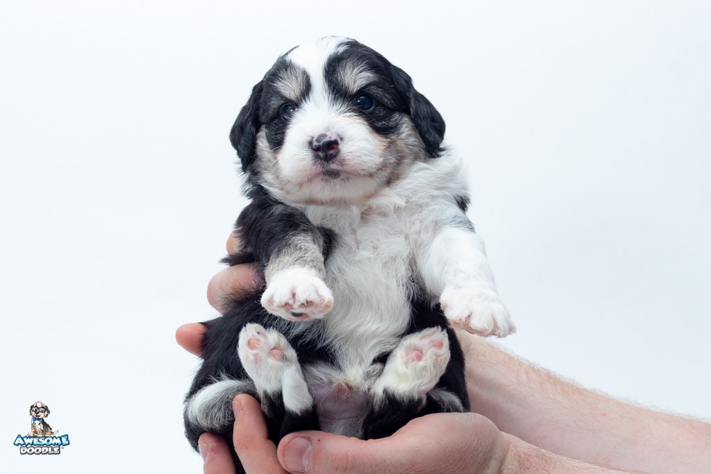 Archie is a male Black Tri-Color F1 AussieDoodle puppy.