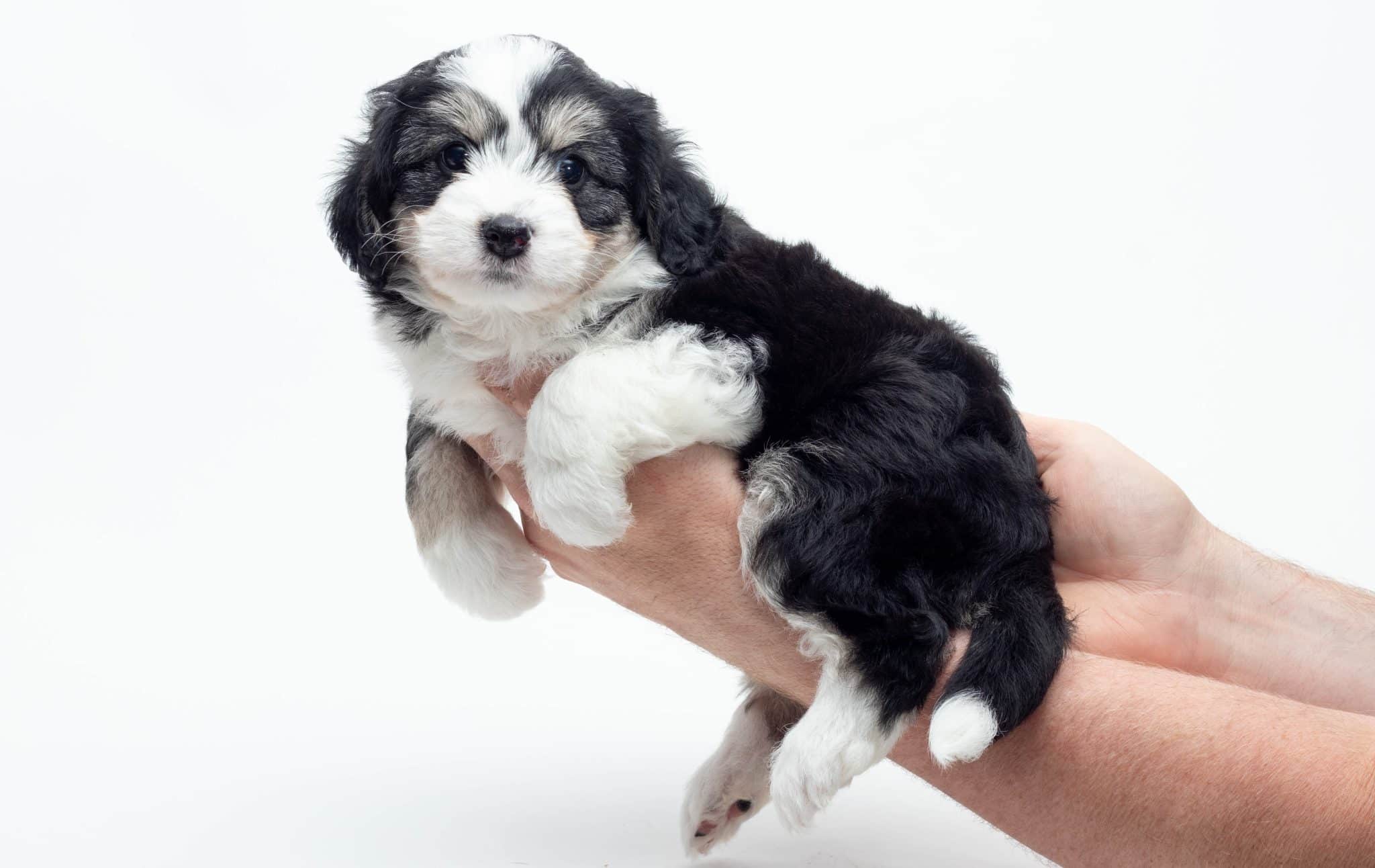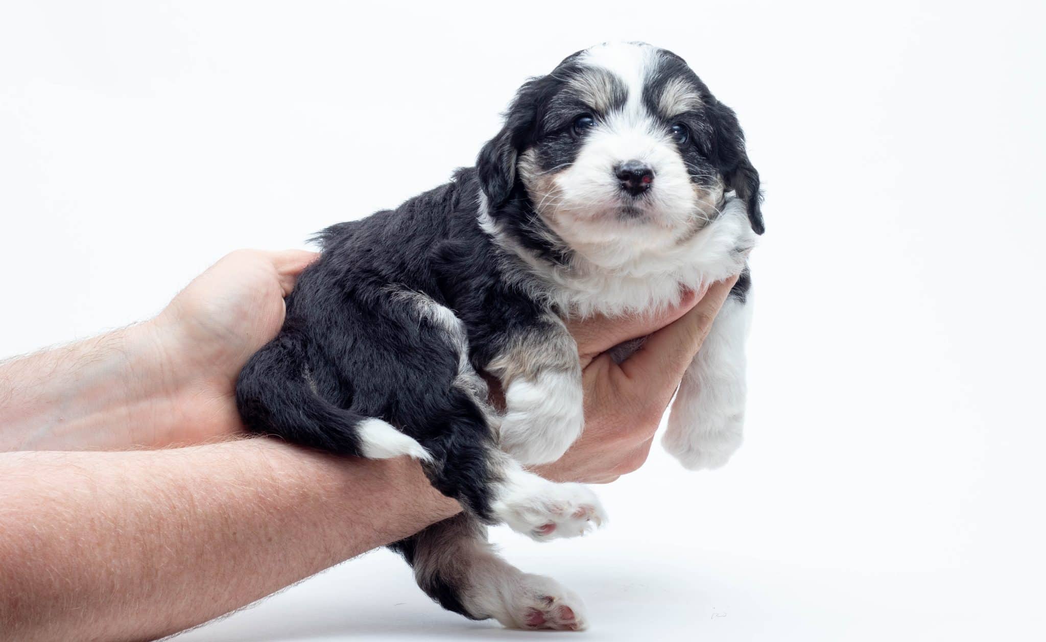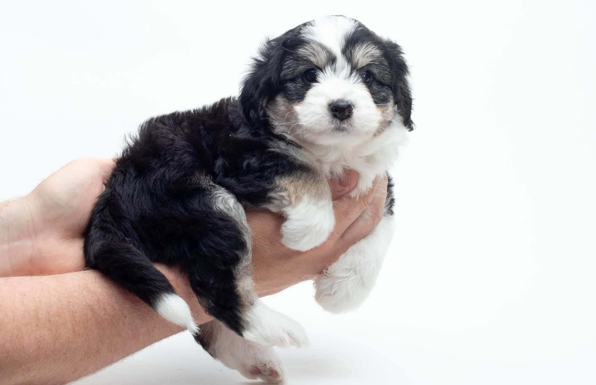 Archie is a male Black Tri-Color F1 AussieDoodle puppy.