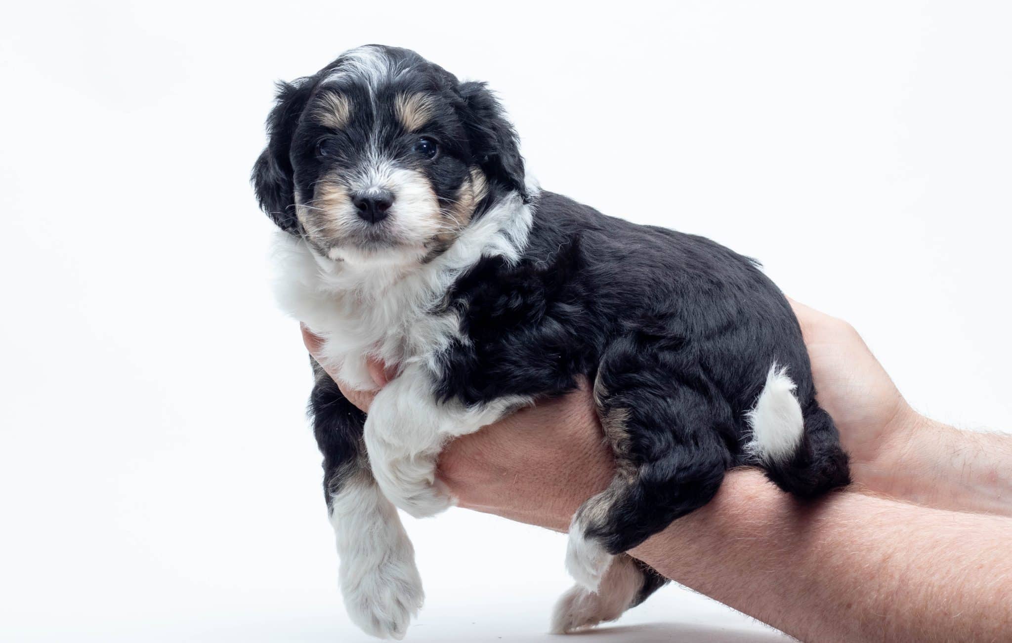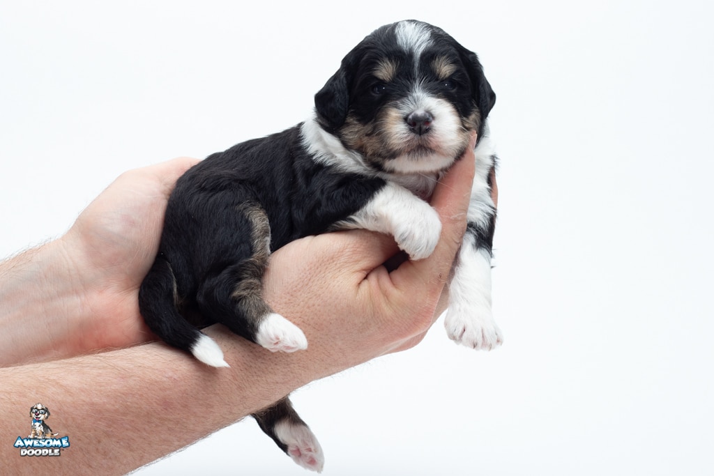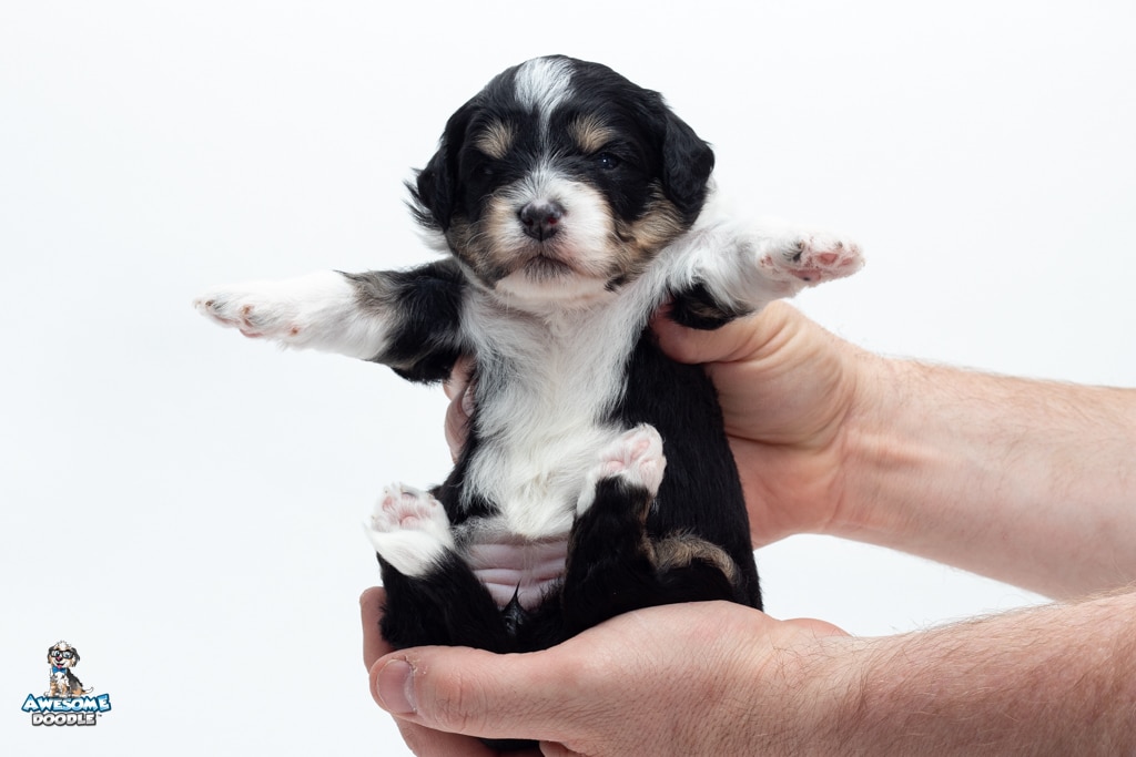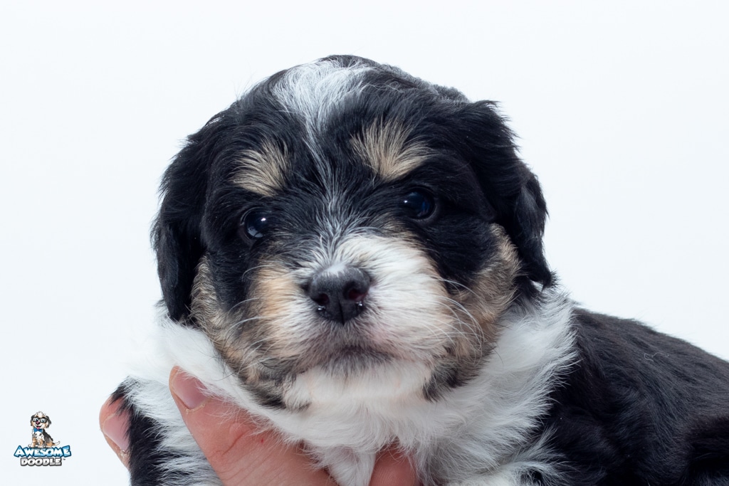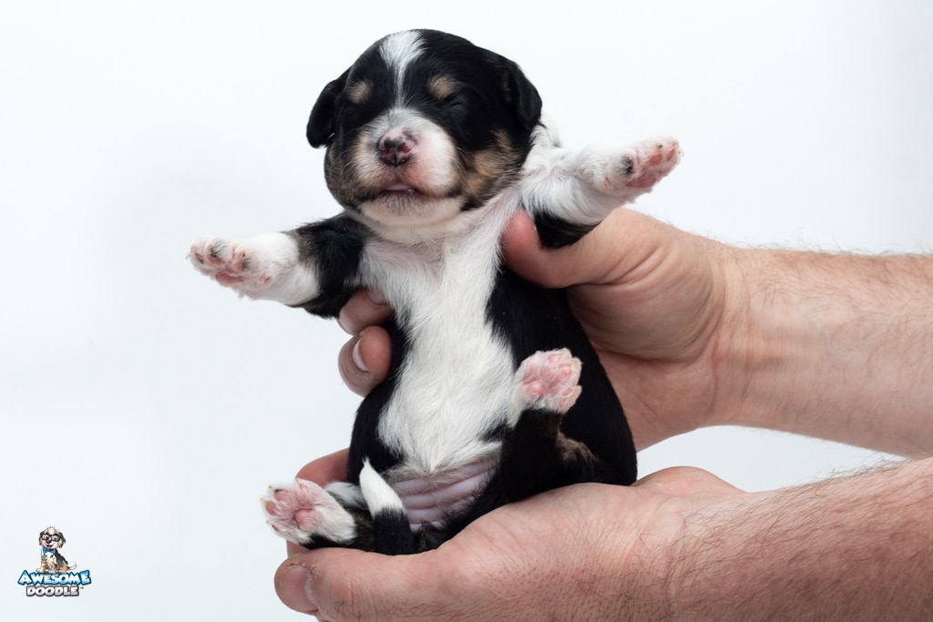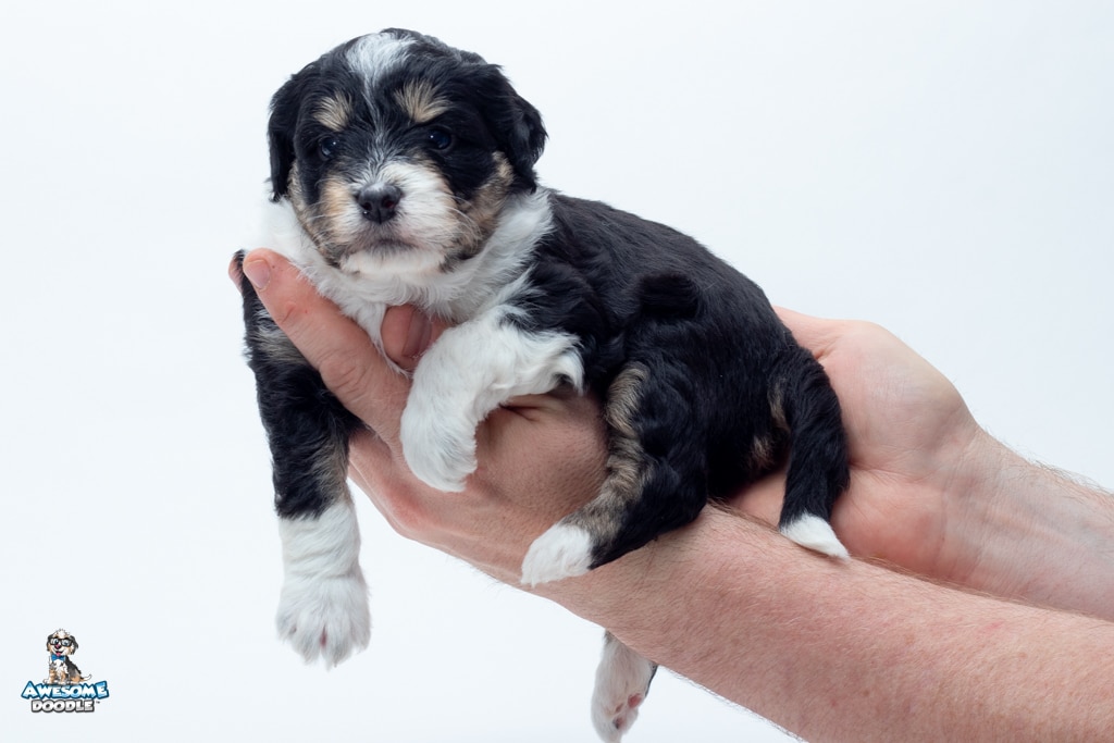 Mookie is a female Black Tri-Color F1 AussieDoodle puppy.