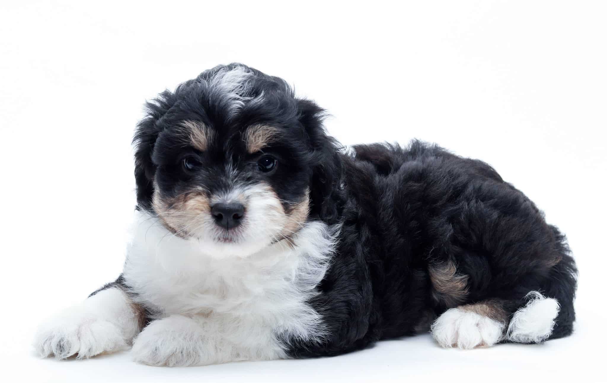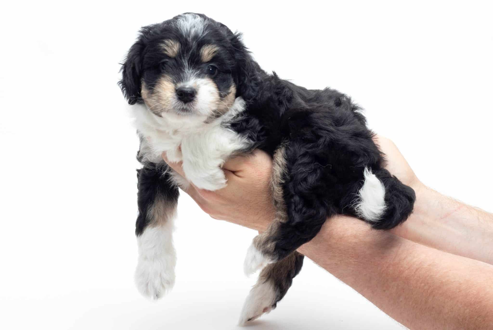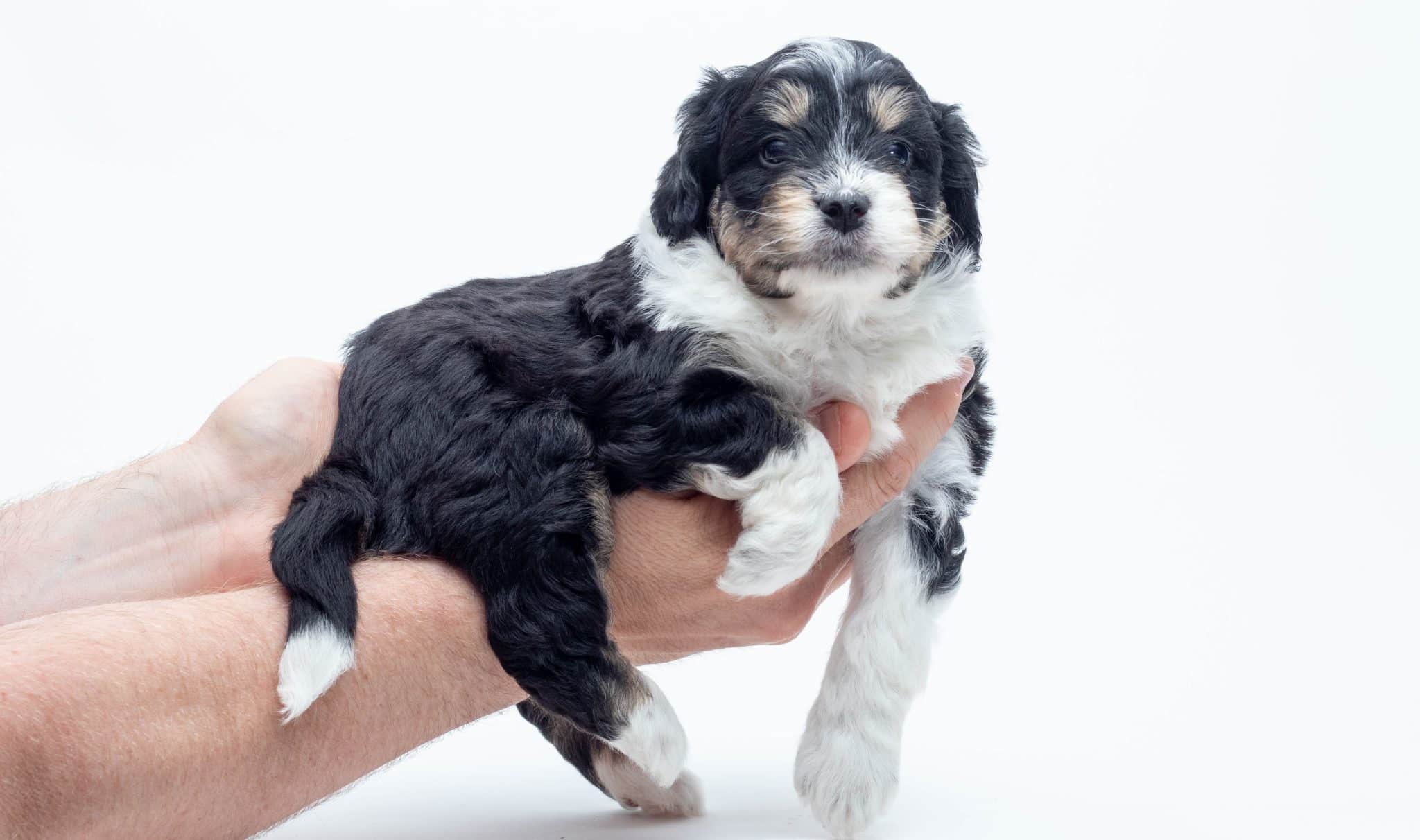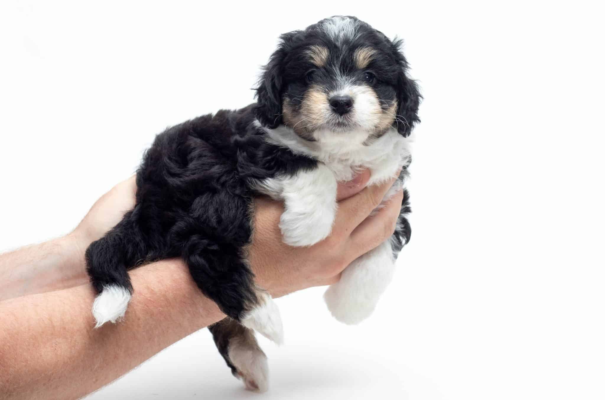 Mookie is a female Black Tri-Color F1 AussieDoodle puppy.
