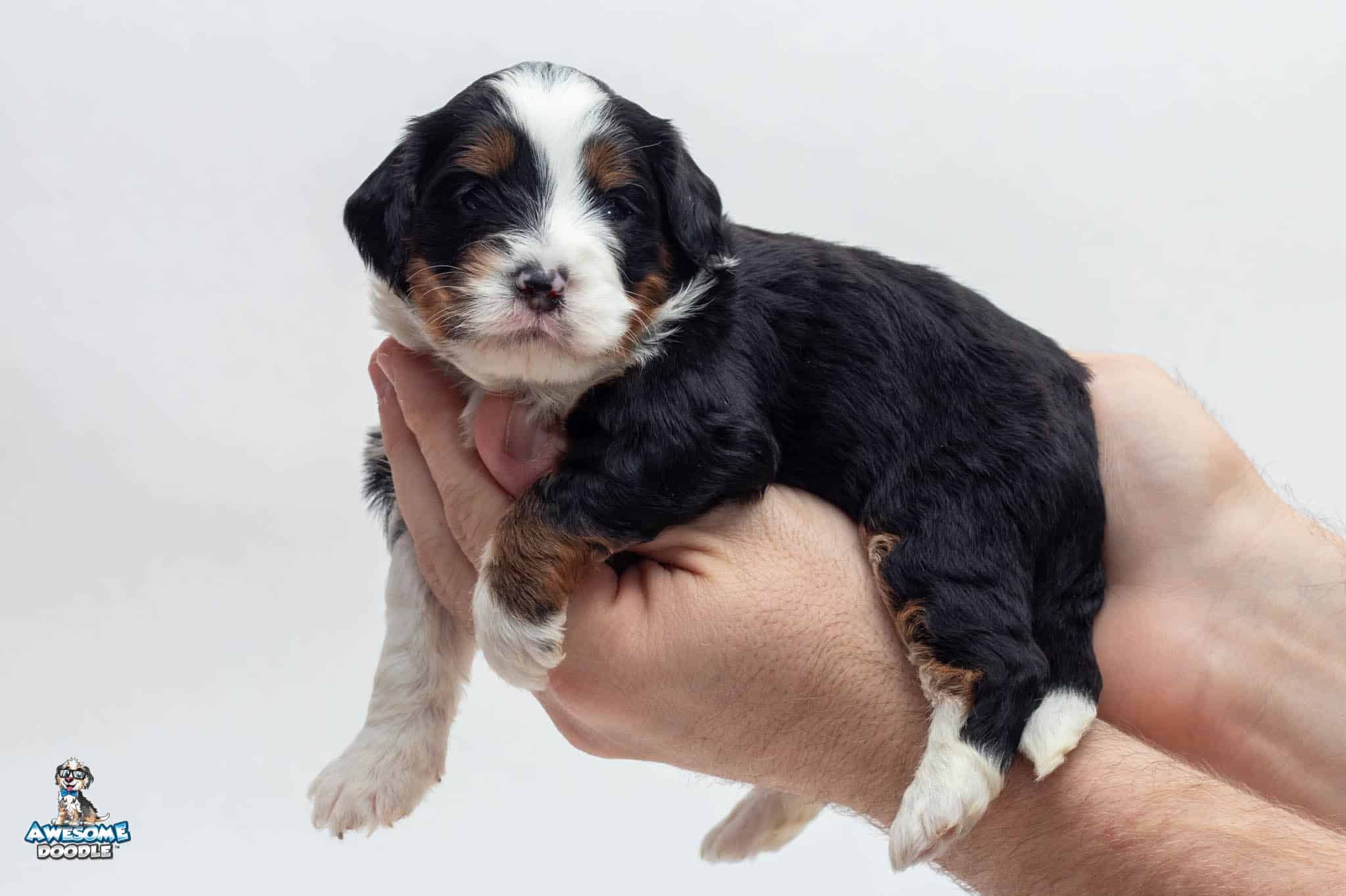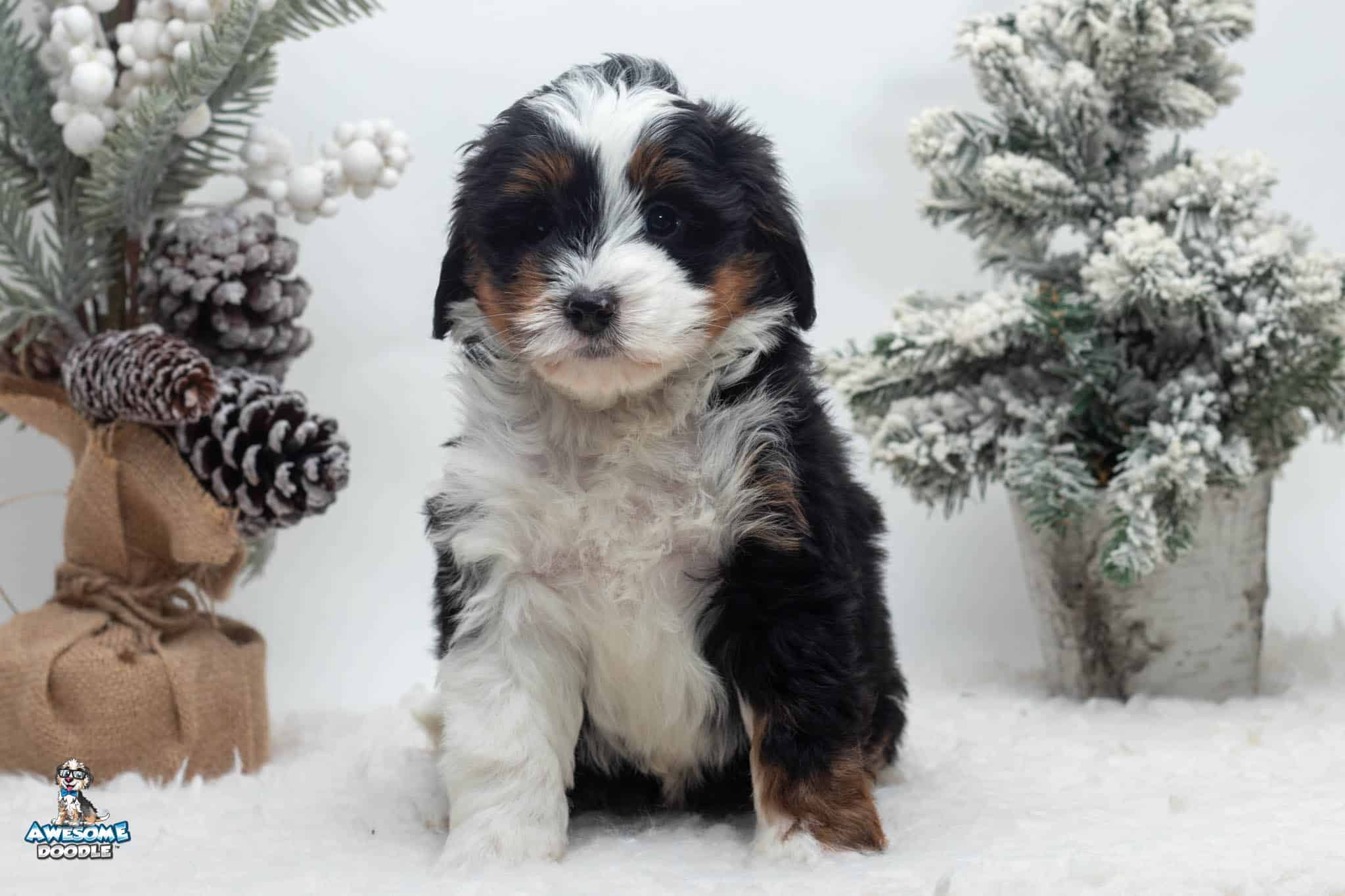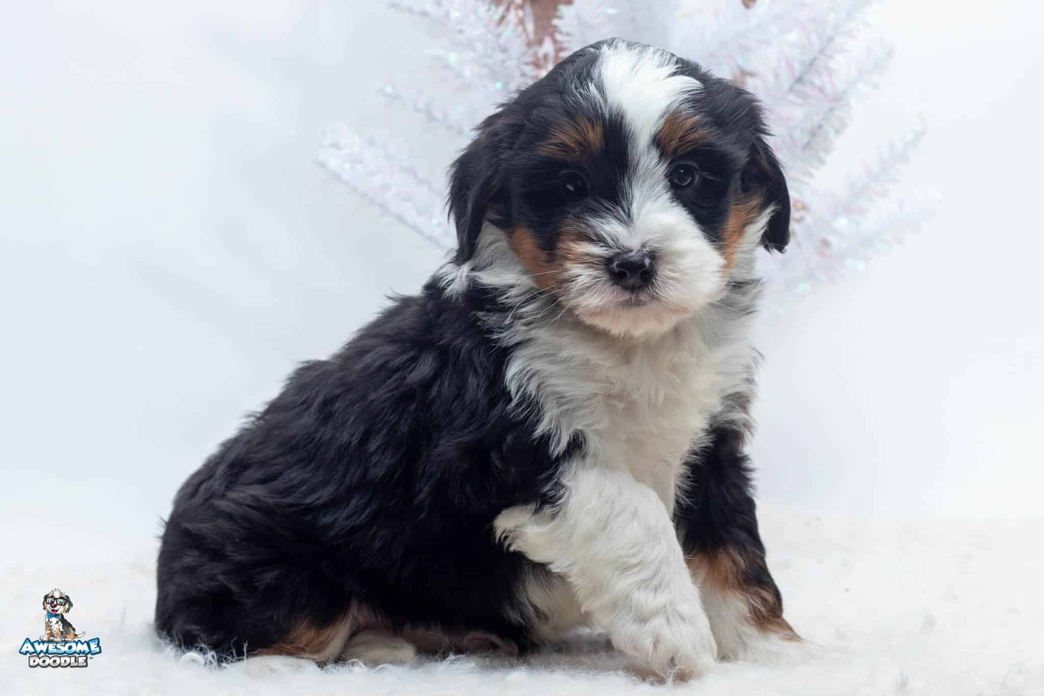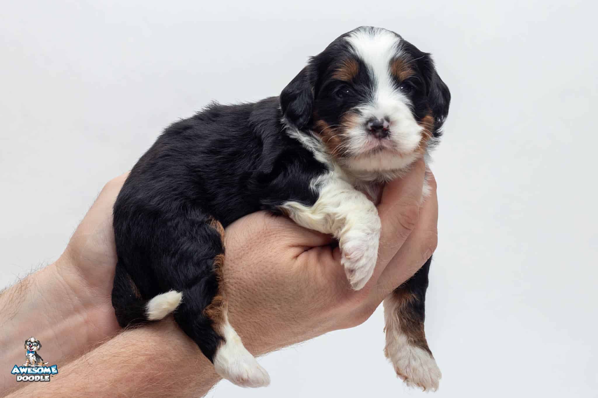 Ginger is a female Black Tri-Color F2 BerneDoodle puppy.