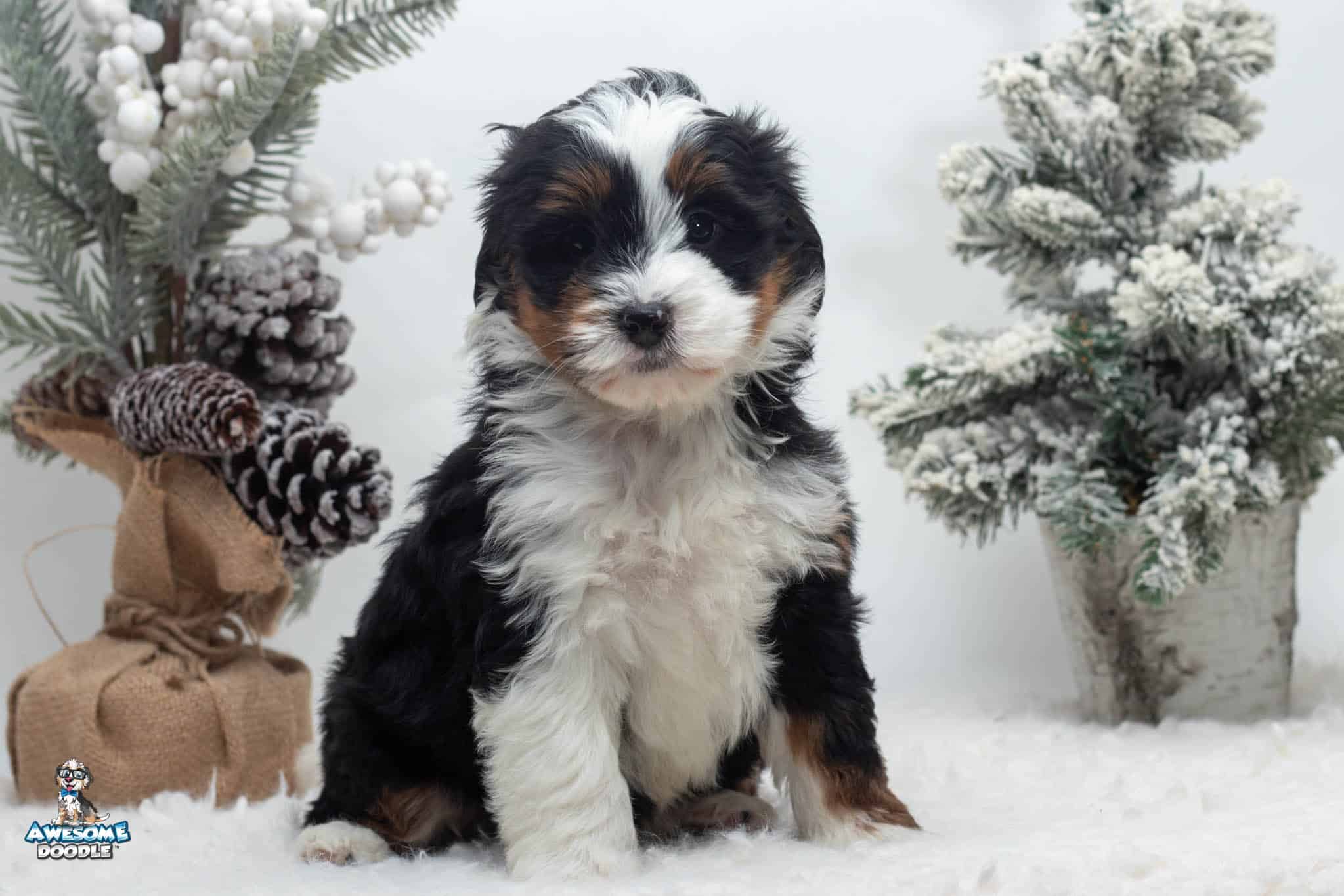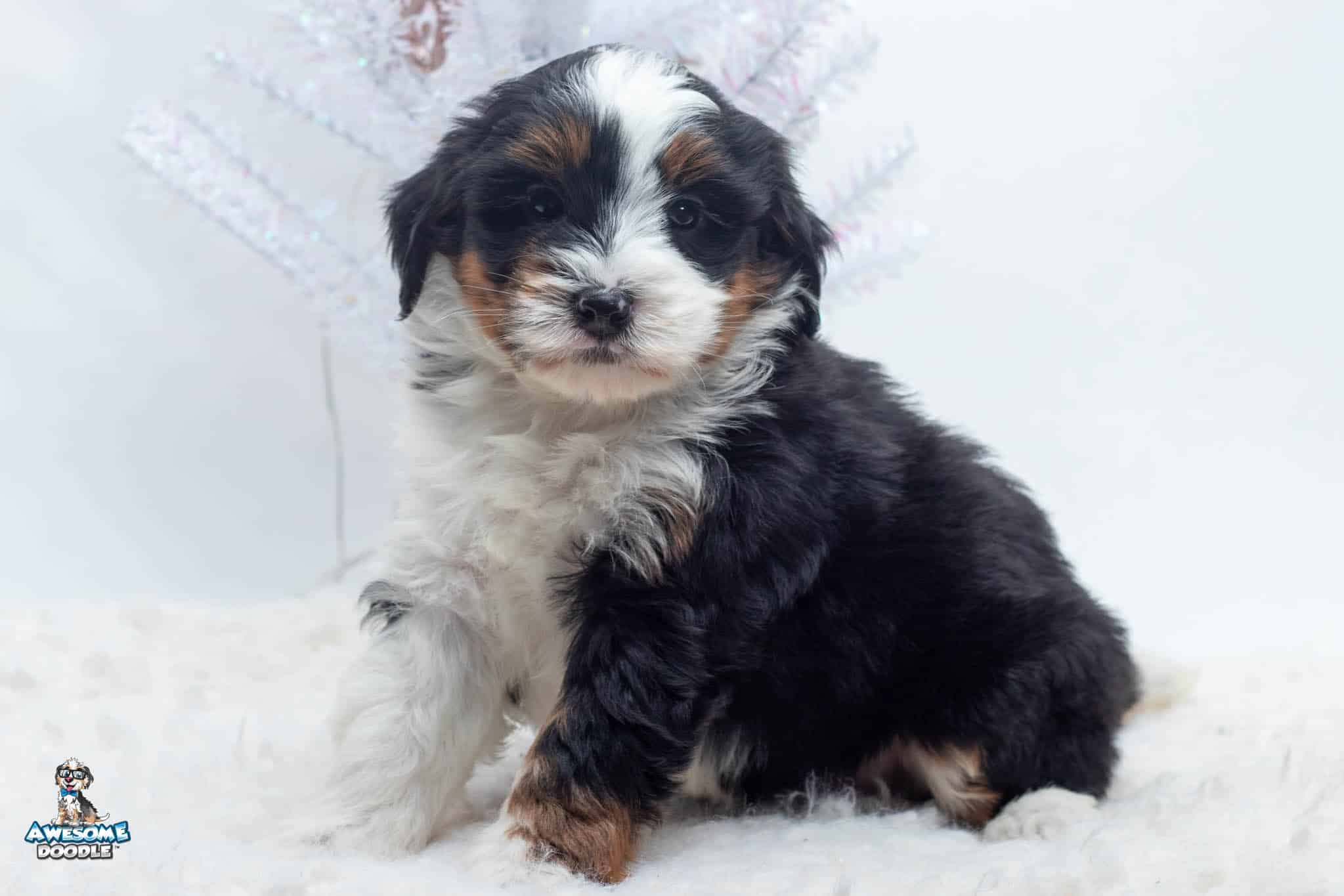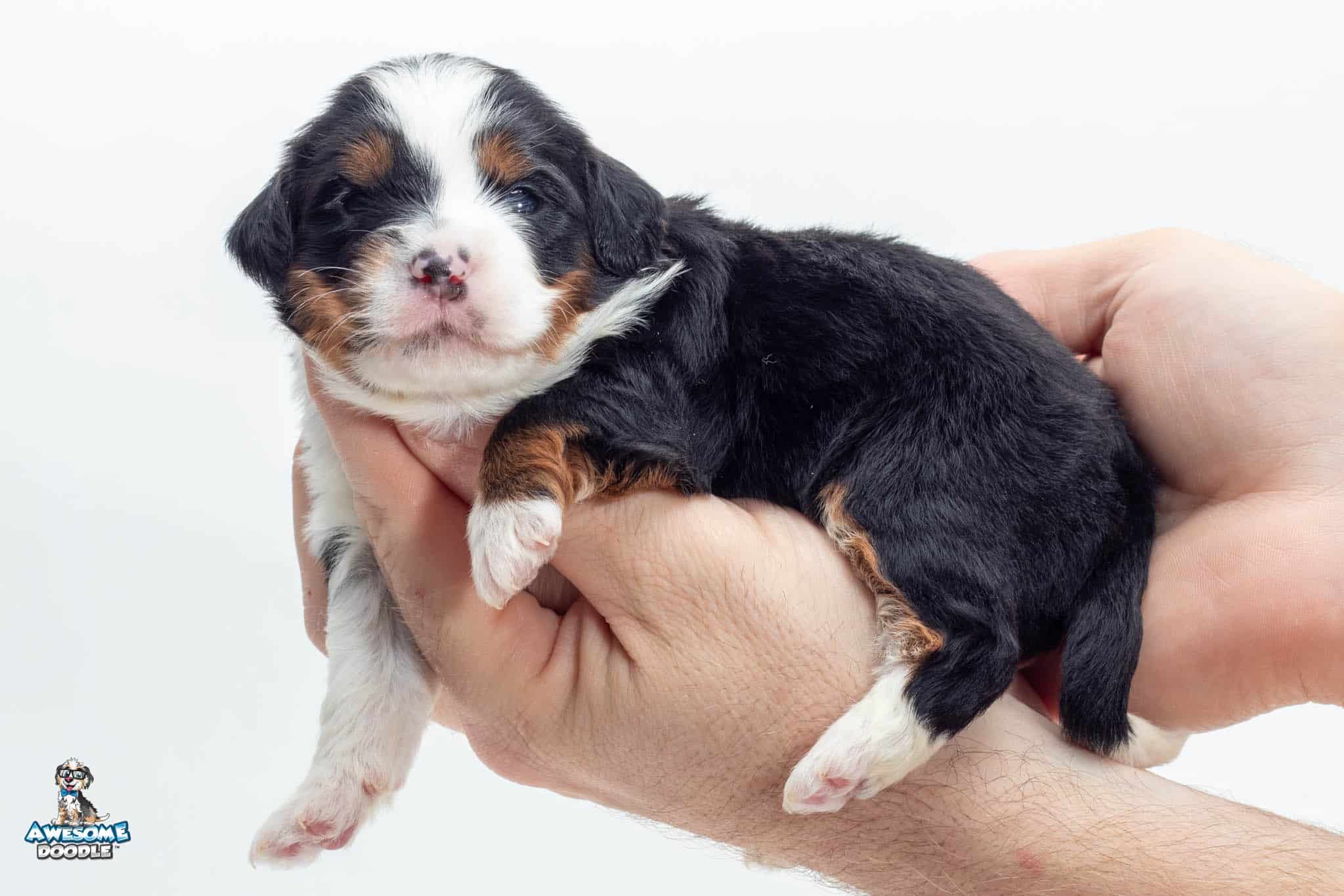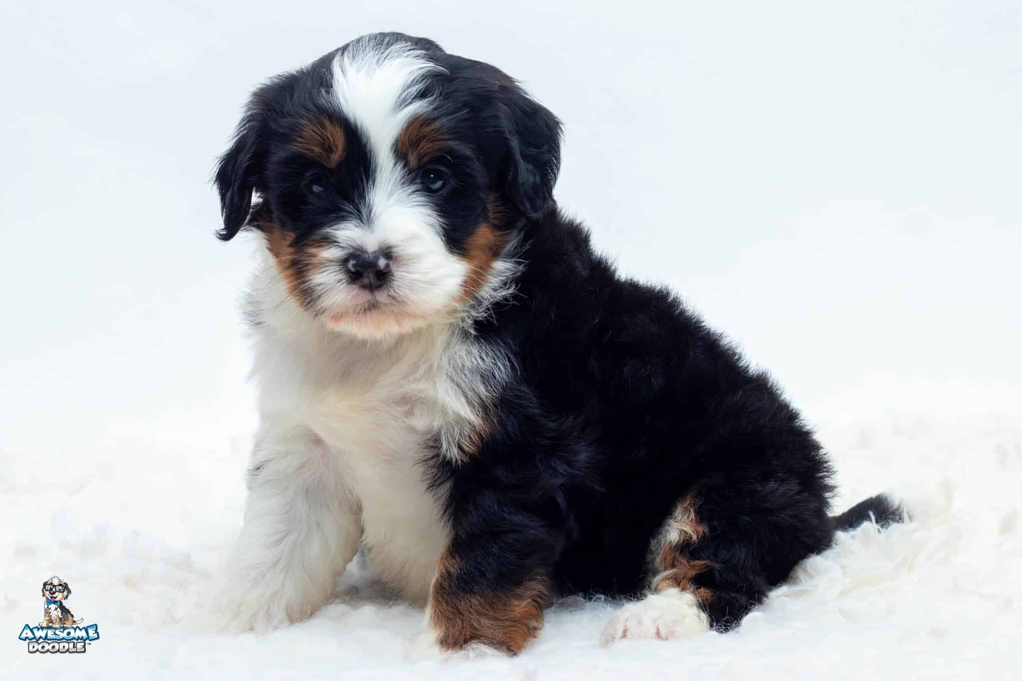 Ginger is a female Black Tri-Color F2 BerneDoodle puppy.