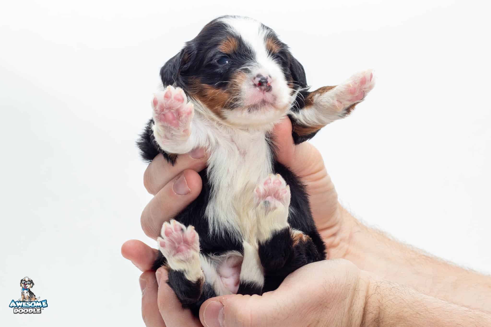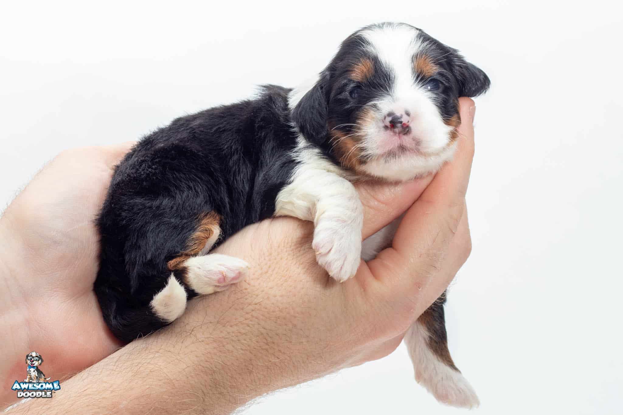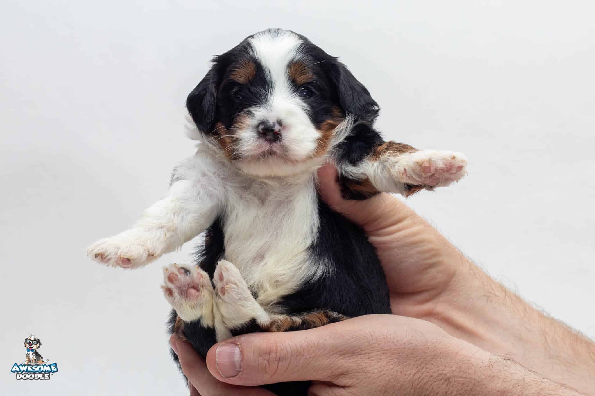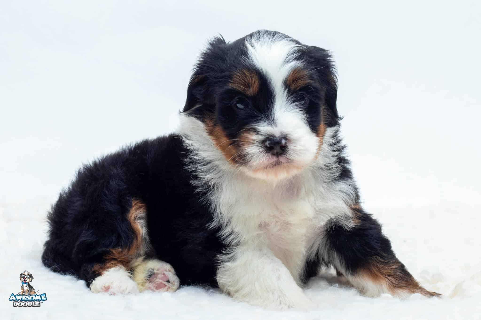 Ginger is a female Black Tri-Color F2 BerneDoodle puppy.