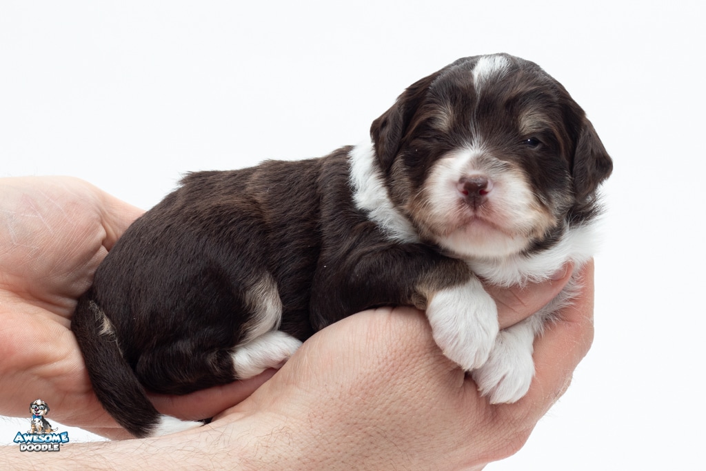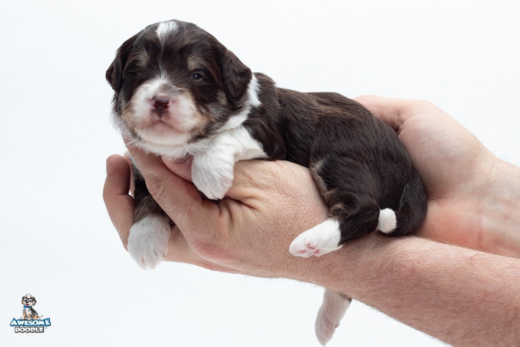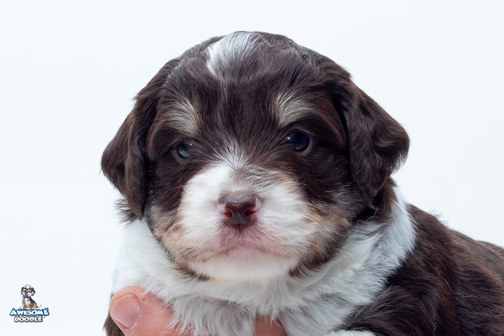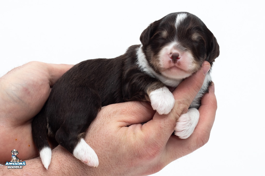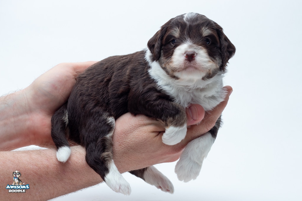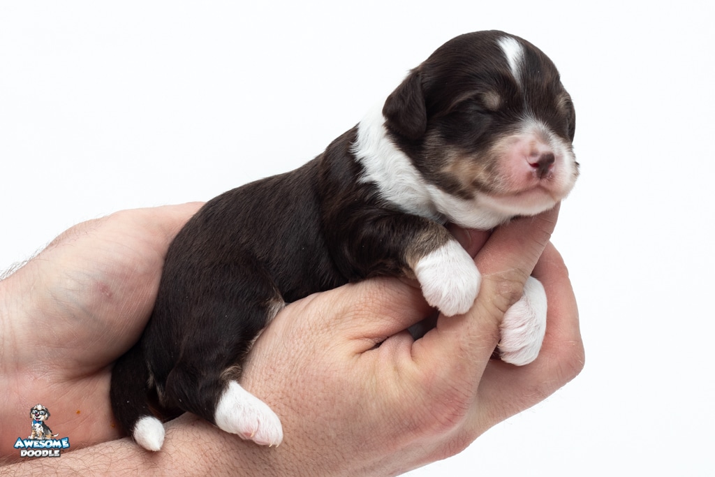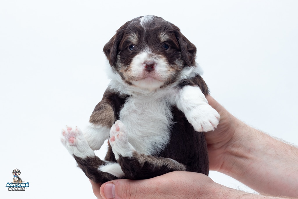 Kobe is a male Chocolate Tri-Color F1 AussieDoodle puppy.