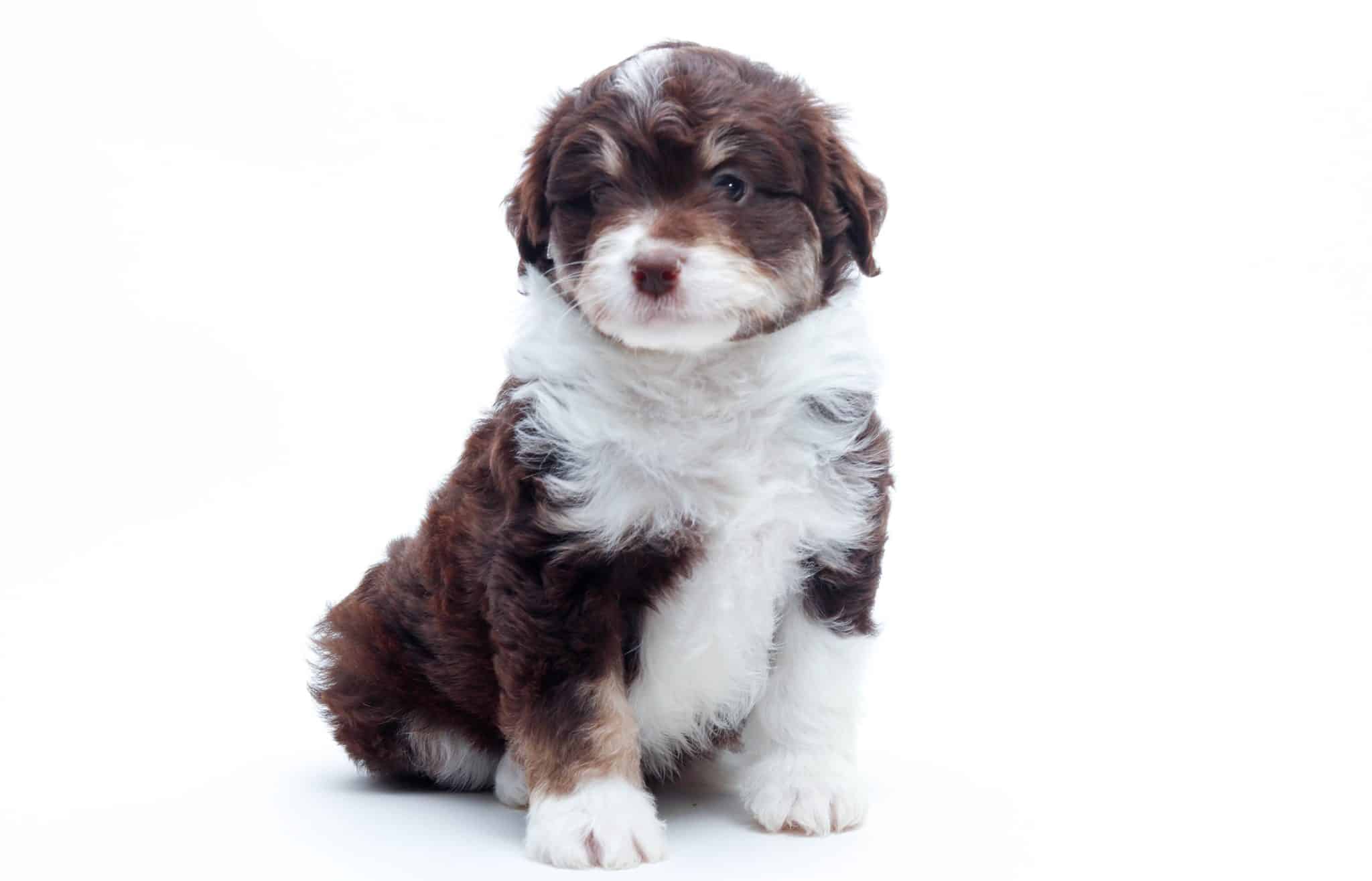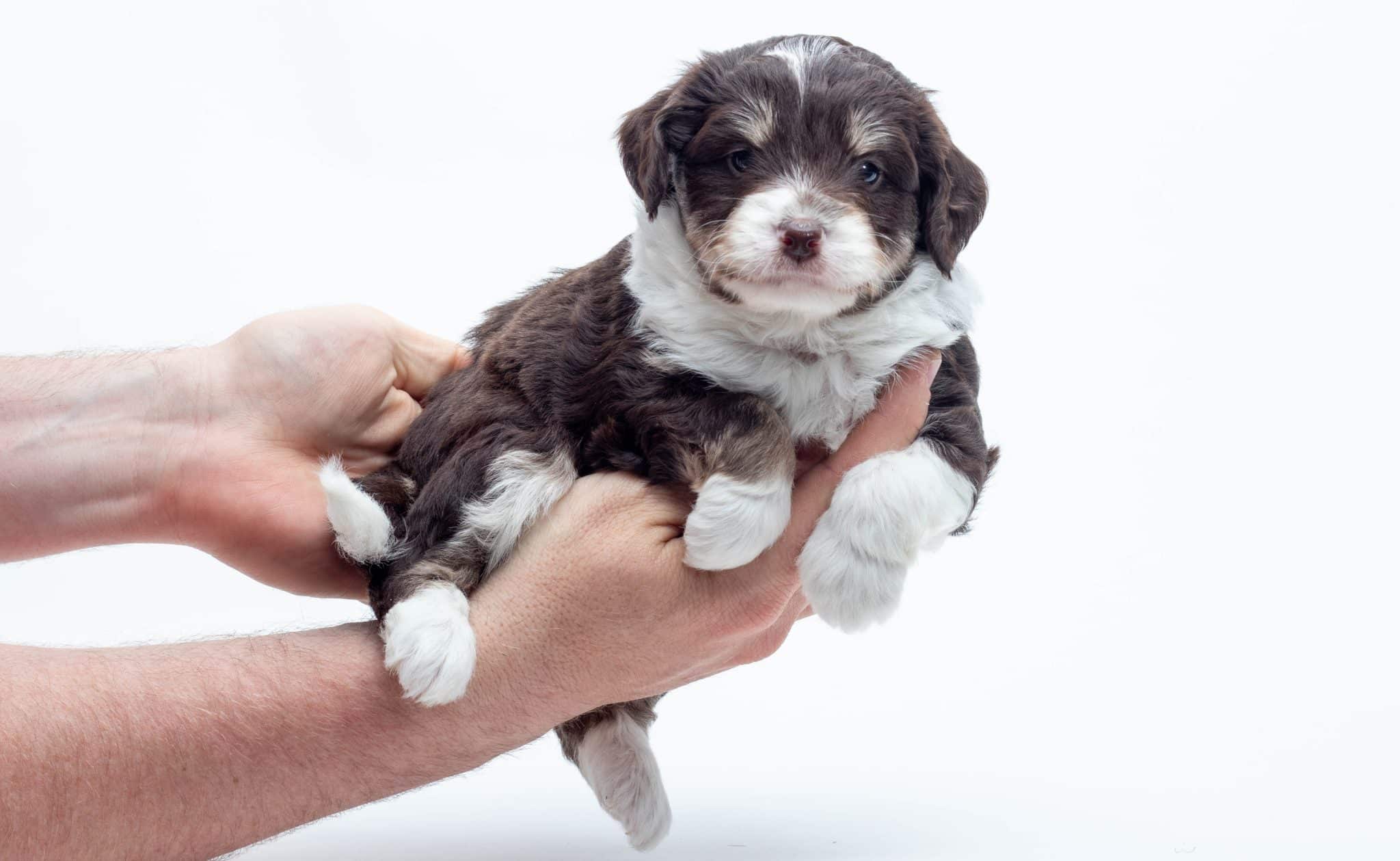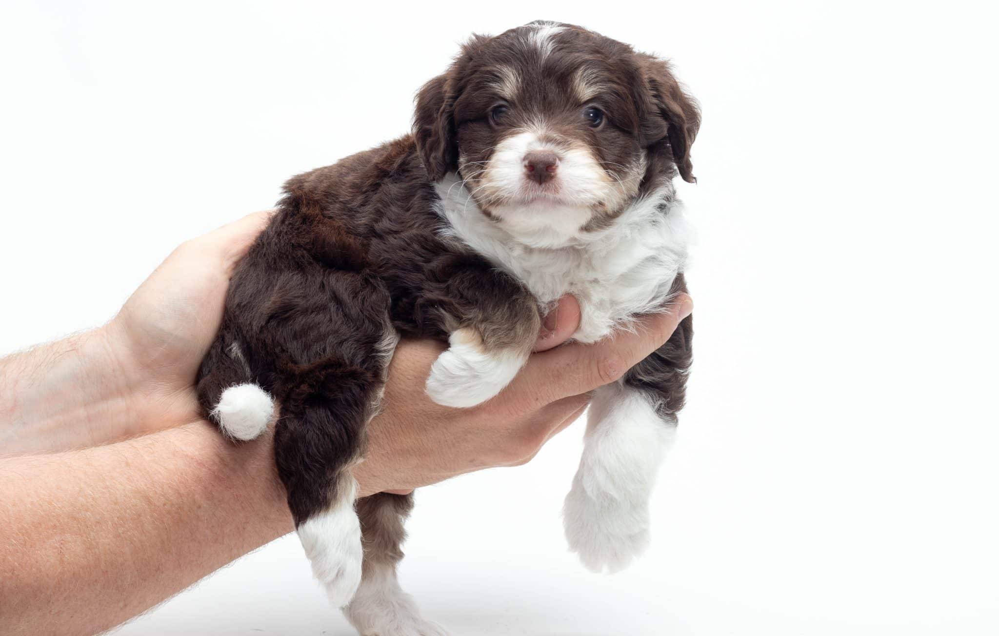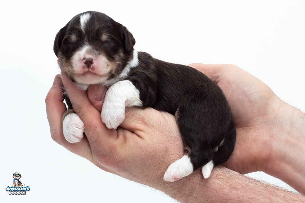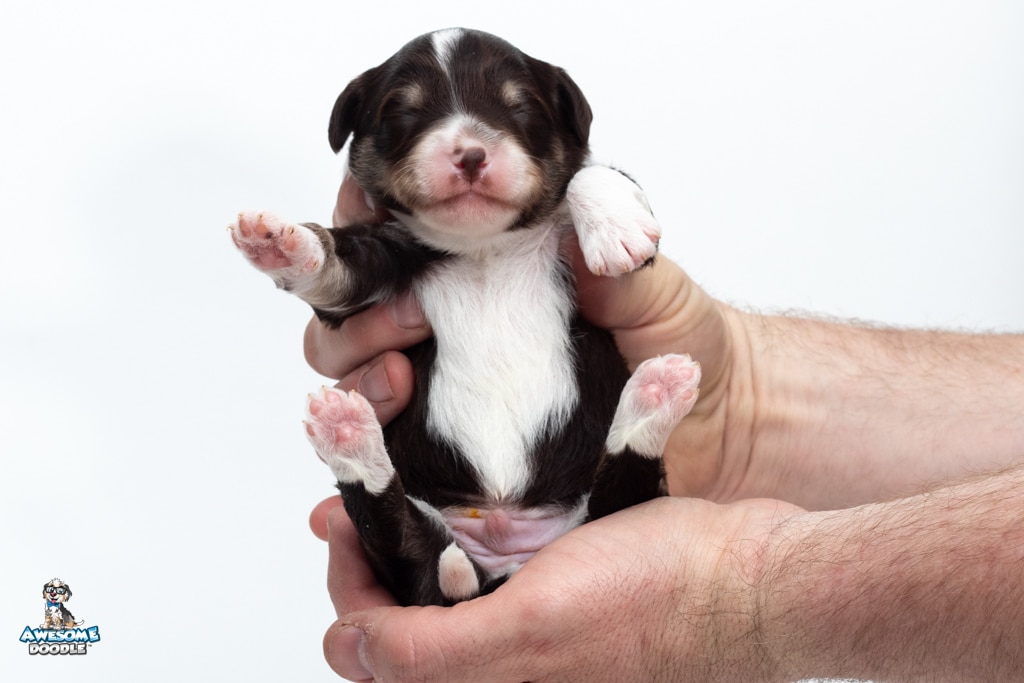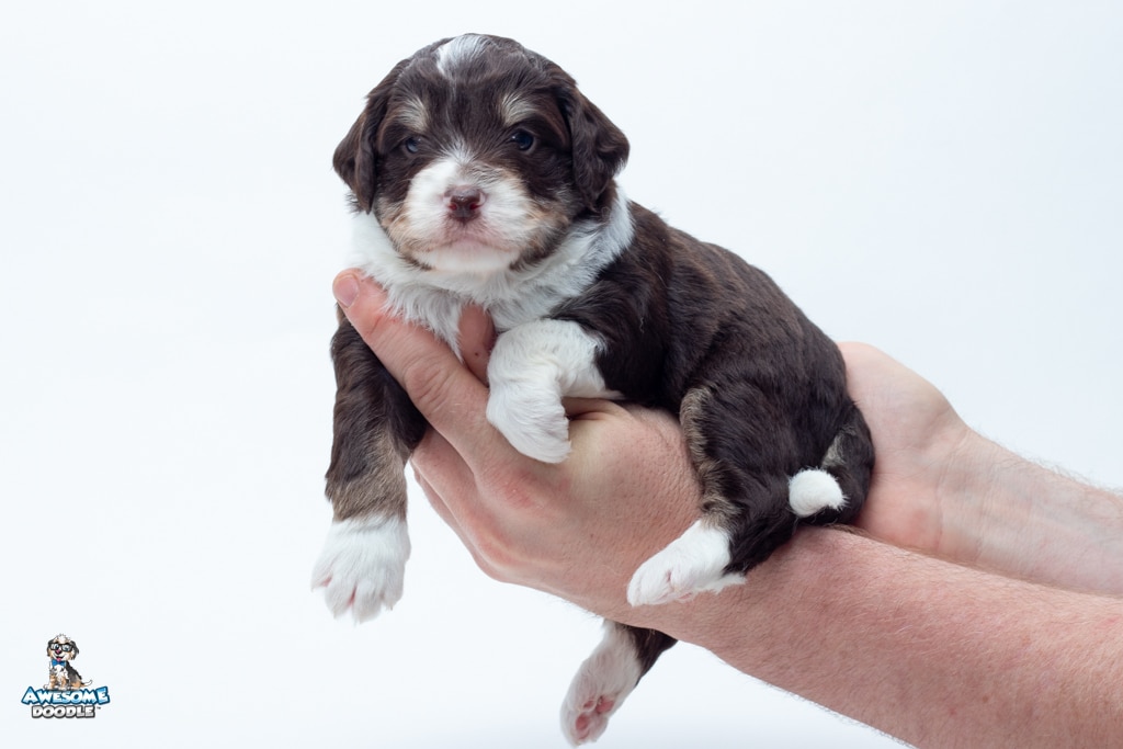 Kobe is a male Chocolate Tri-Color F1 AussieDoodle puppy.