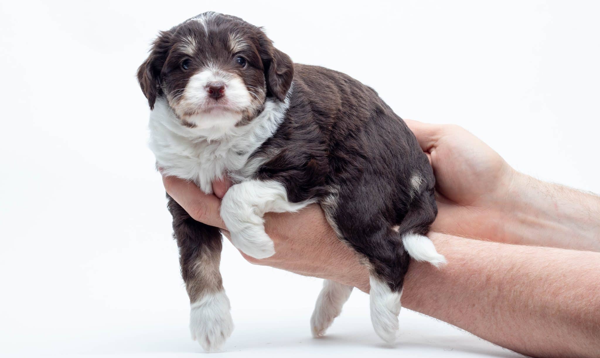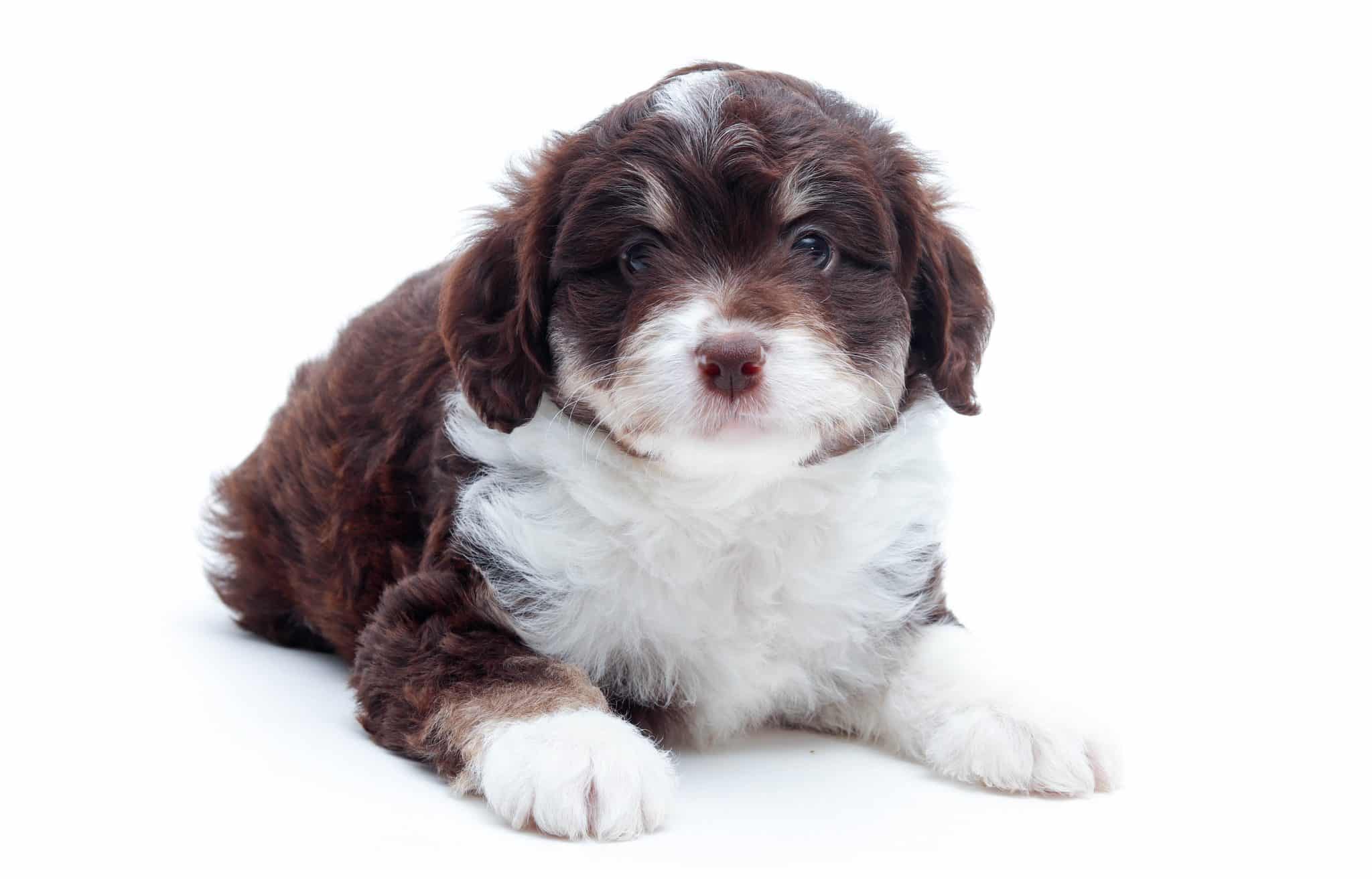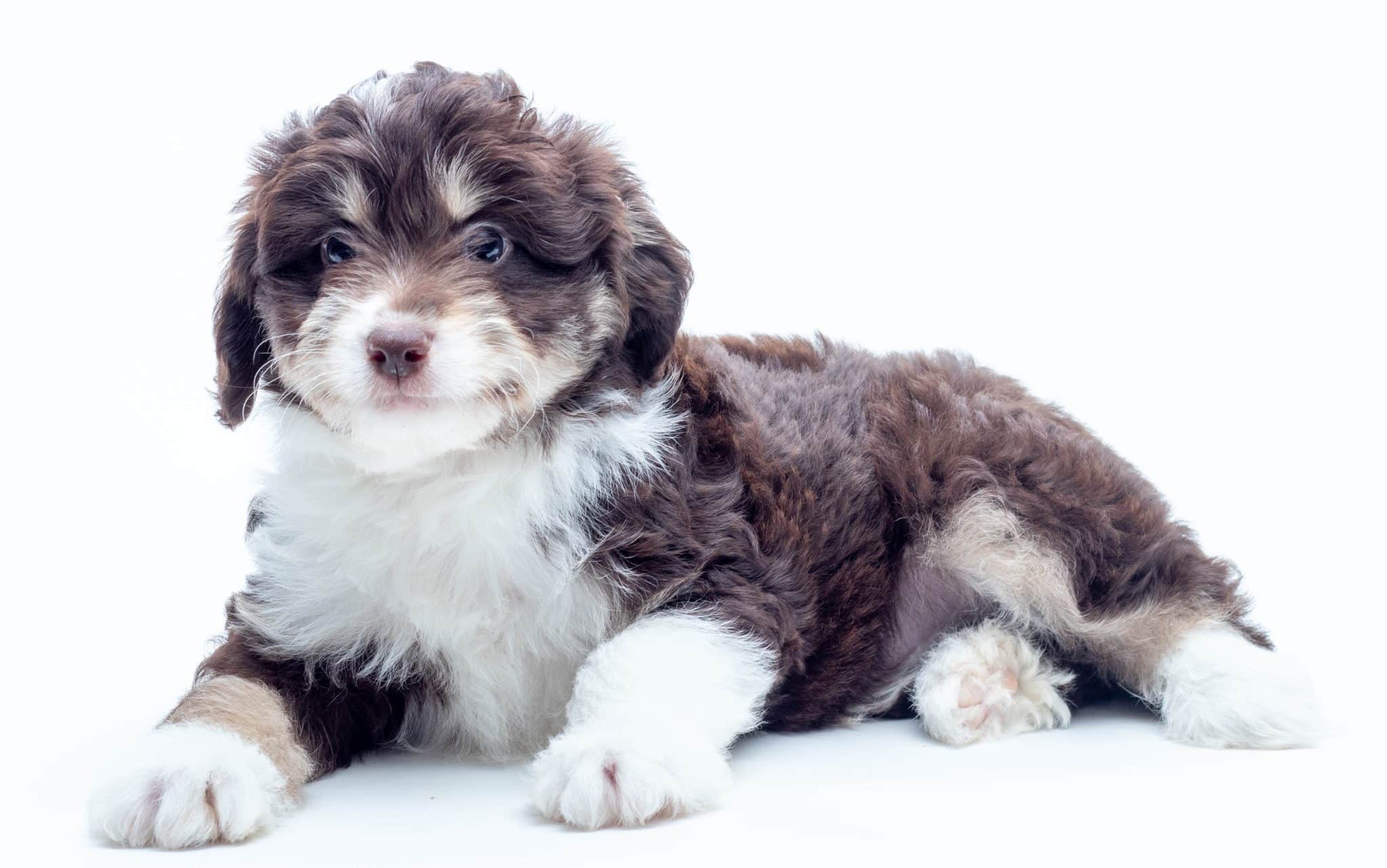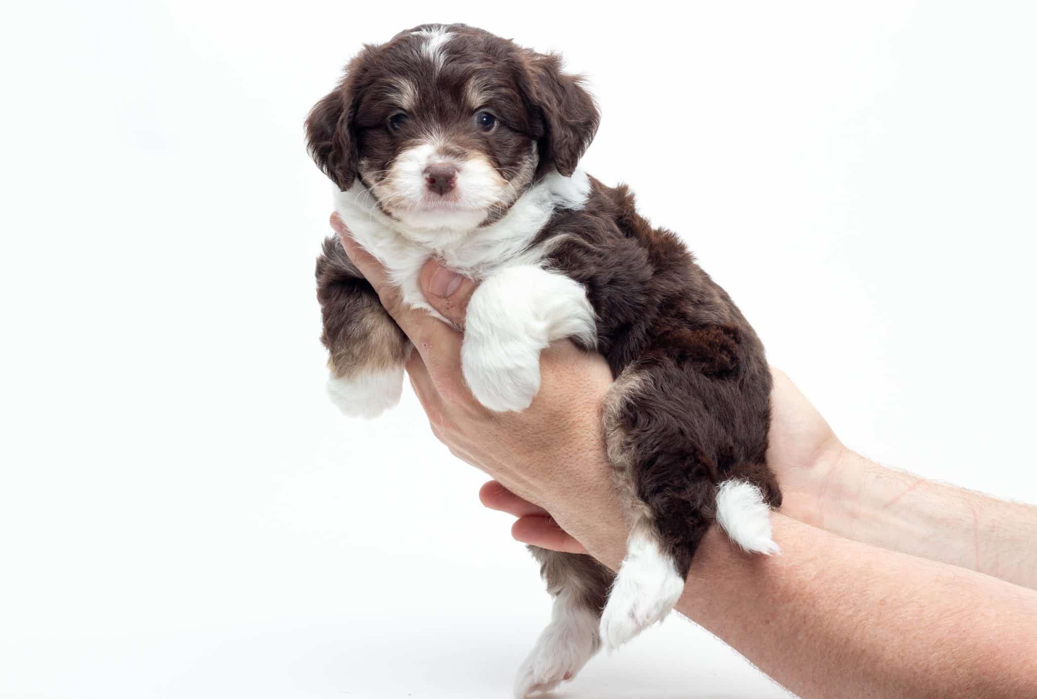 Kobe is a male Chocolate Tri-Color F1 AussieDoodle puppy.