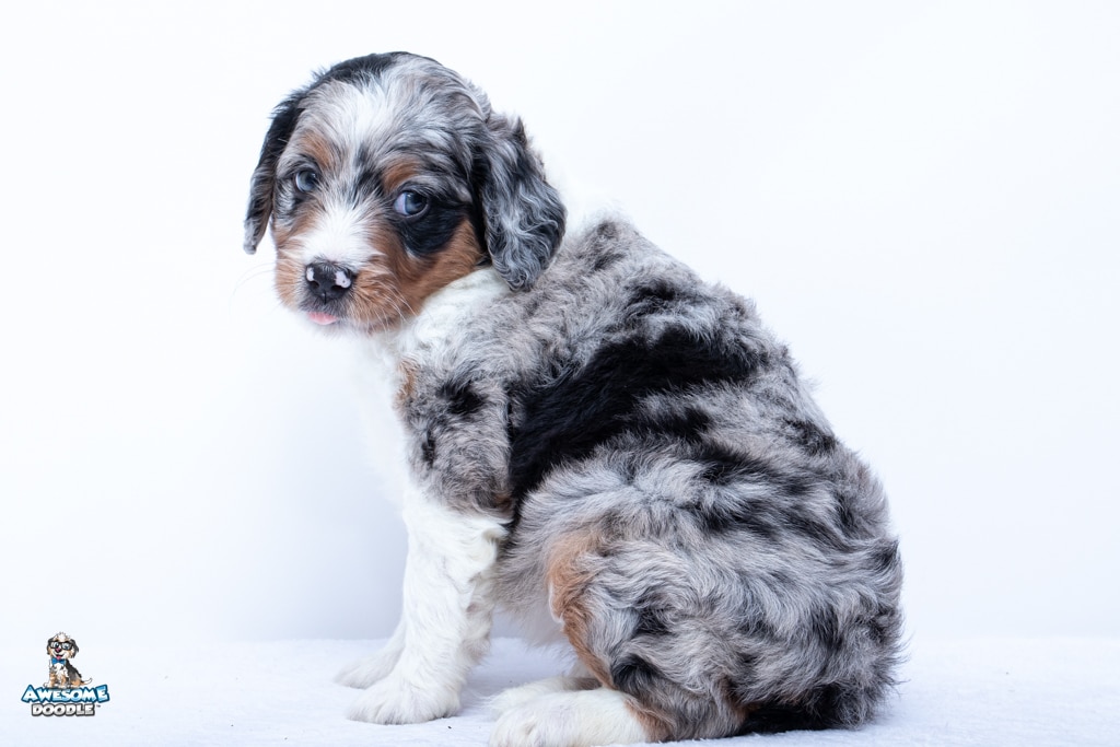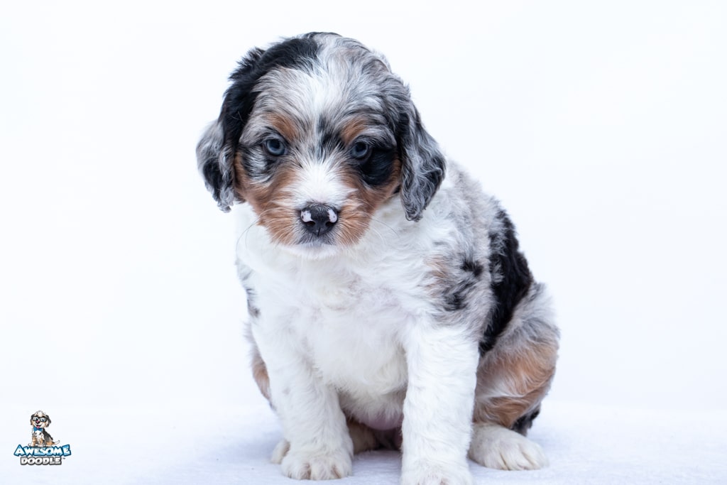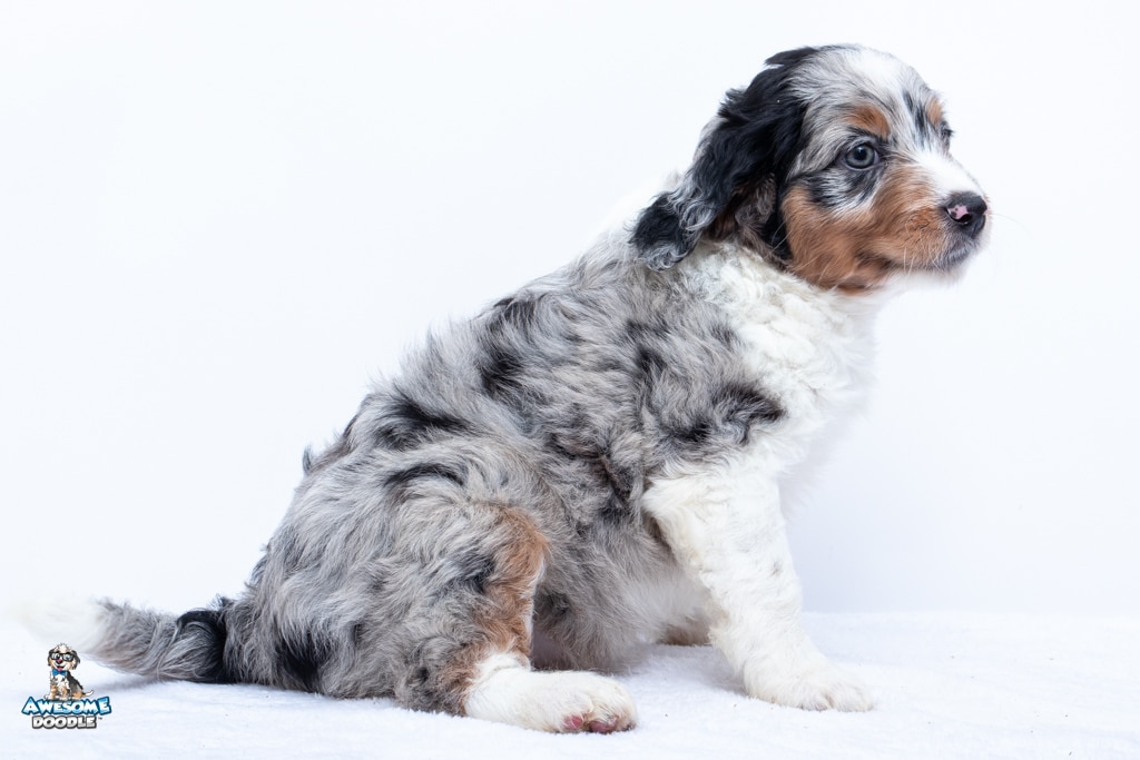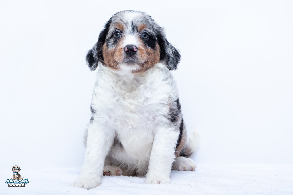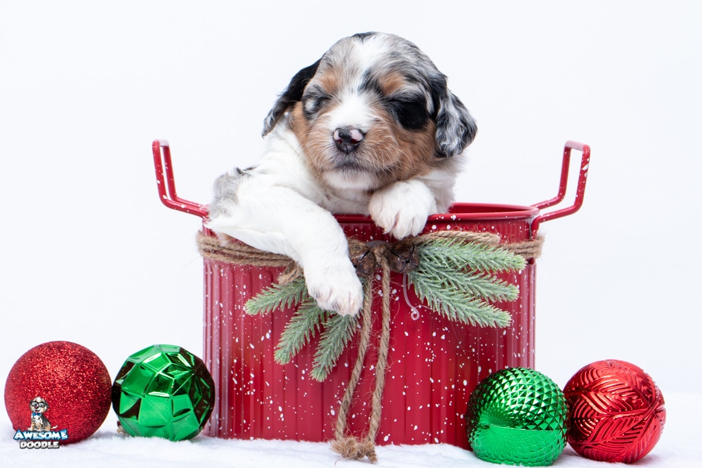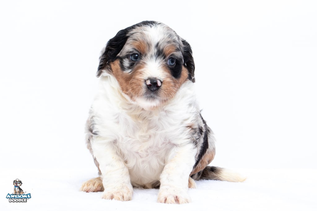Ruby is a female Blue Merle w/ White & Copper F1 AussieDoodle puppy.
