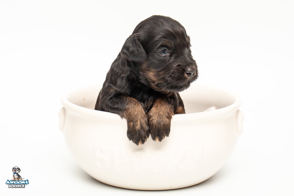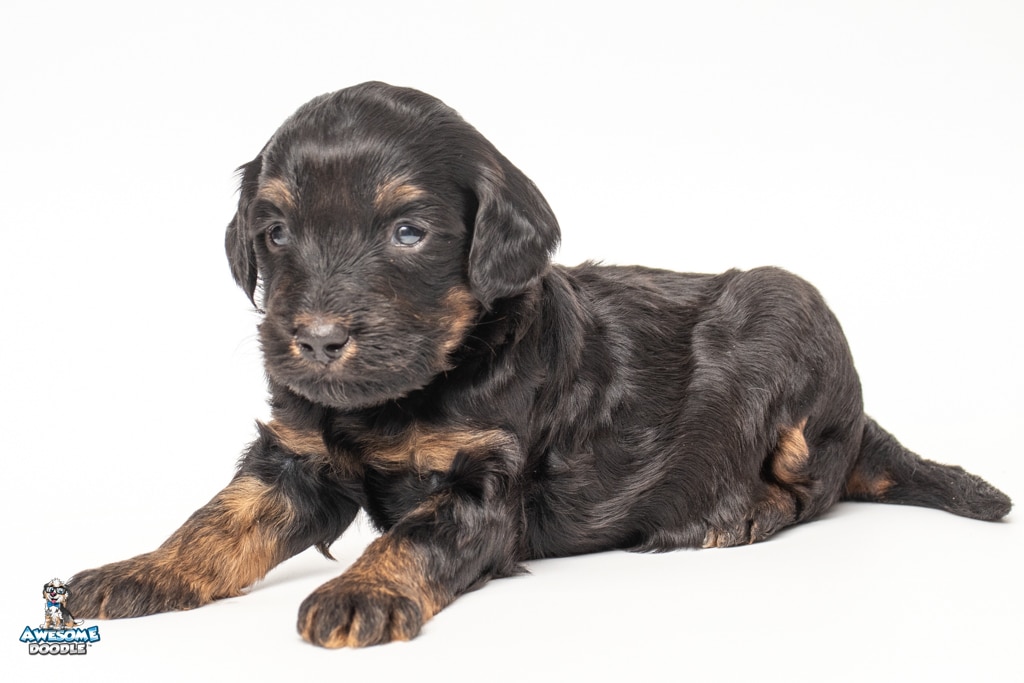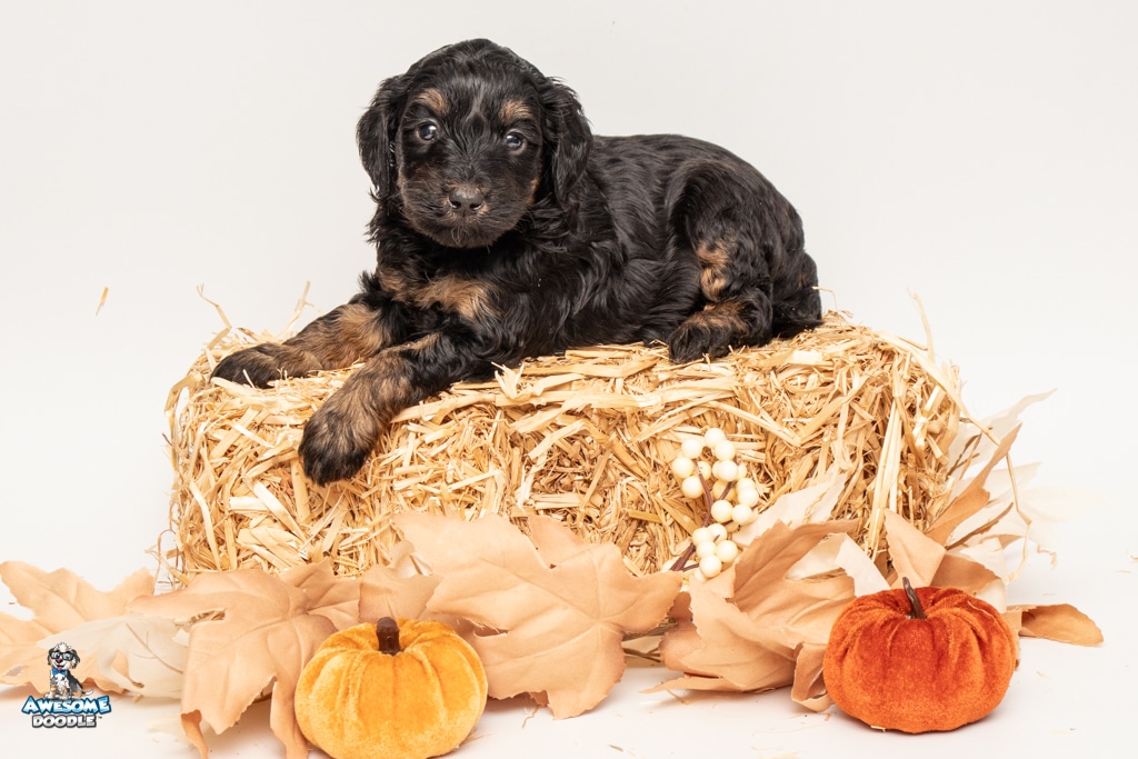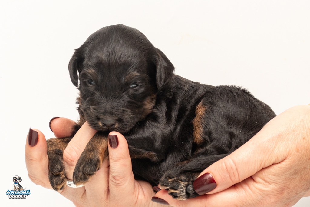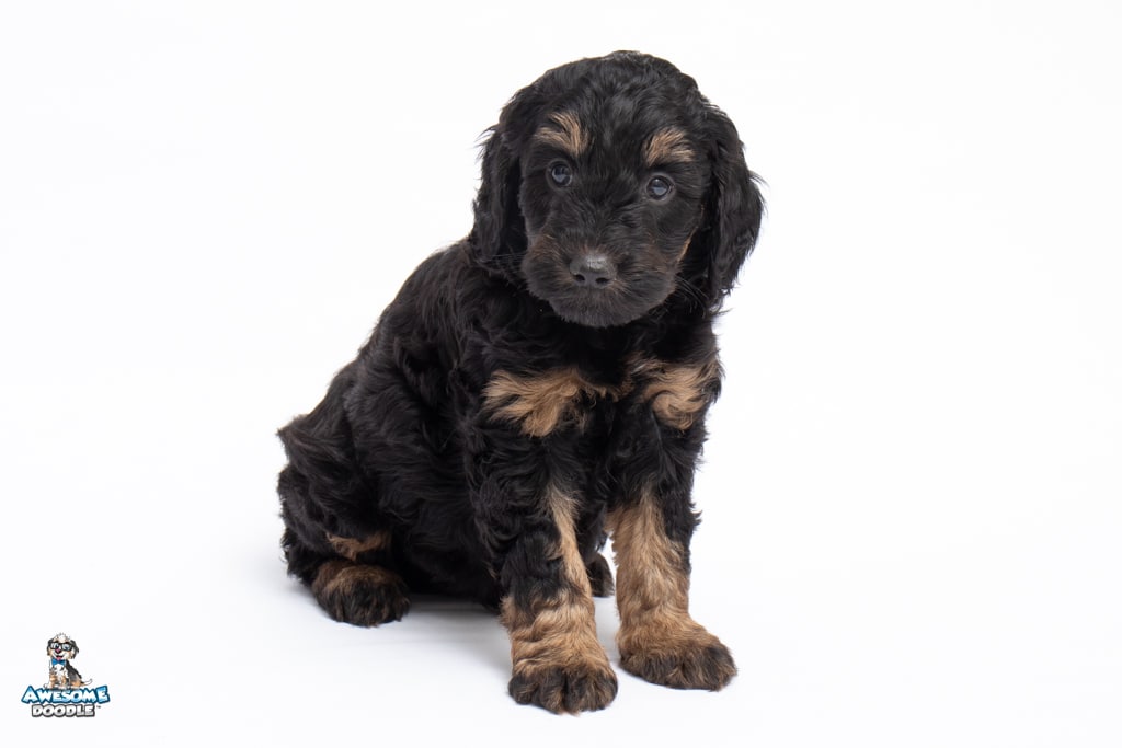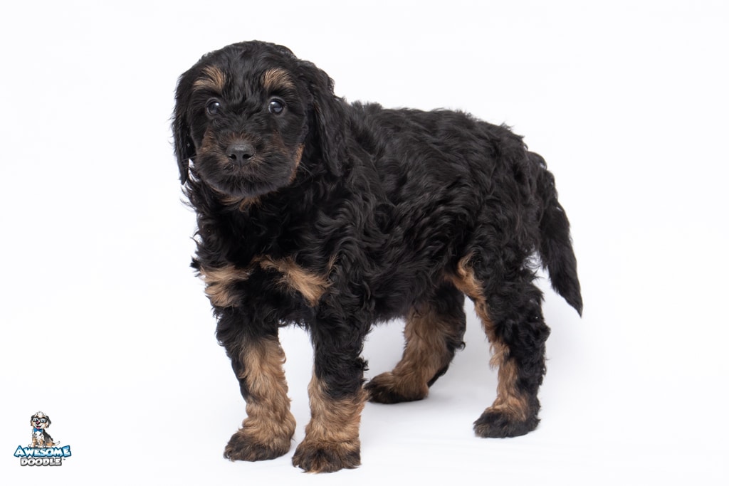 Liam is a male Black Phantom BerneDoodle F1b BerneDoodle puppy.