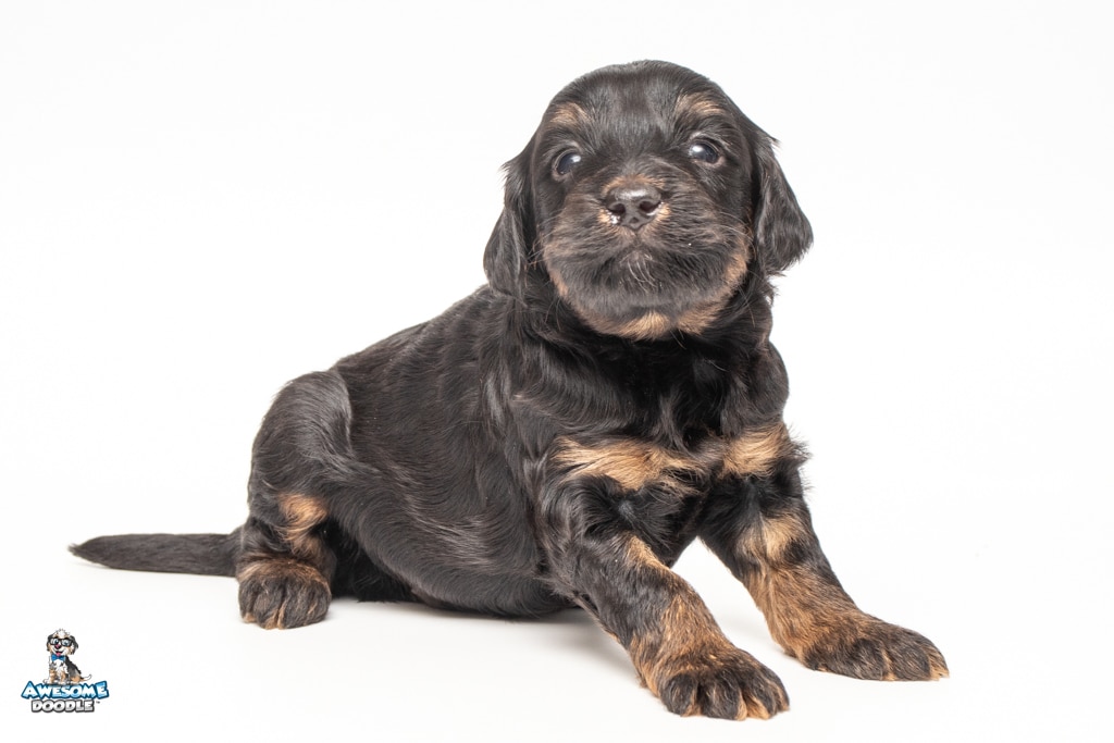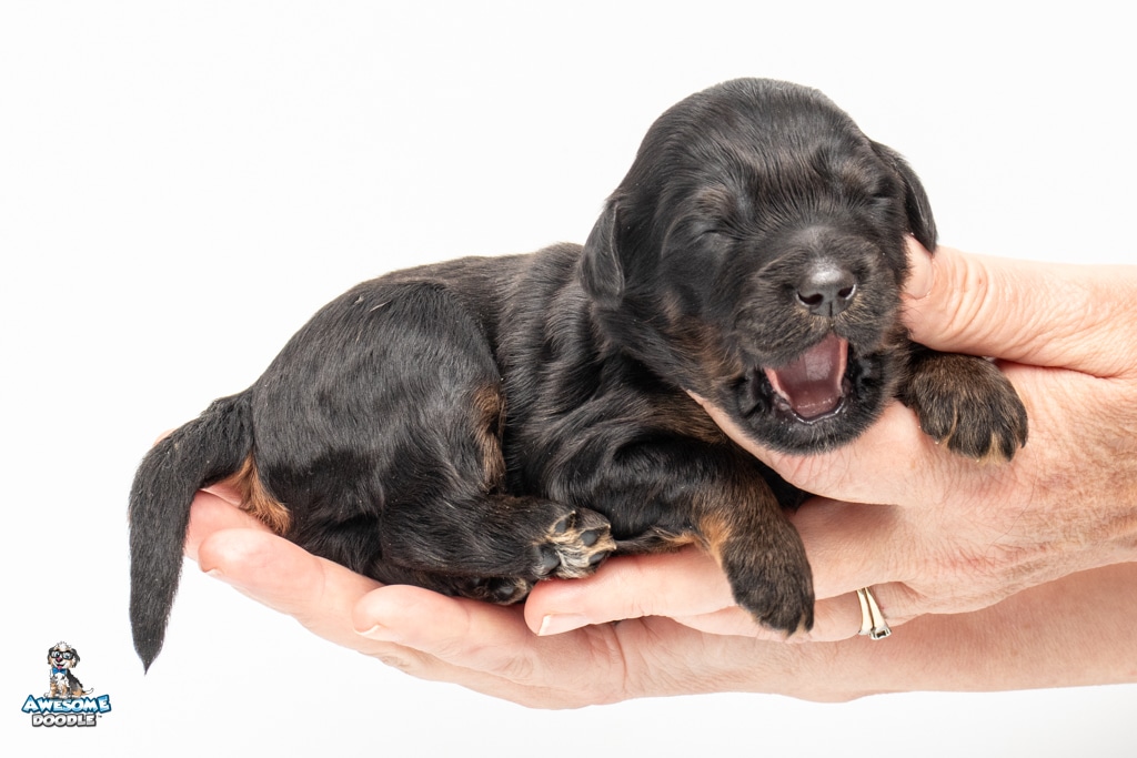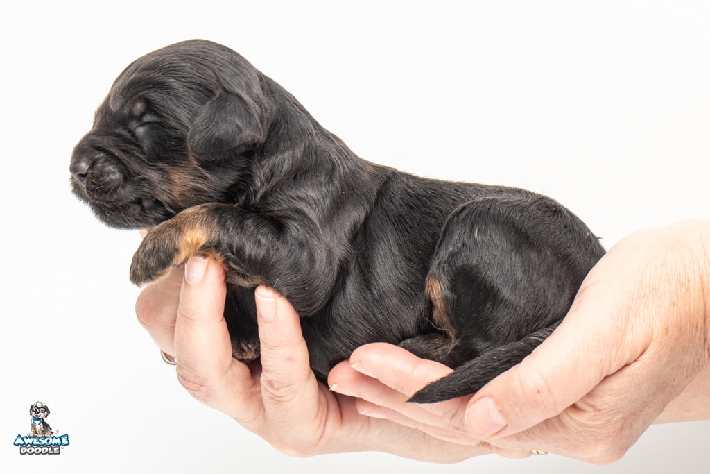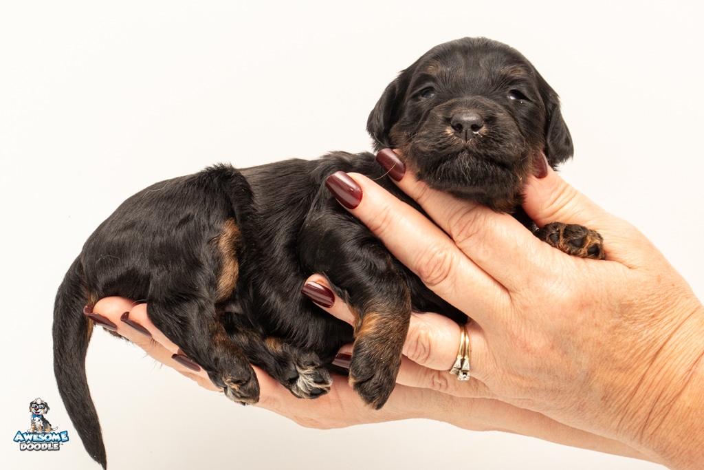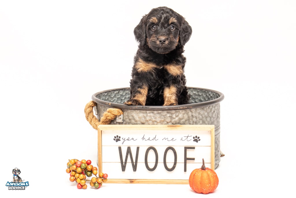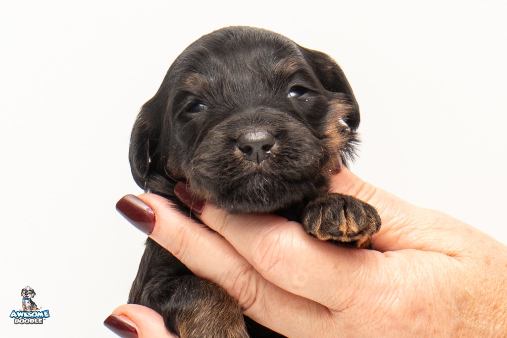 Liam is a male Black Phantom BerneDoodle F1b BerneDoodle puppy.