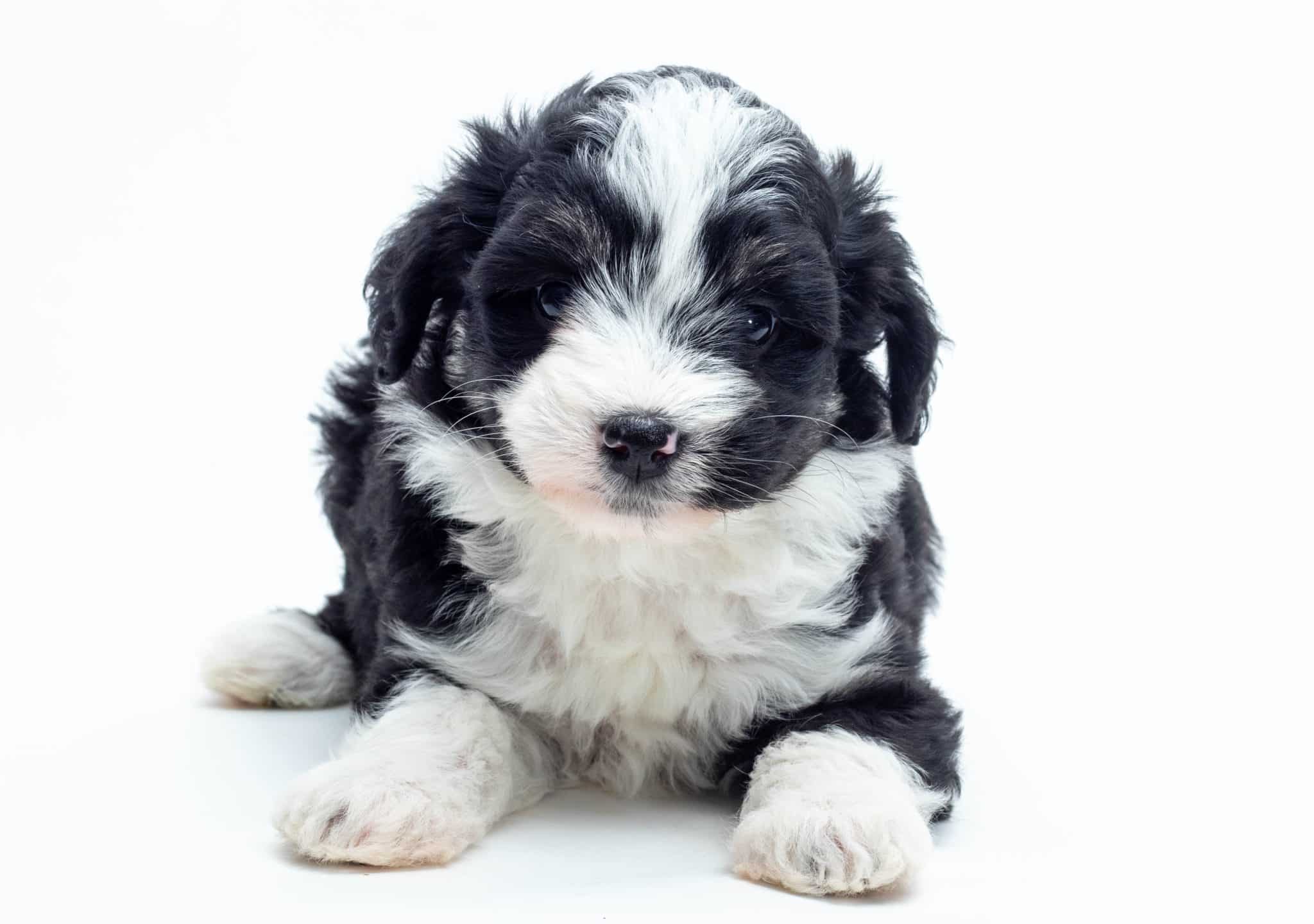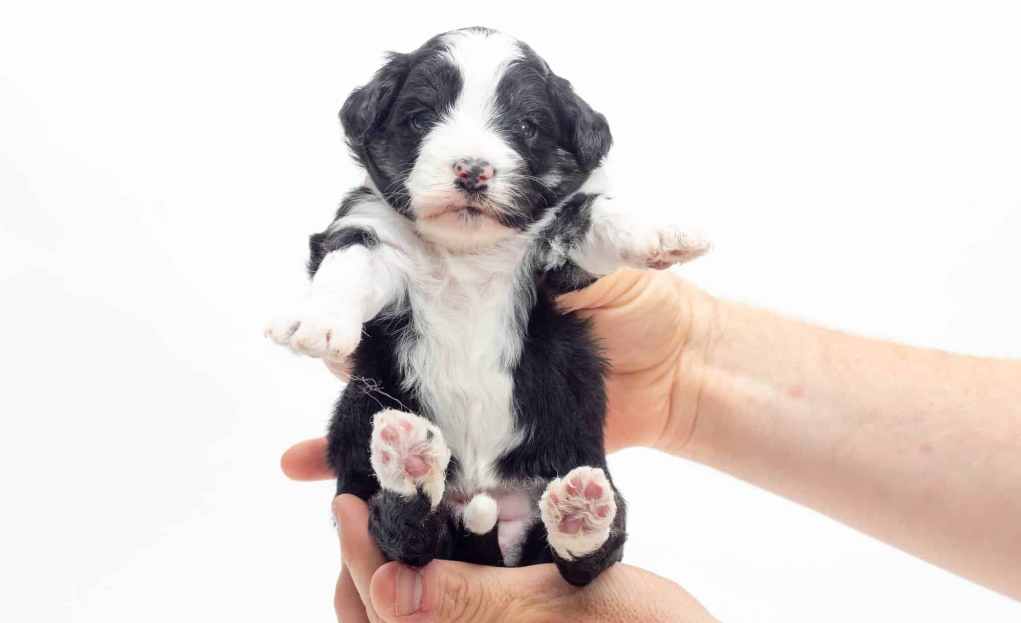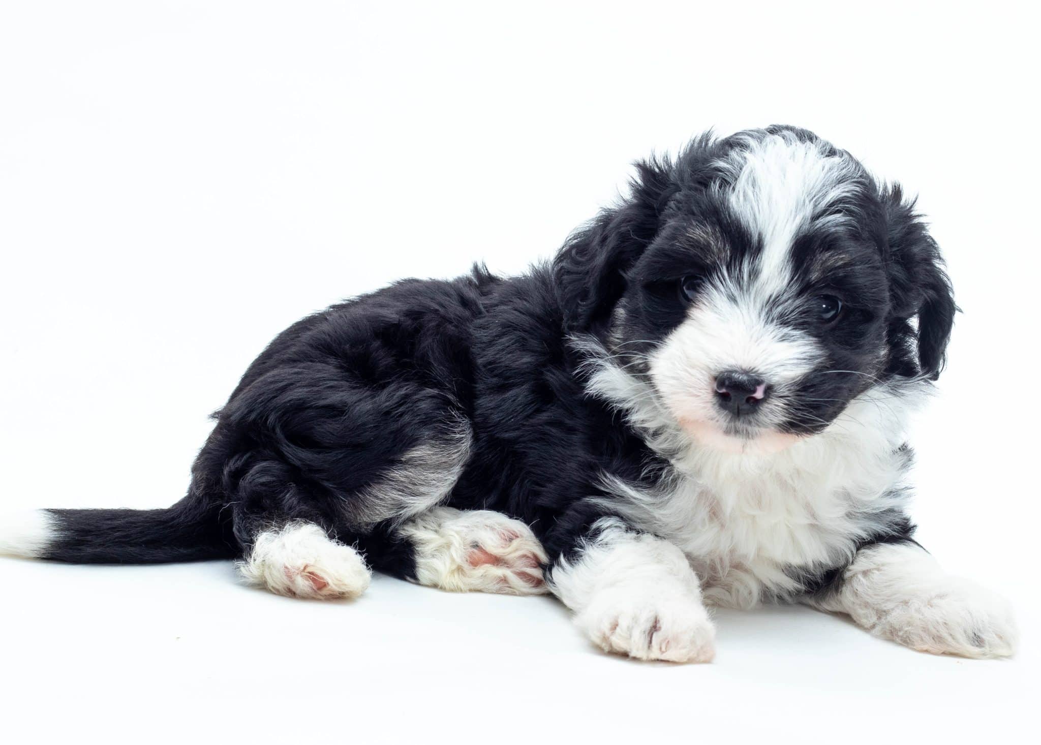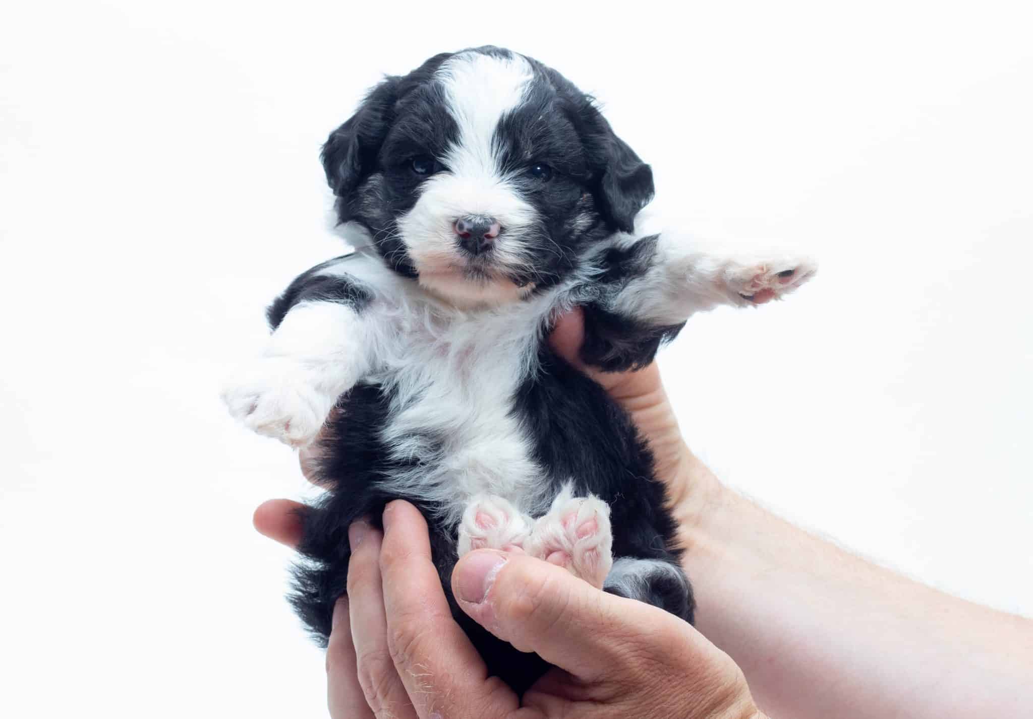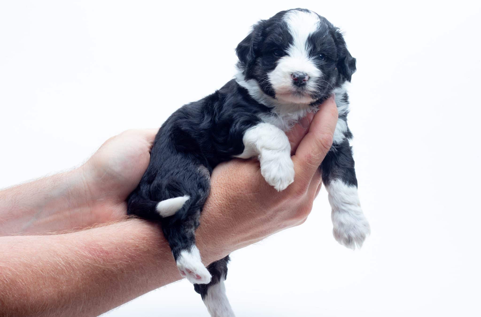 Lulu is a female Black Bi-Color F1 AussieDoodle puppy.