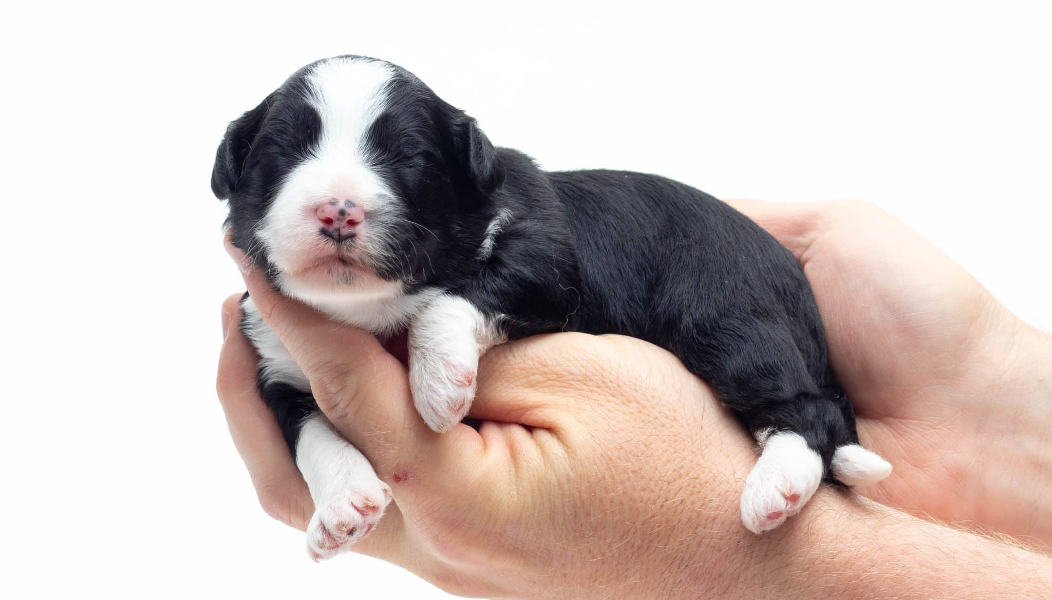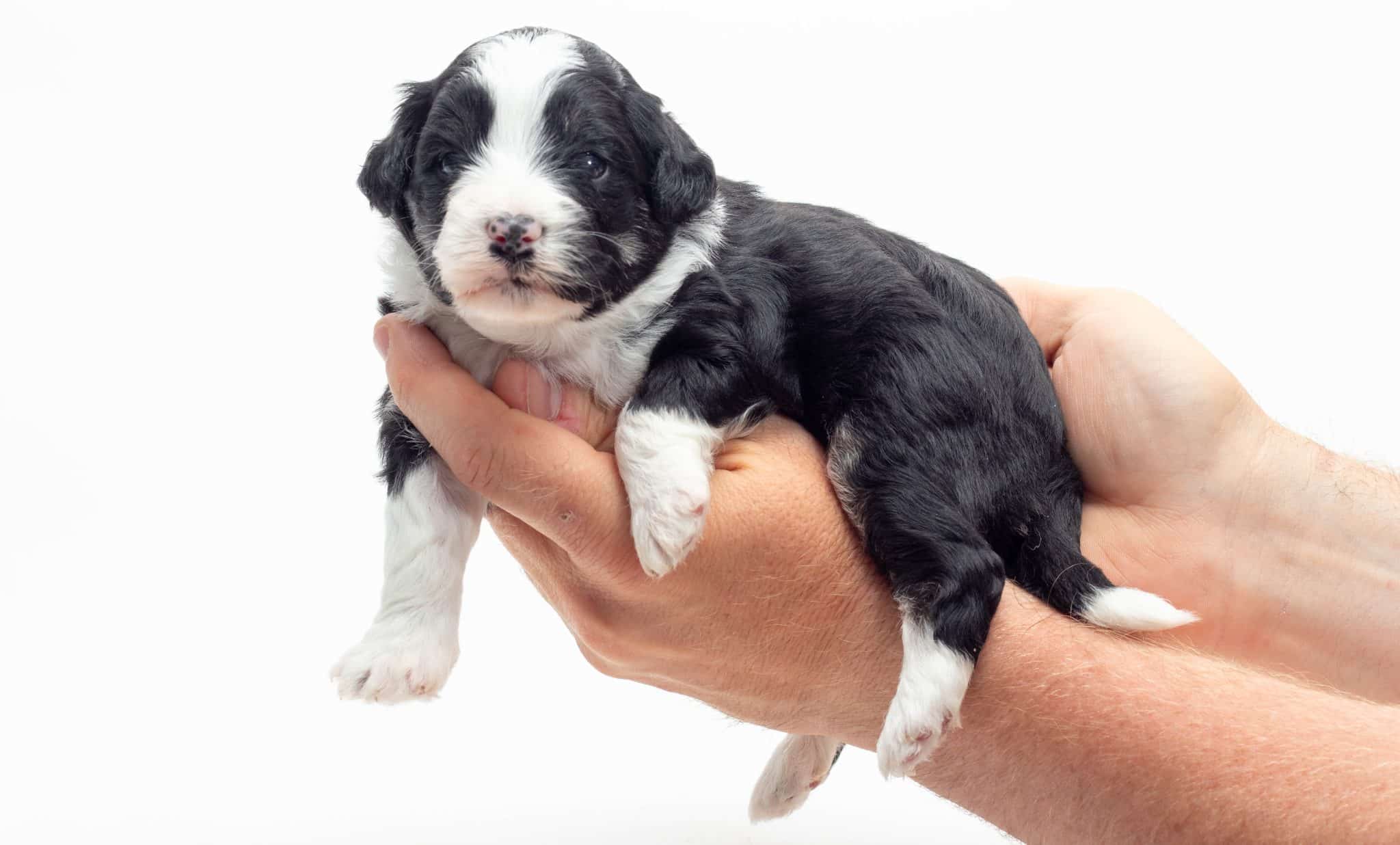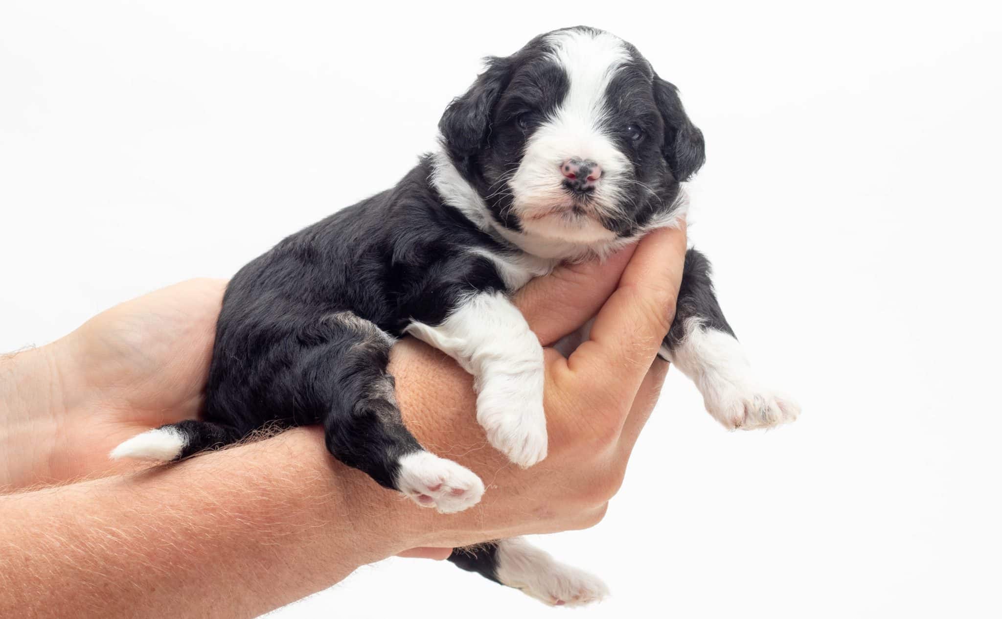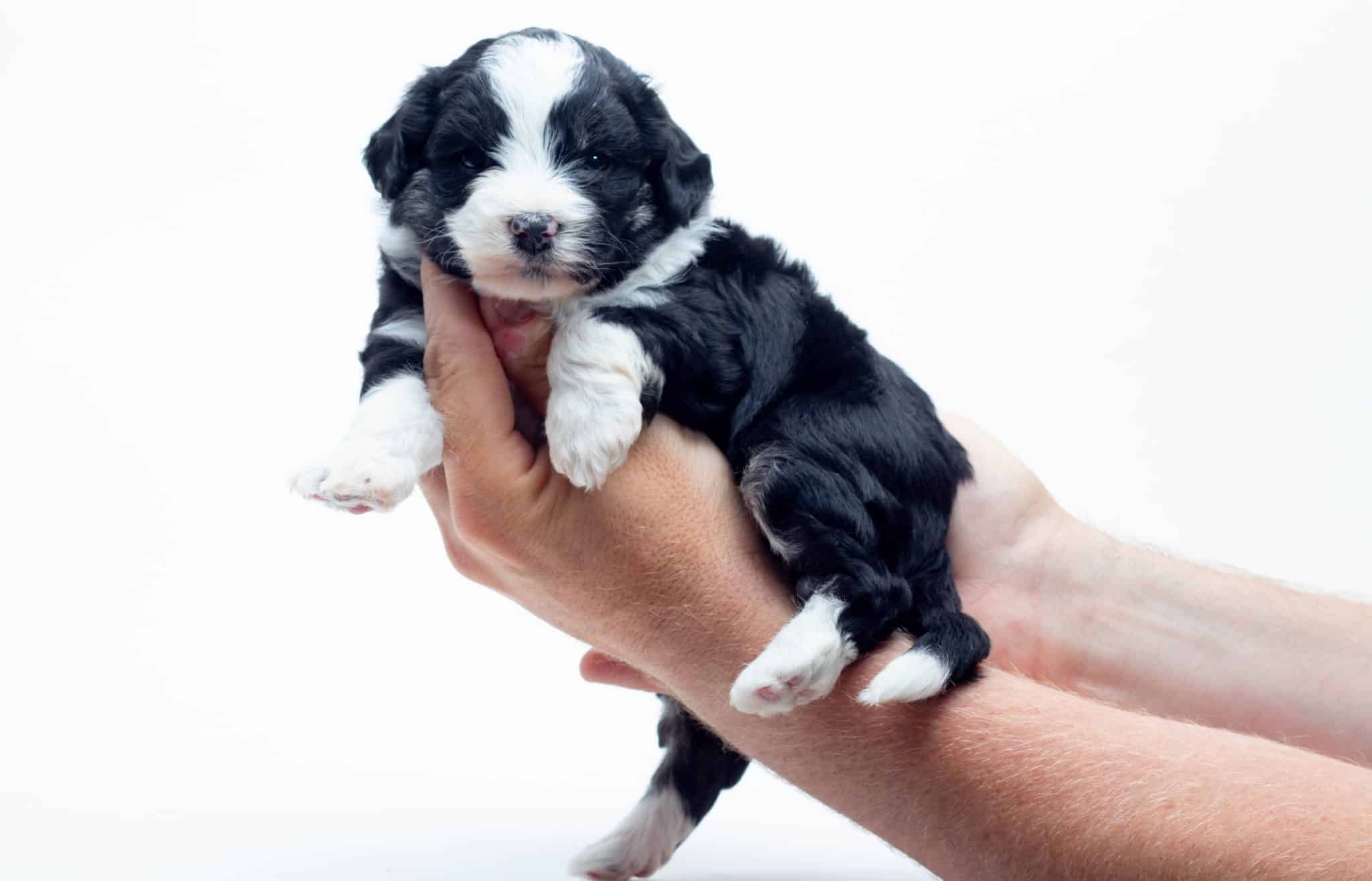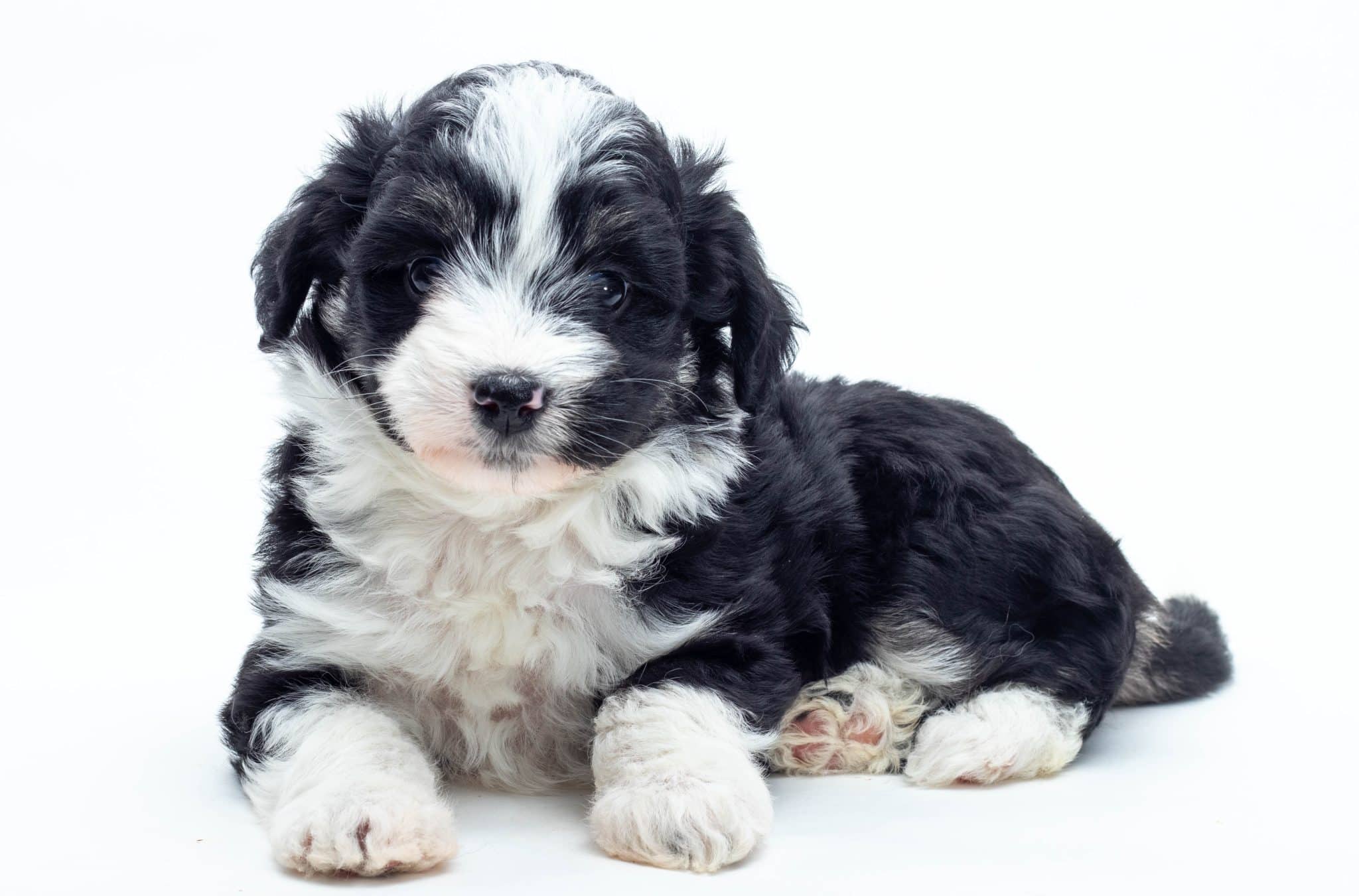 Lulu is a female Black Bi-Color F1 AussieDoodle puppy.