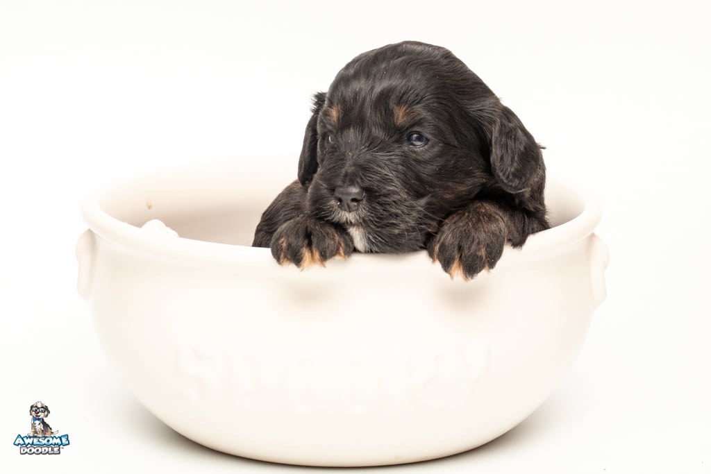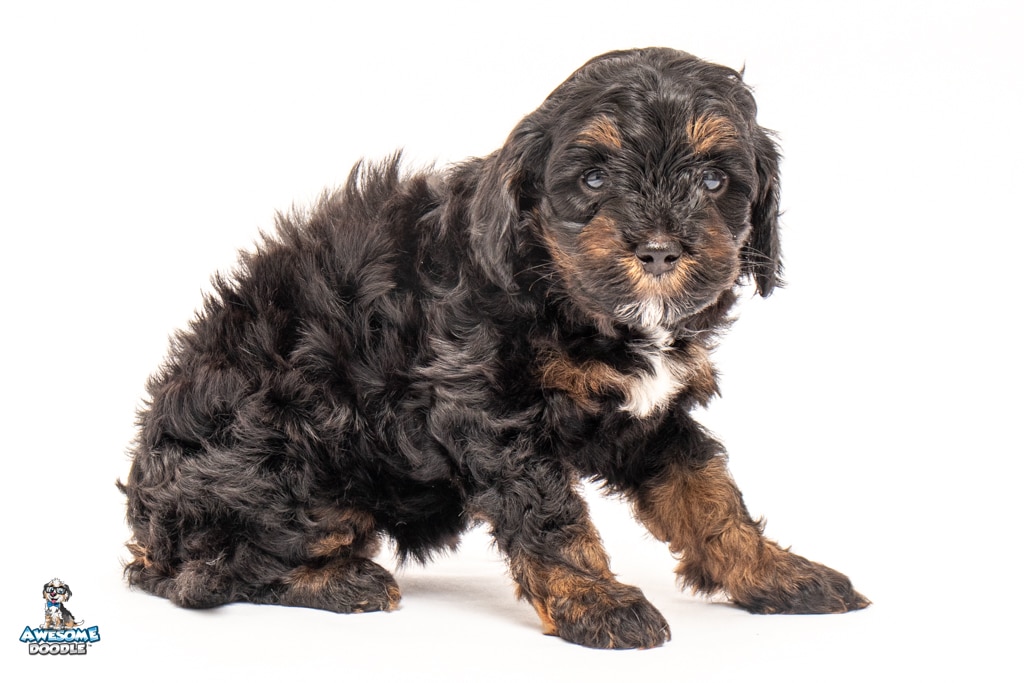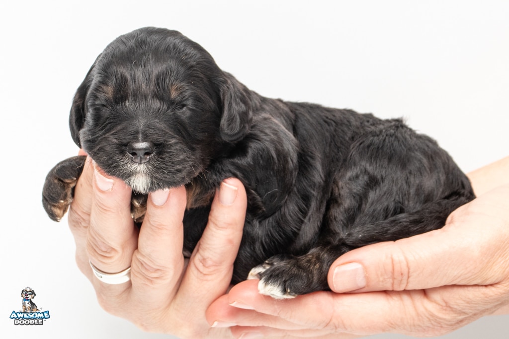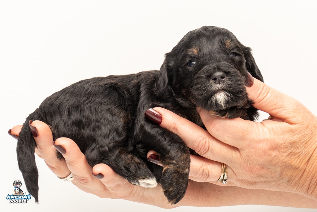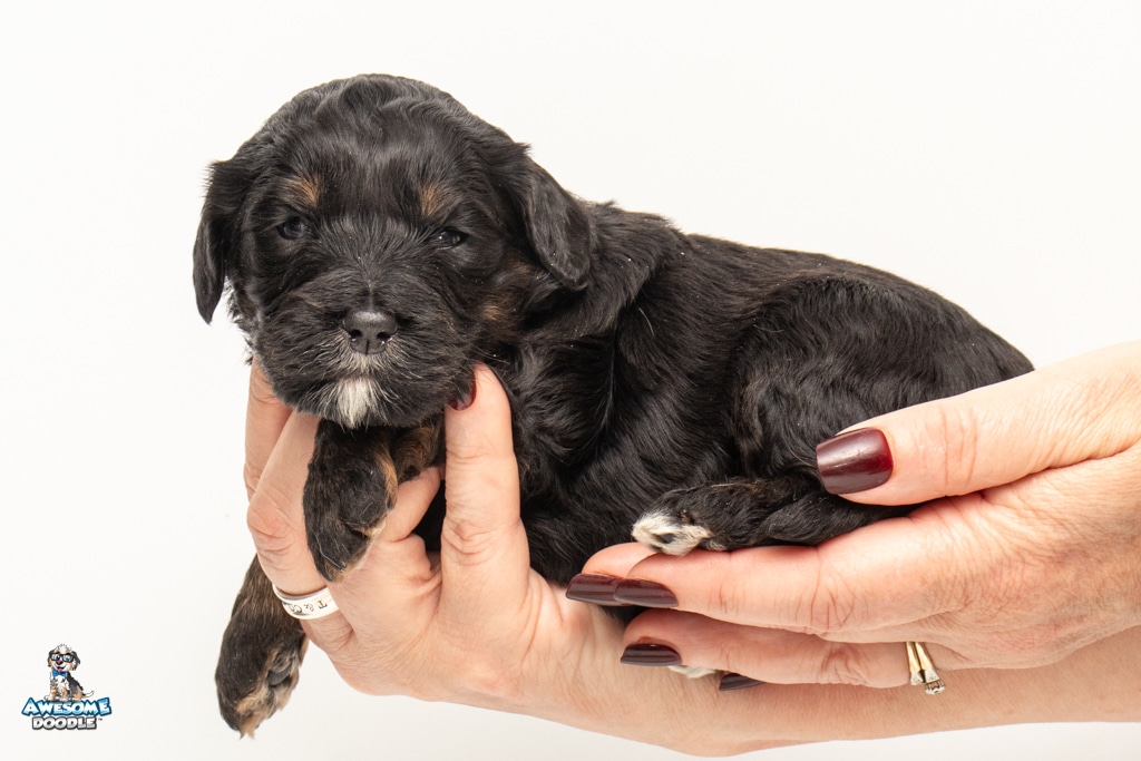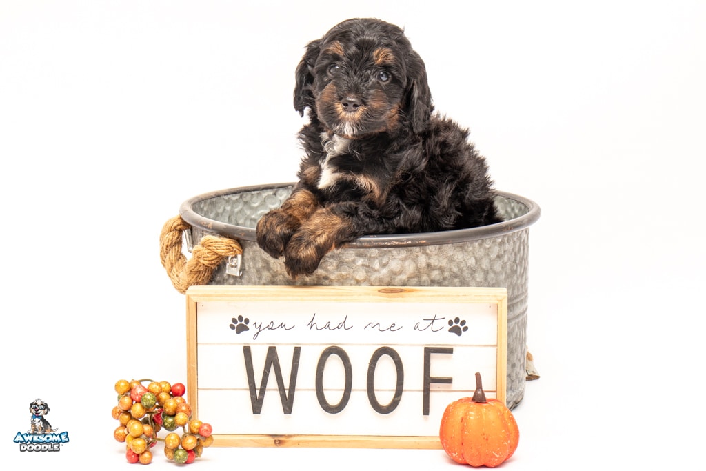 Winston is a male Black Phantom BerneDoodle F1b BerneDoodle puppy.