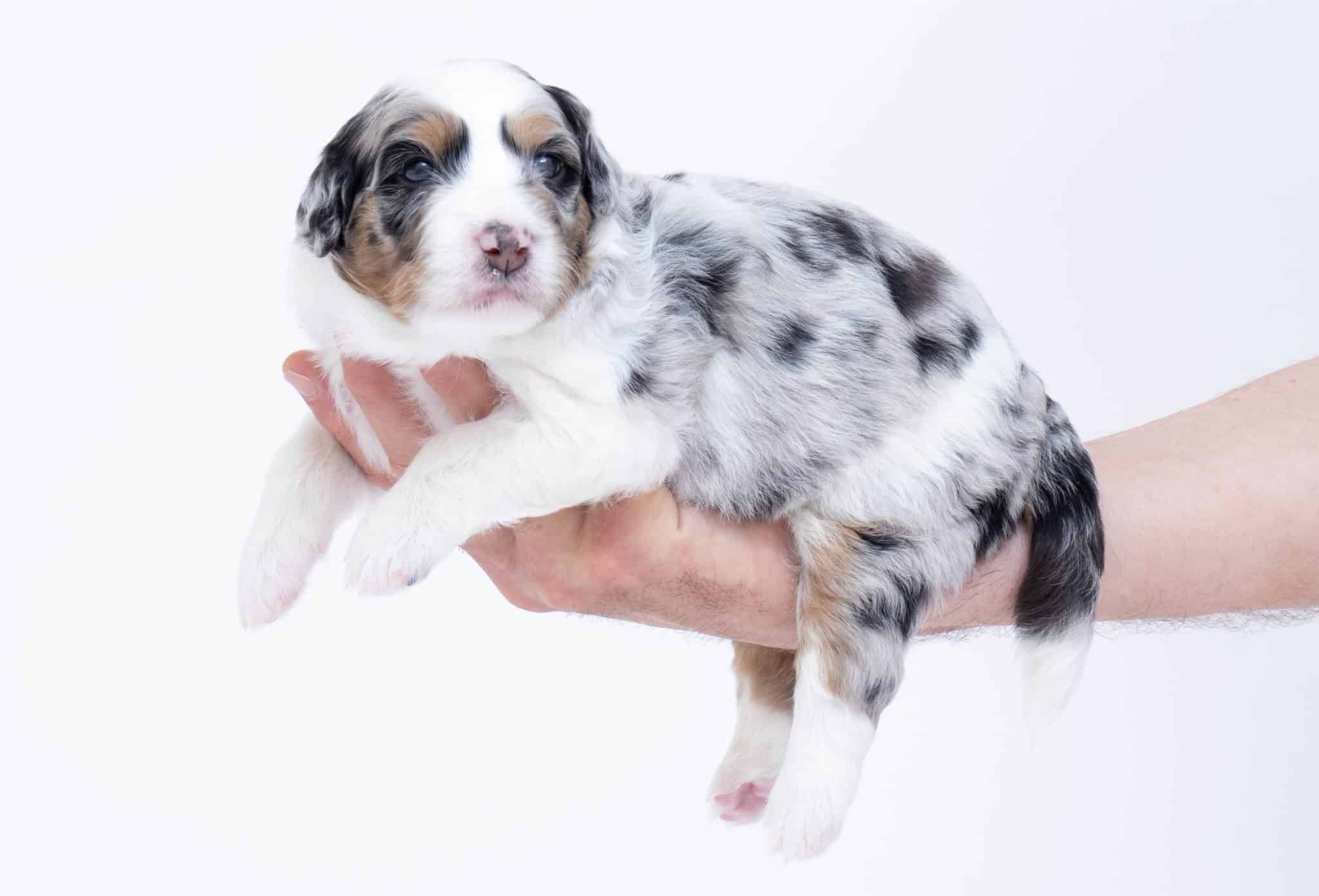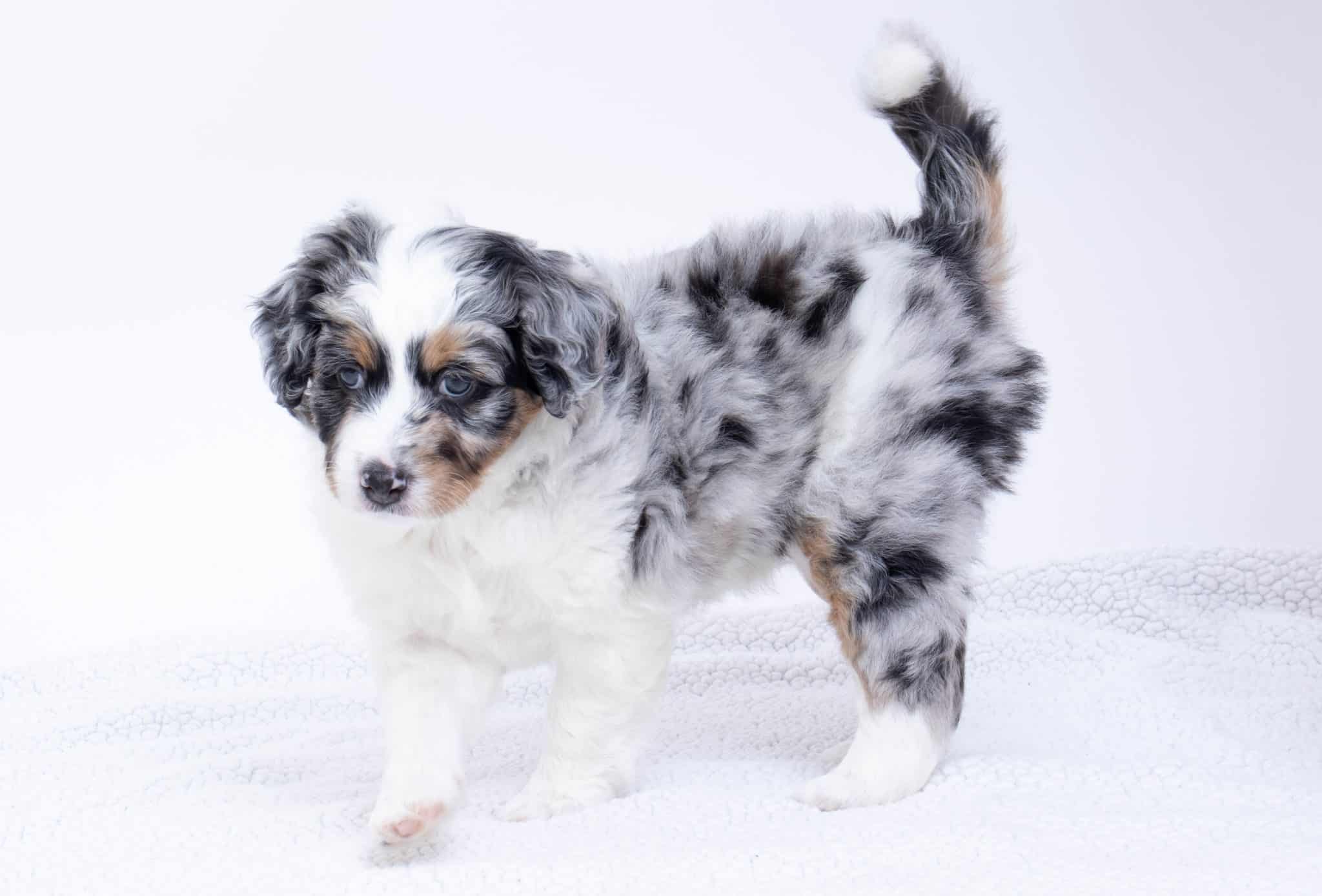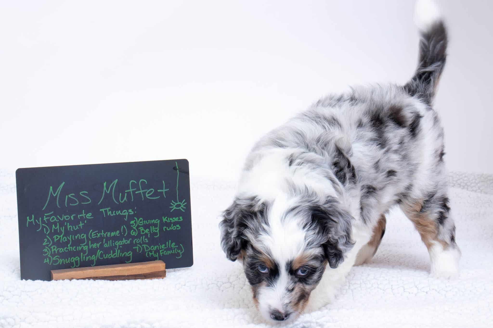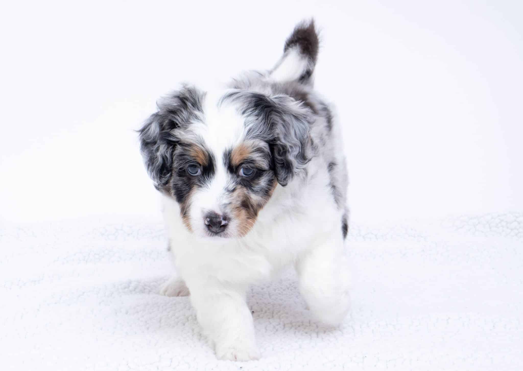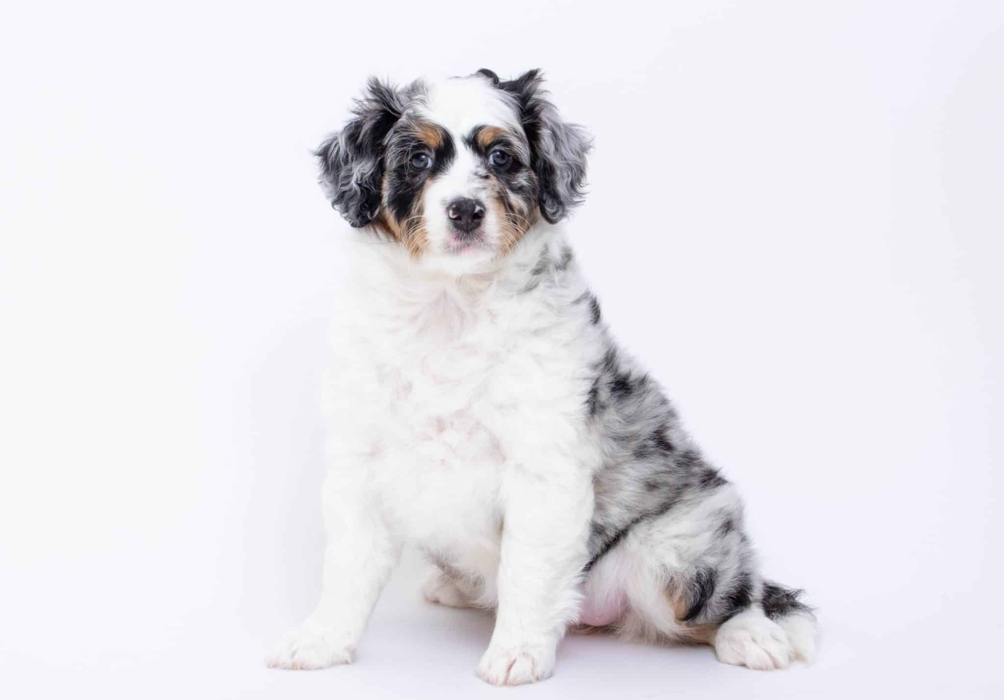 Stella is a female Blue Merle w/ White & Copper F1 AussieDoodle puppy.