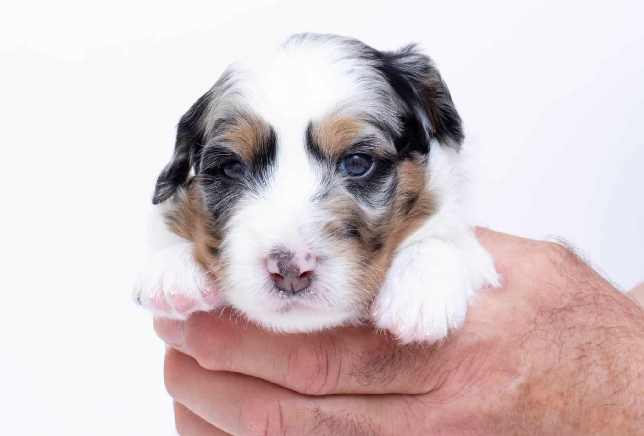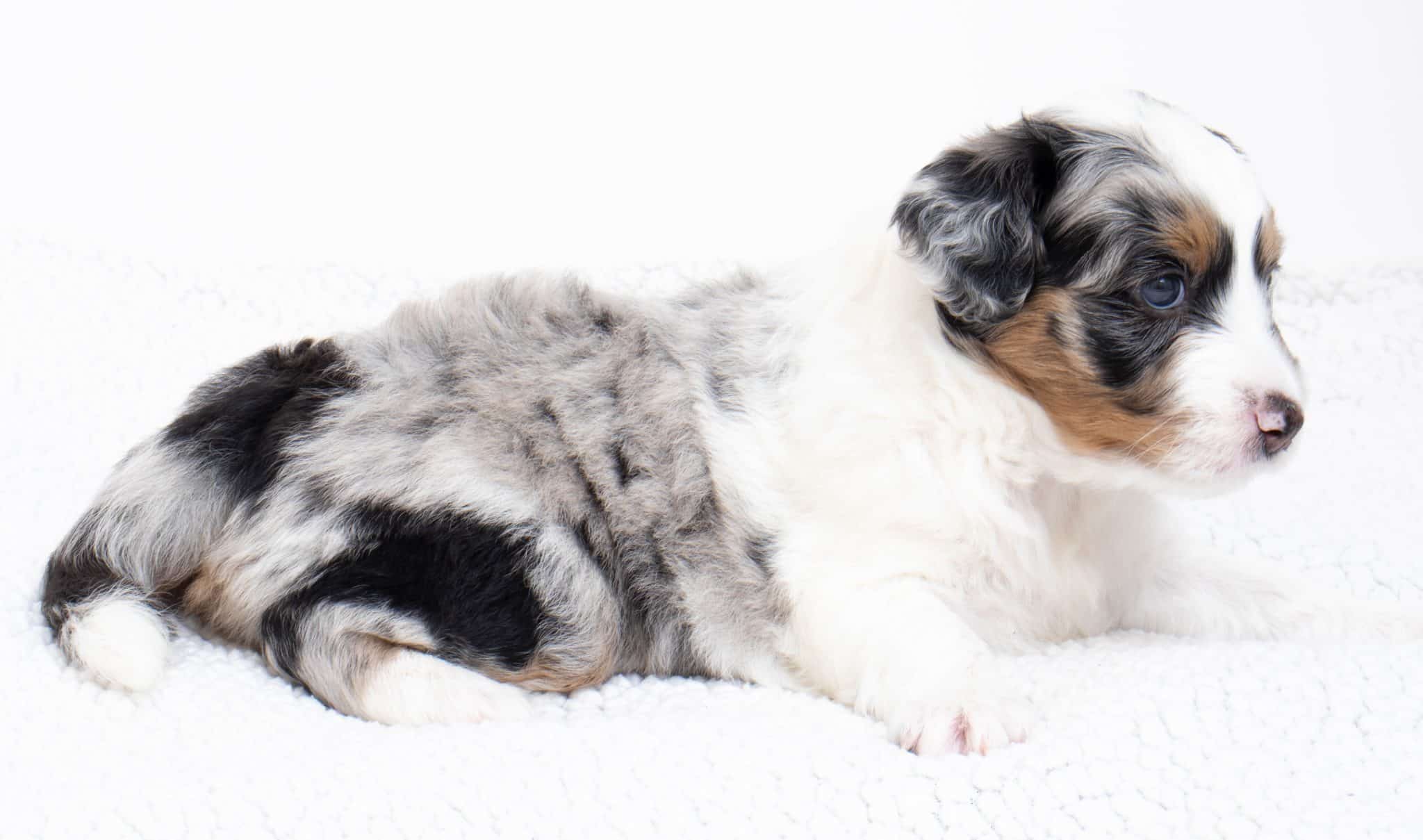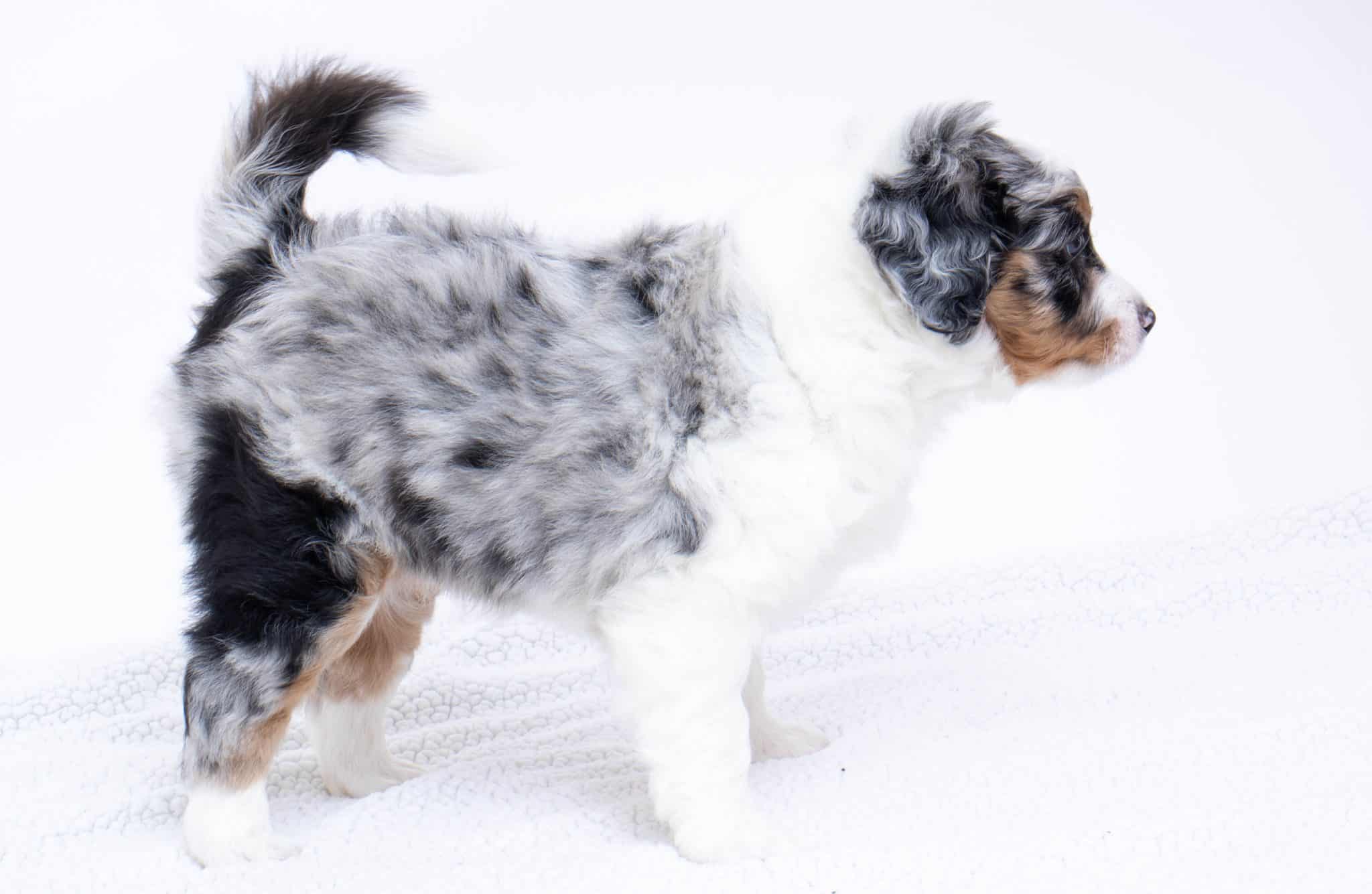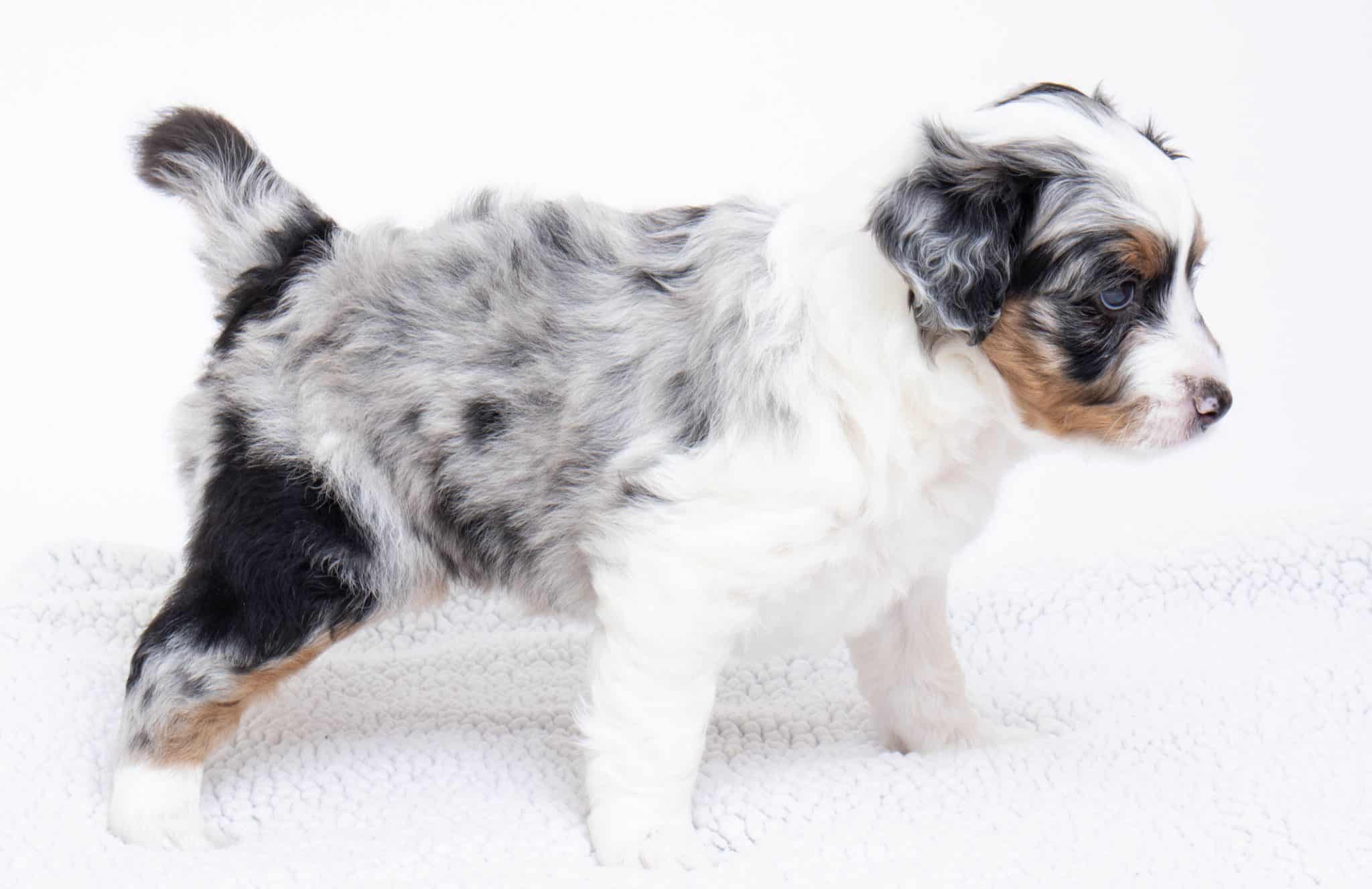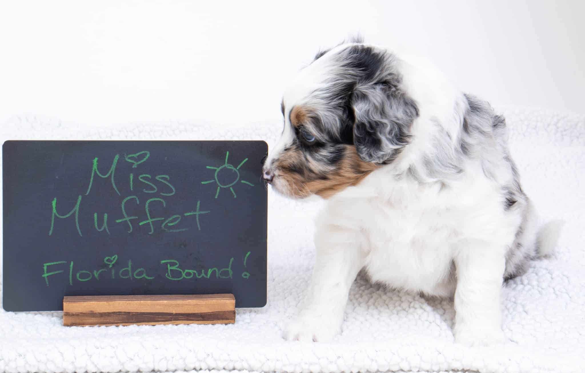 Stella is a female Blue Merle w/ White & Copper F1 AussieDoodle puppy.