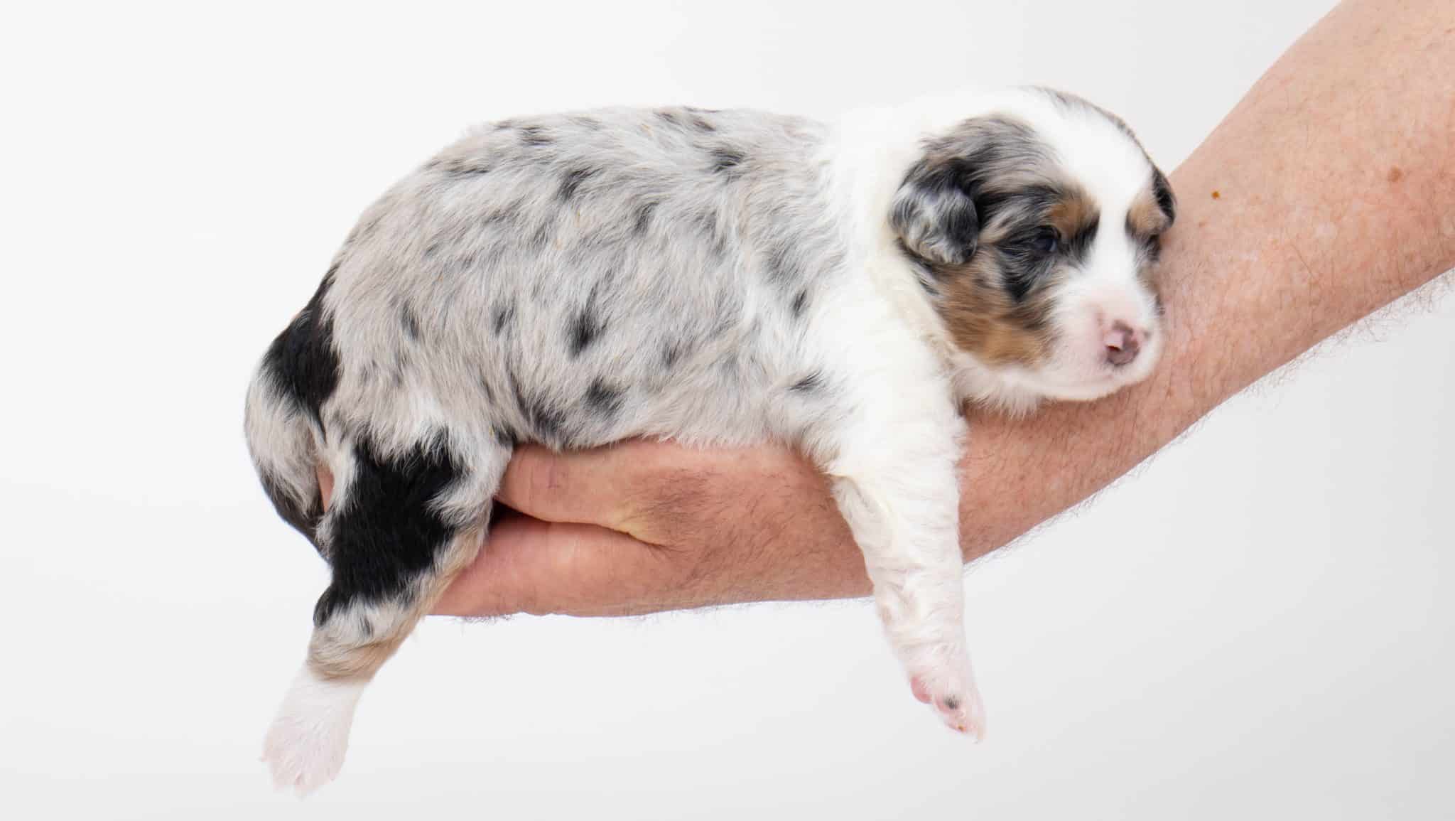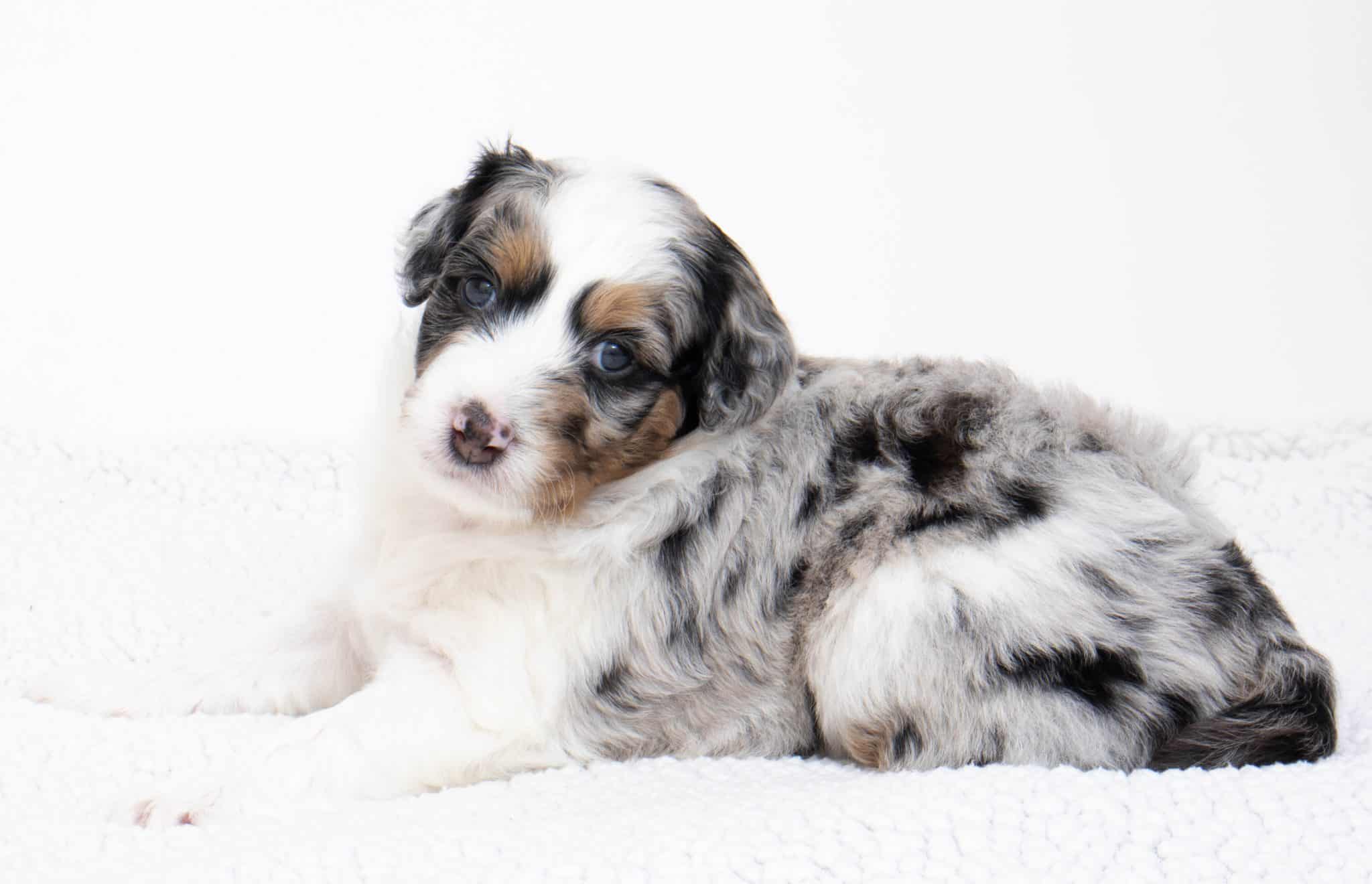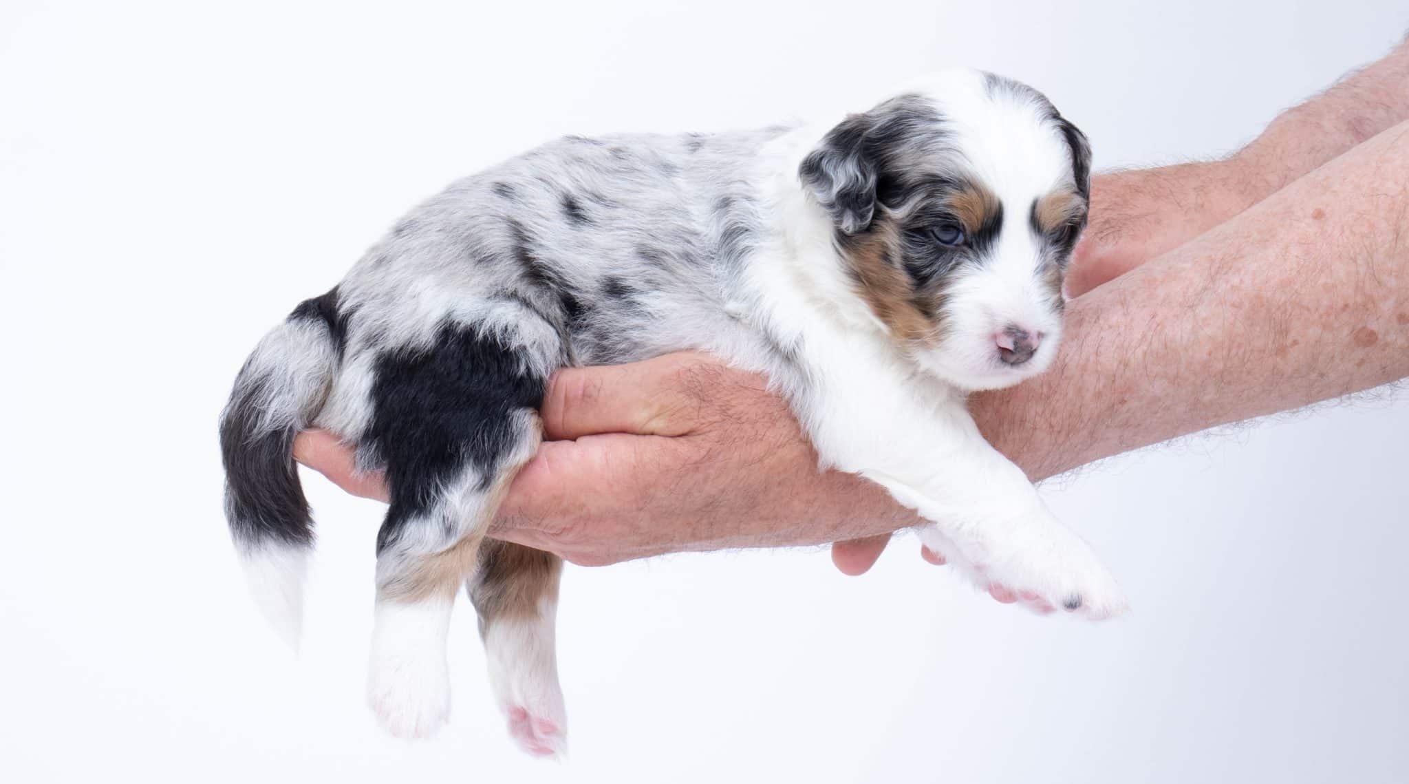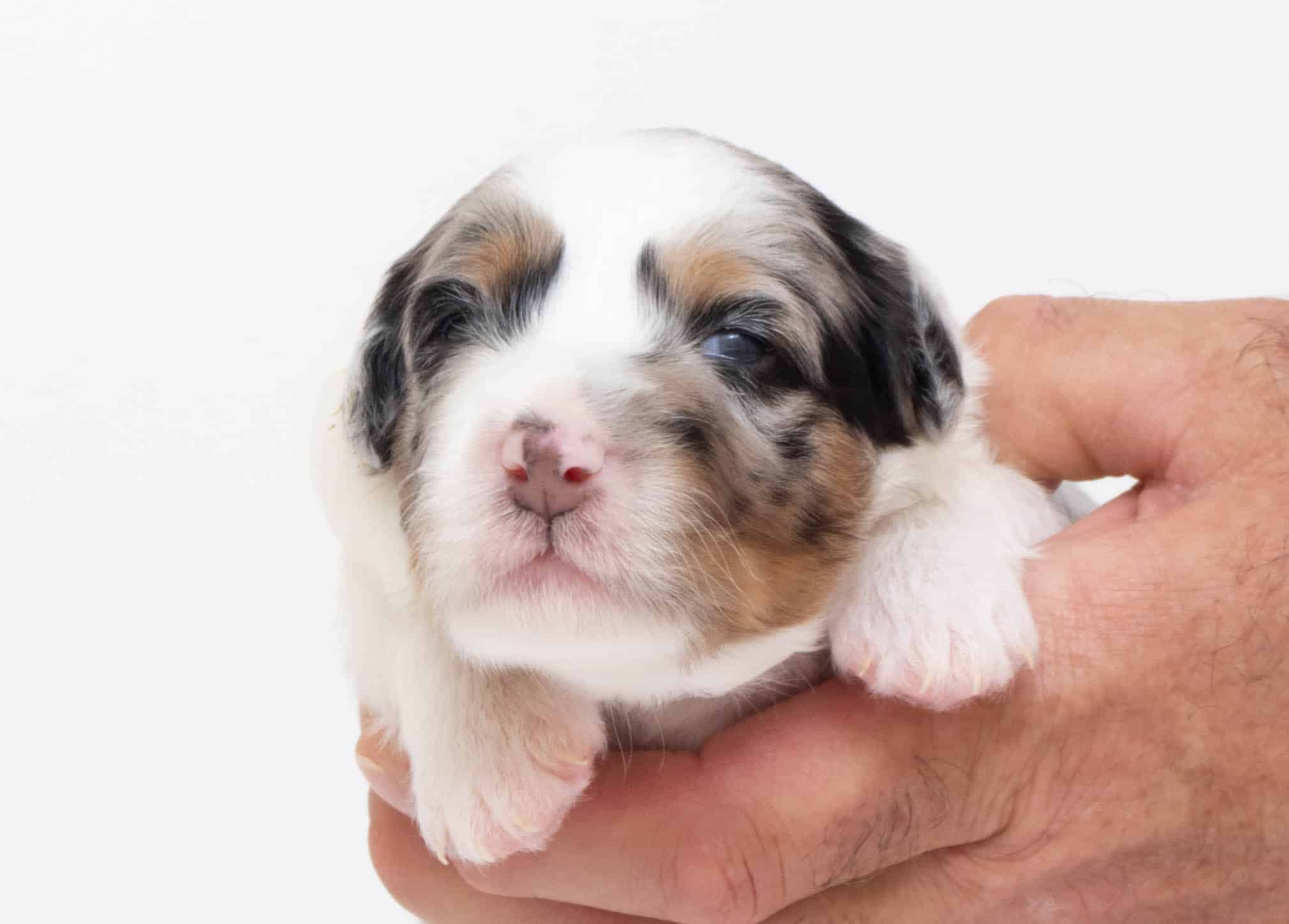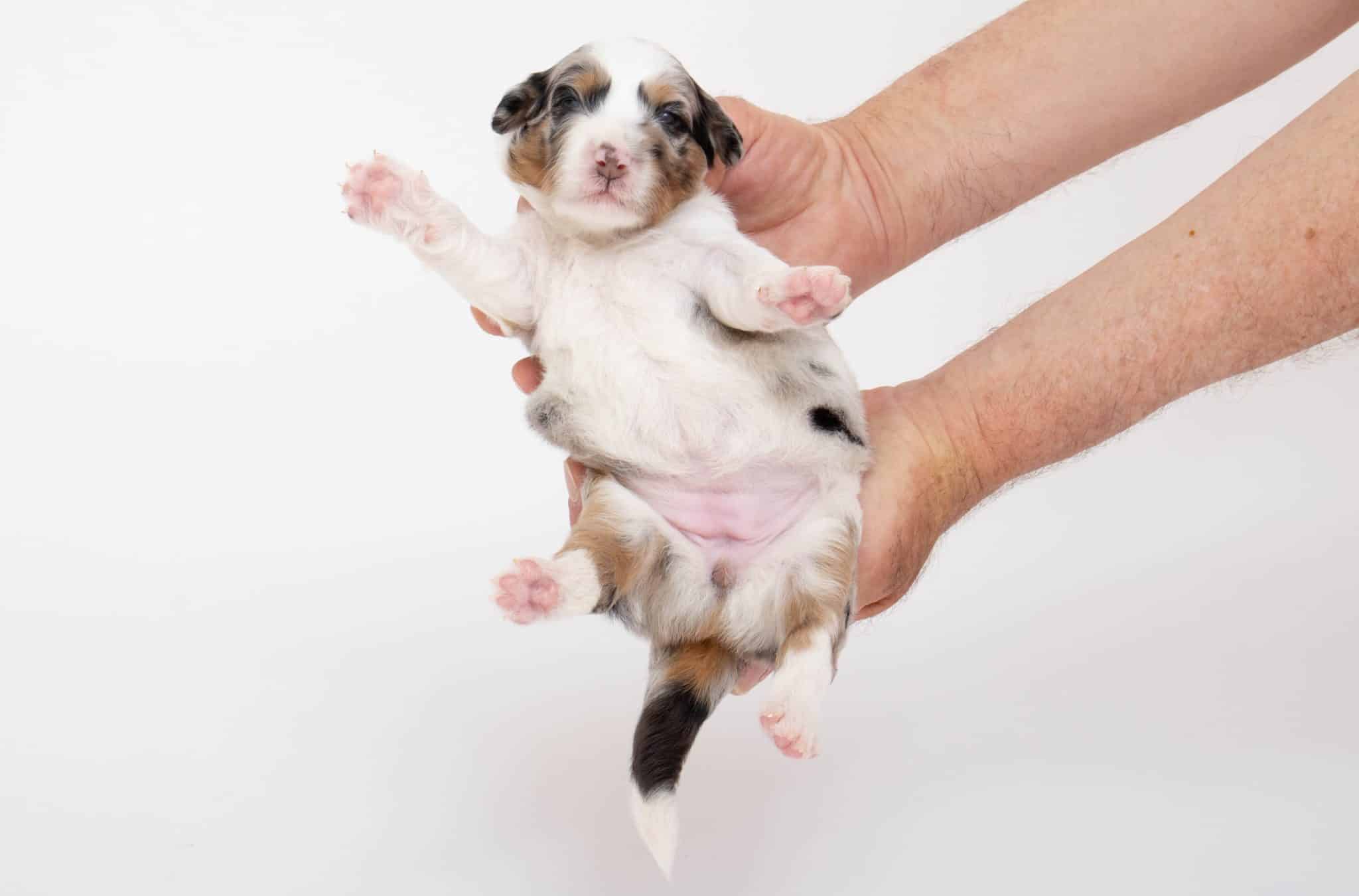 Stella is a female Blue Merle w/ White & Copper F1 AussieDoodle puppy.