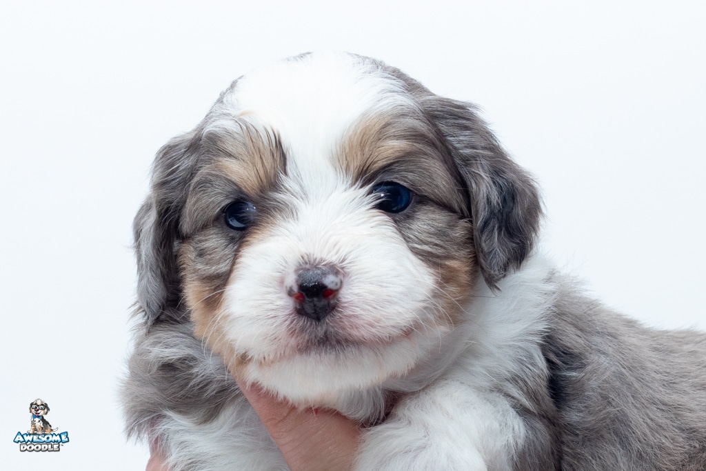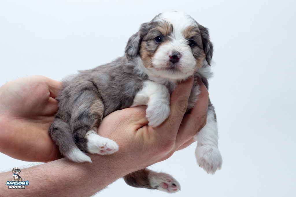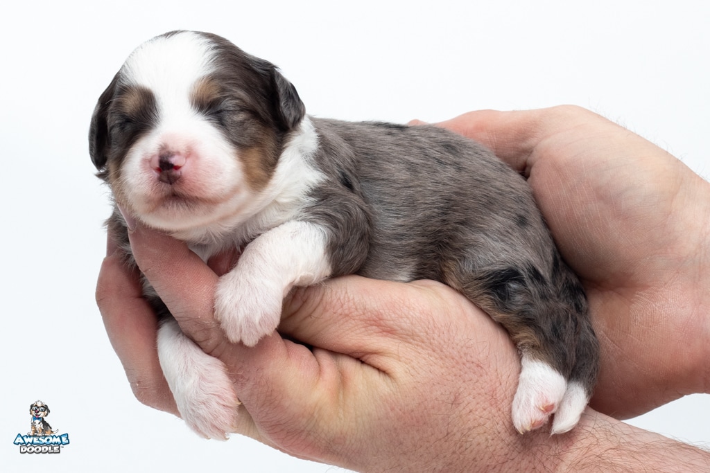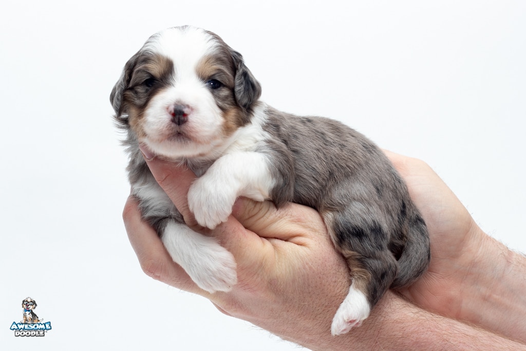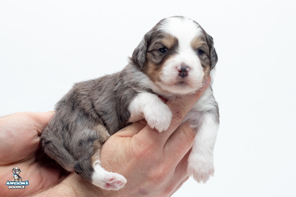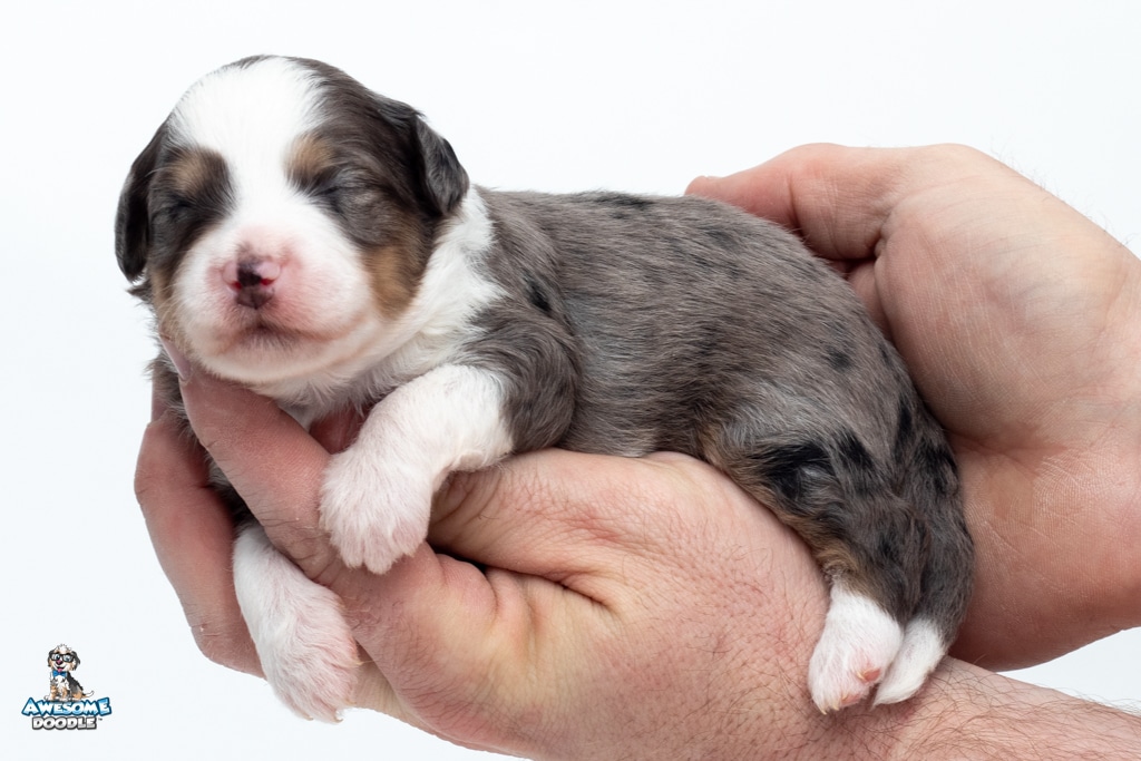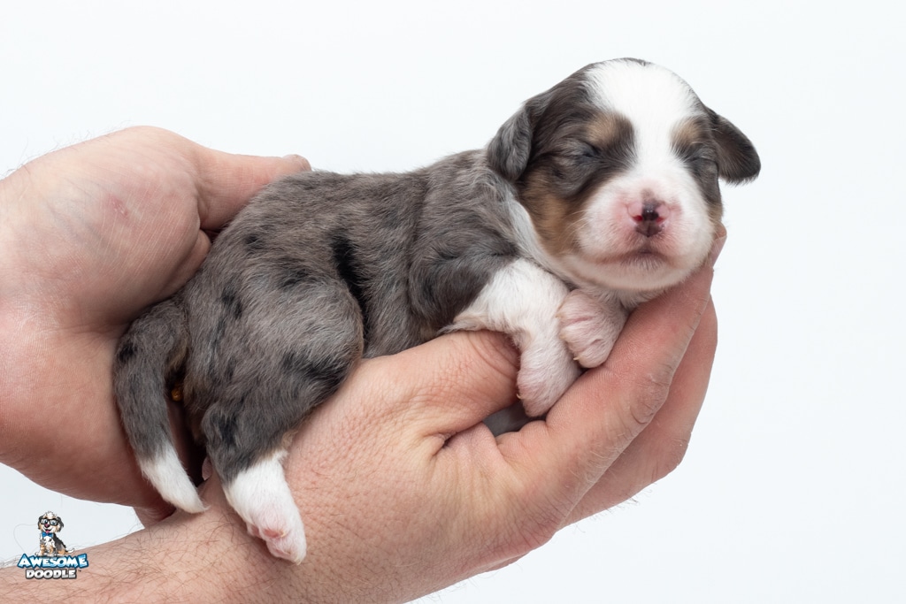 Zucchini is a female Blue Merle w/ White & Copper F1 AussieDoodle puppy.