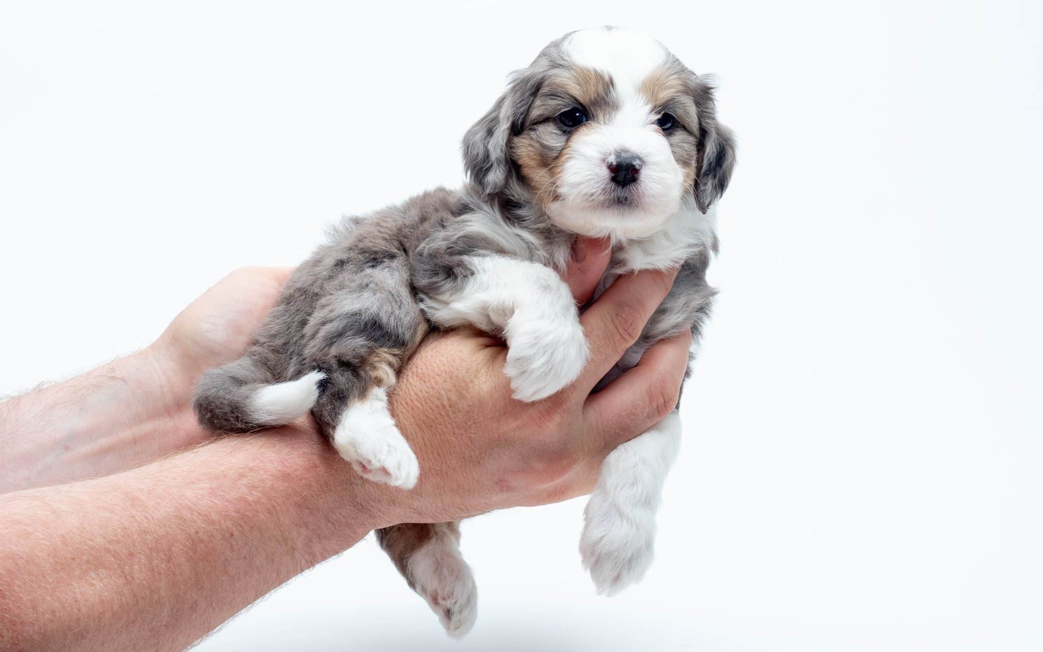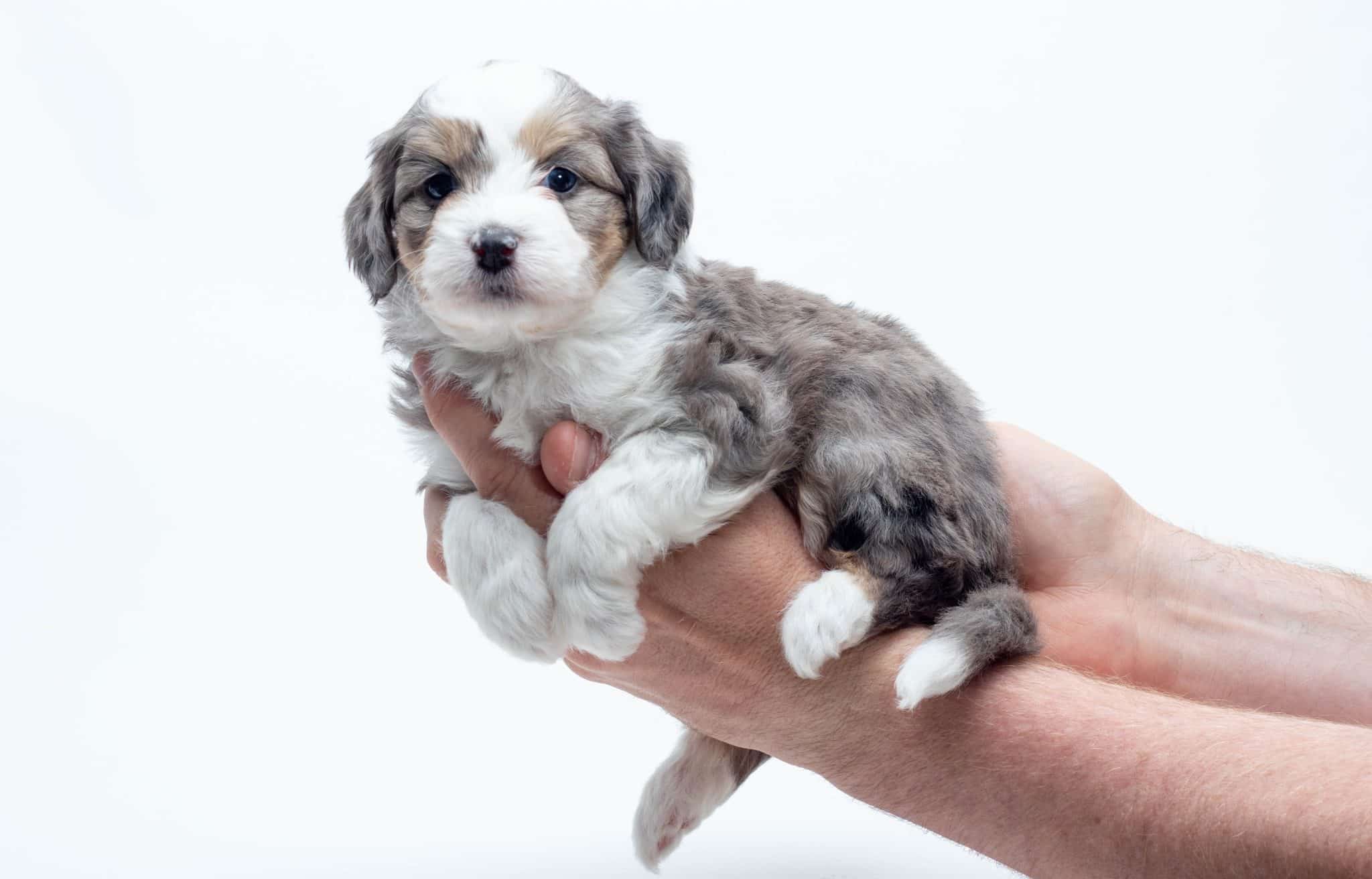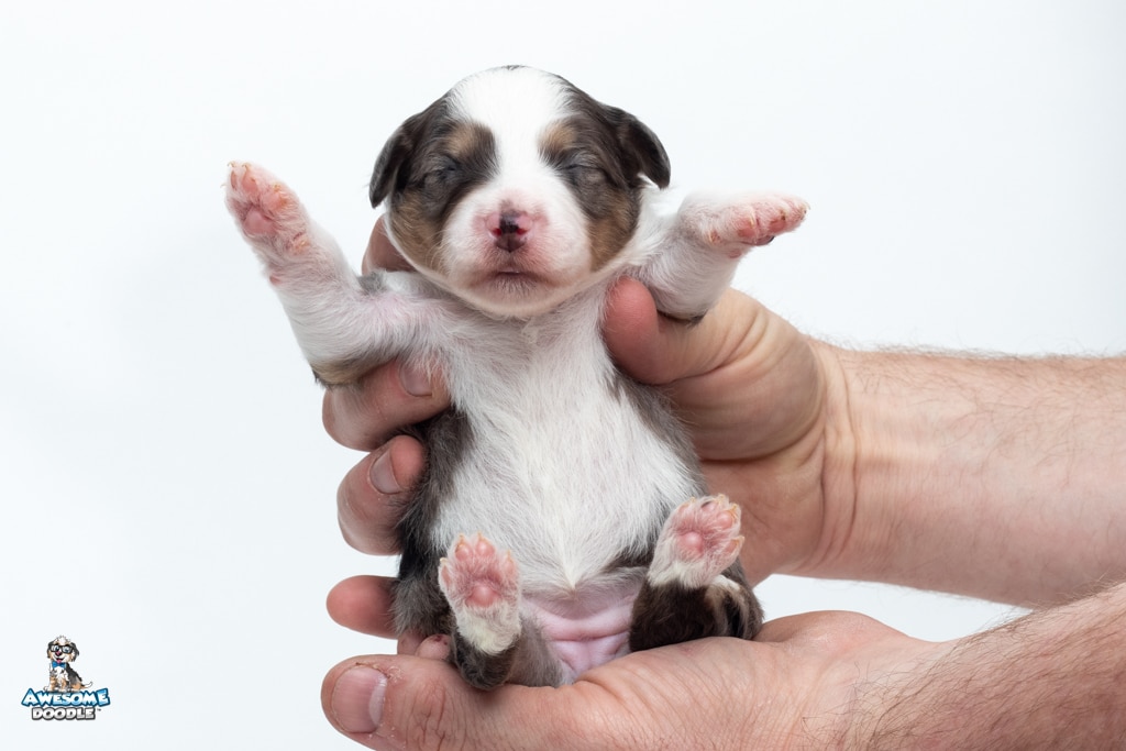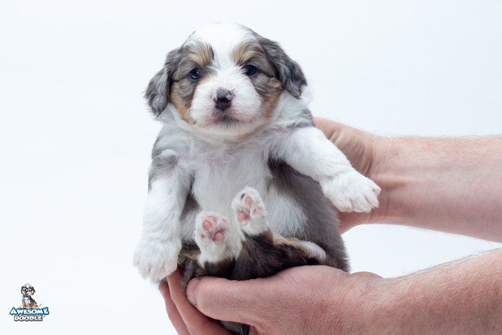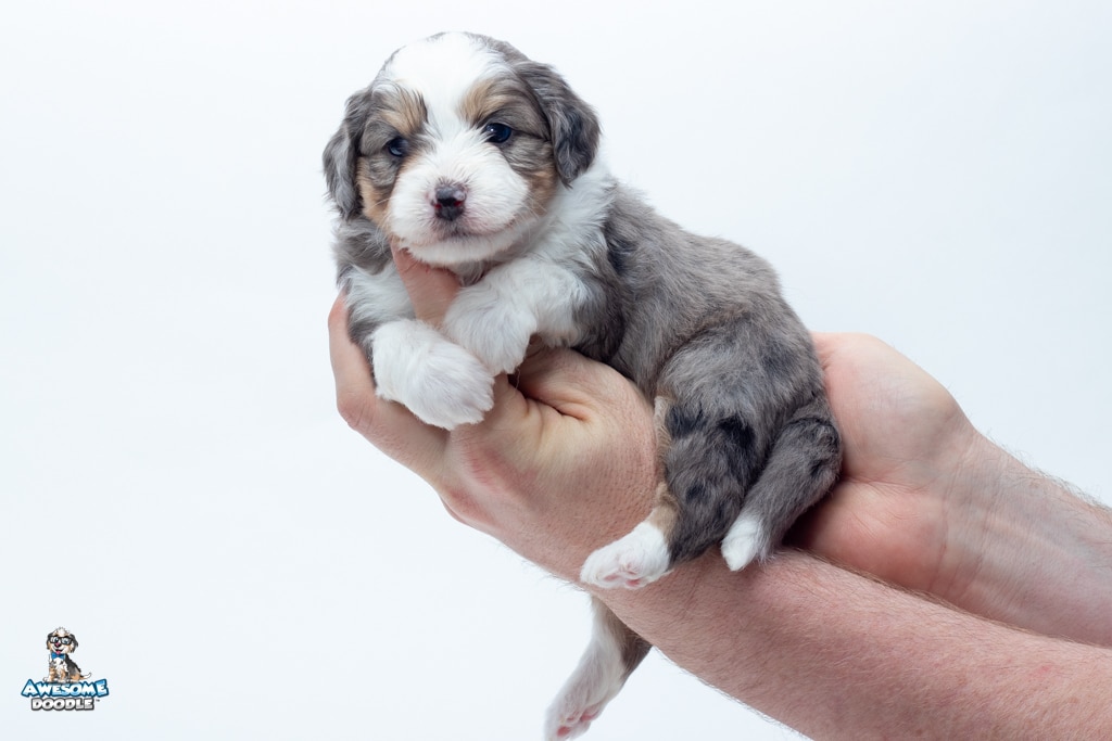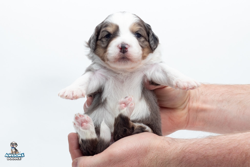 Zucchini is a female Blue Merle w/ White & Copper F1 AussieDoodle puppy.