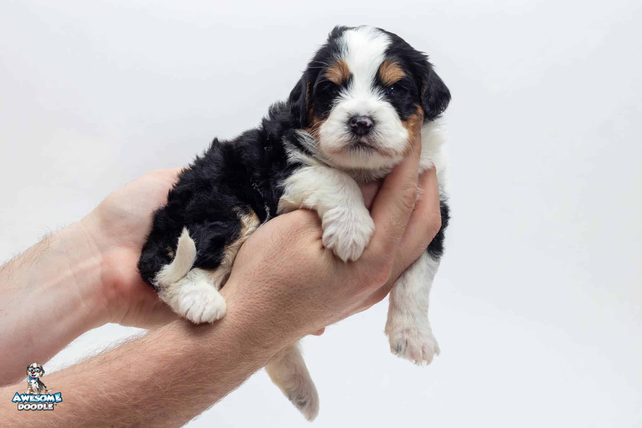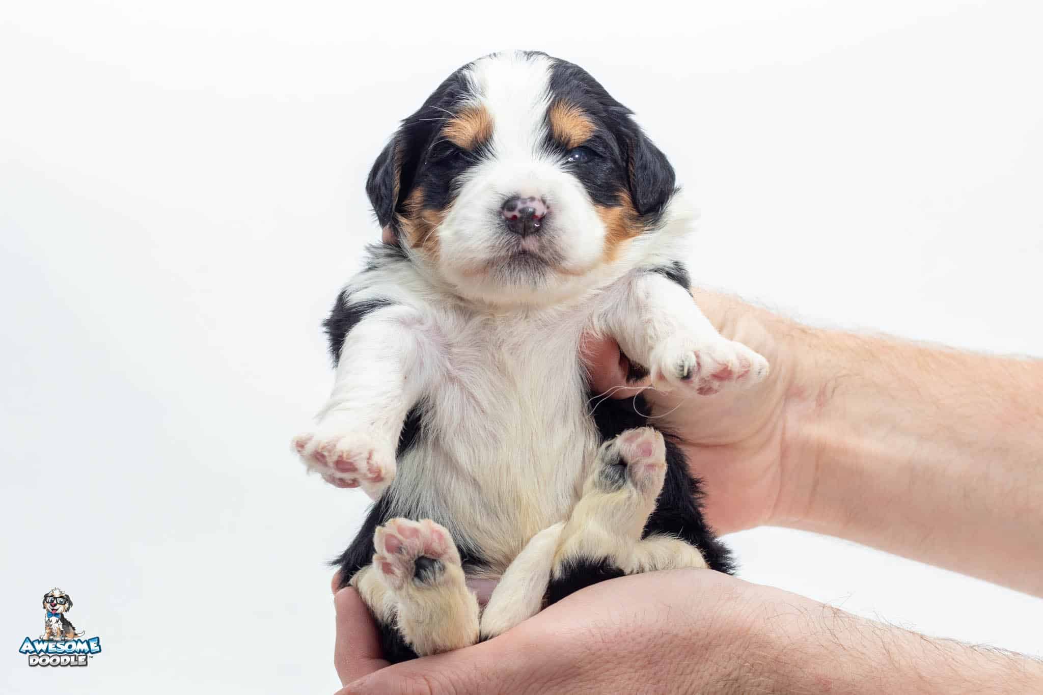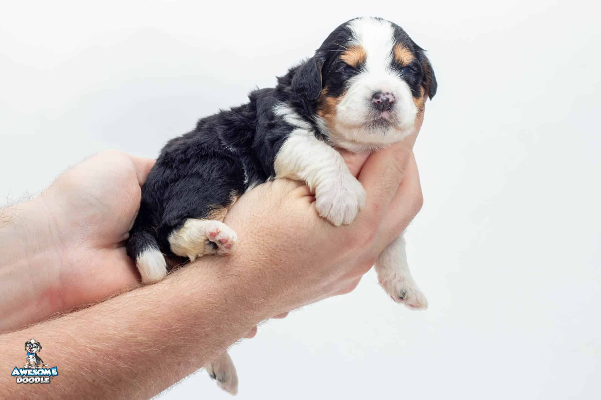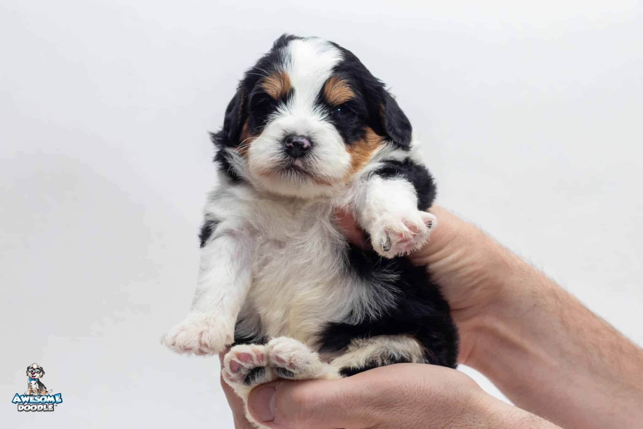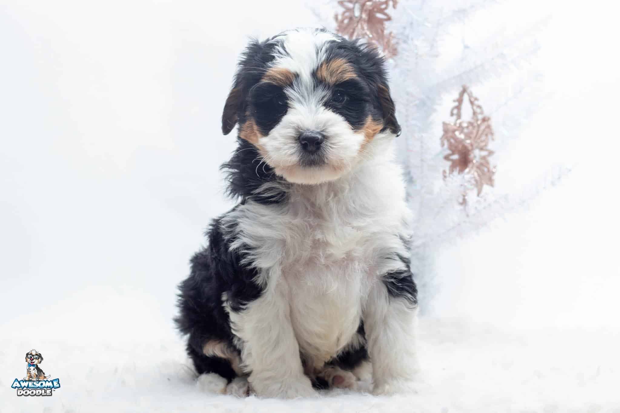 Tucker Moose Poppe is a male Black Tri-Color F2 BerneDoodle puppy.