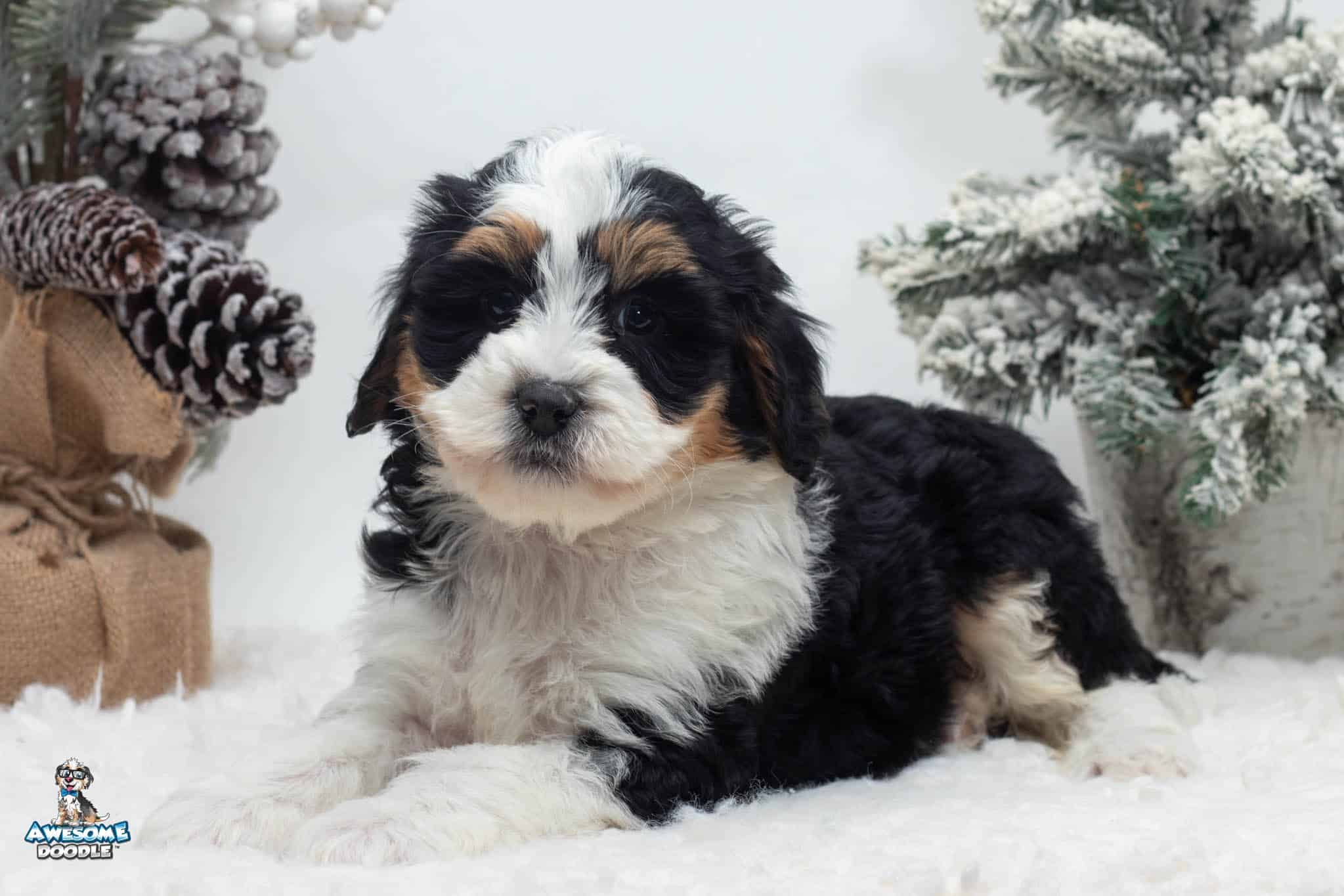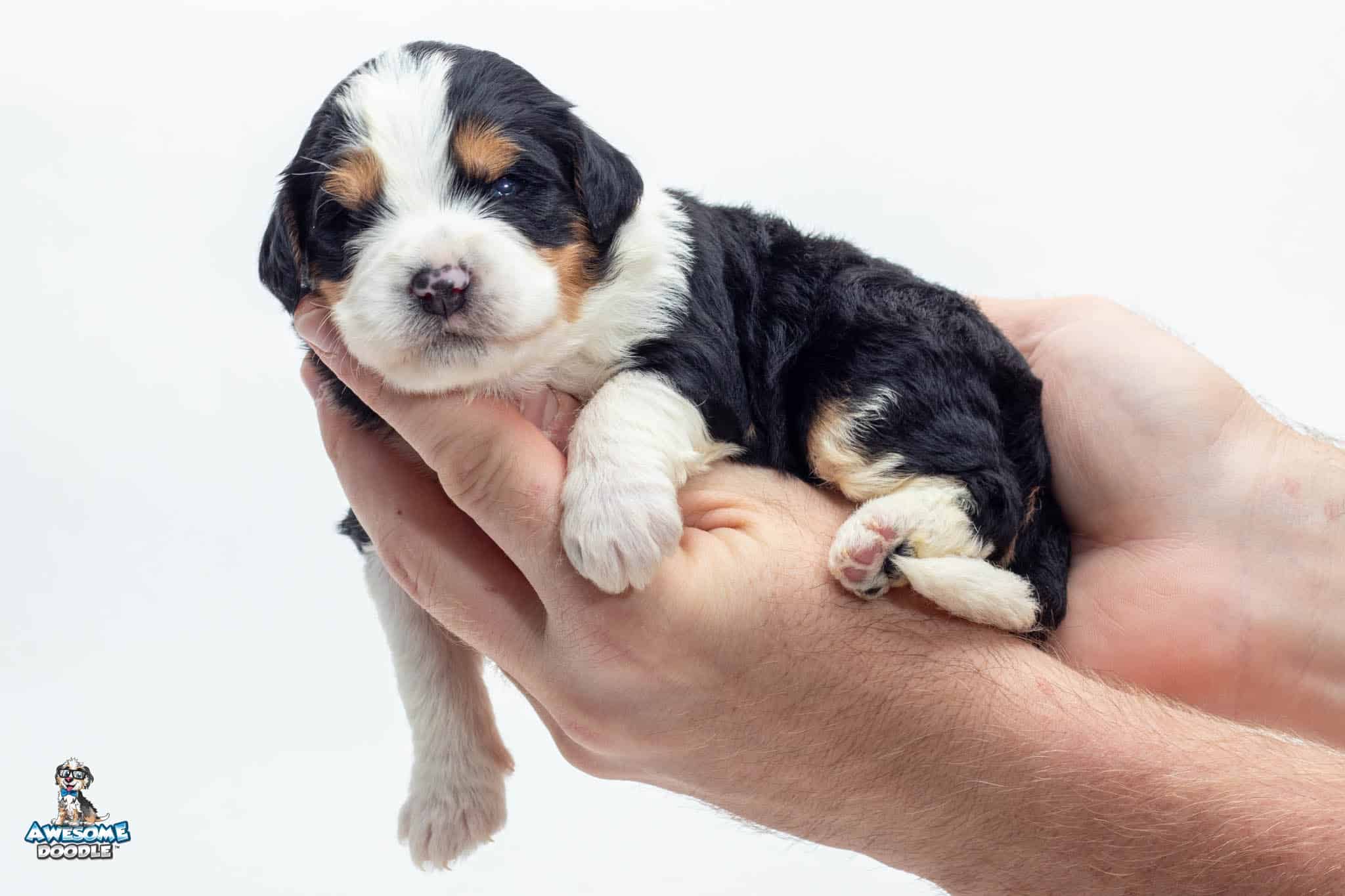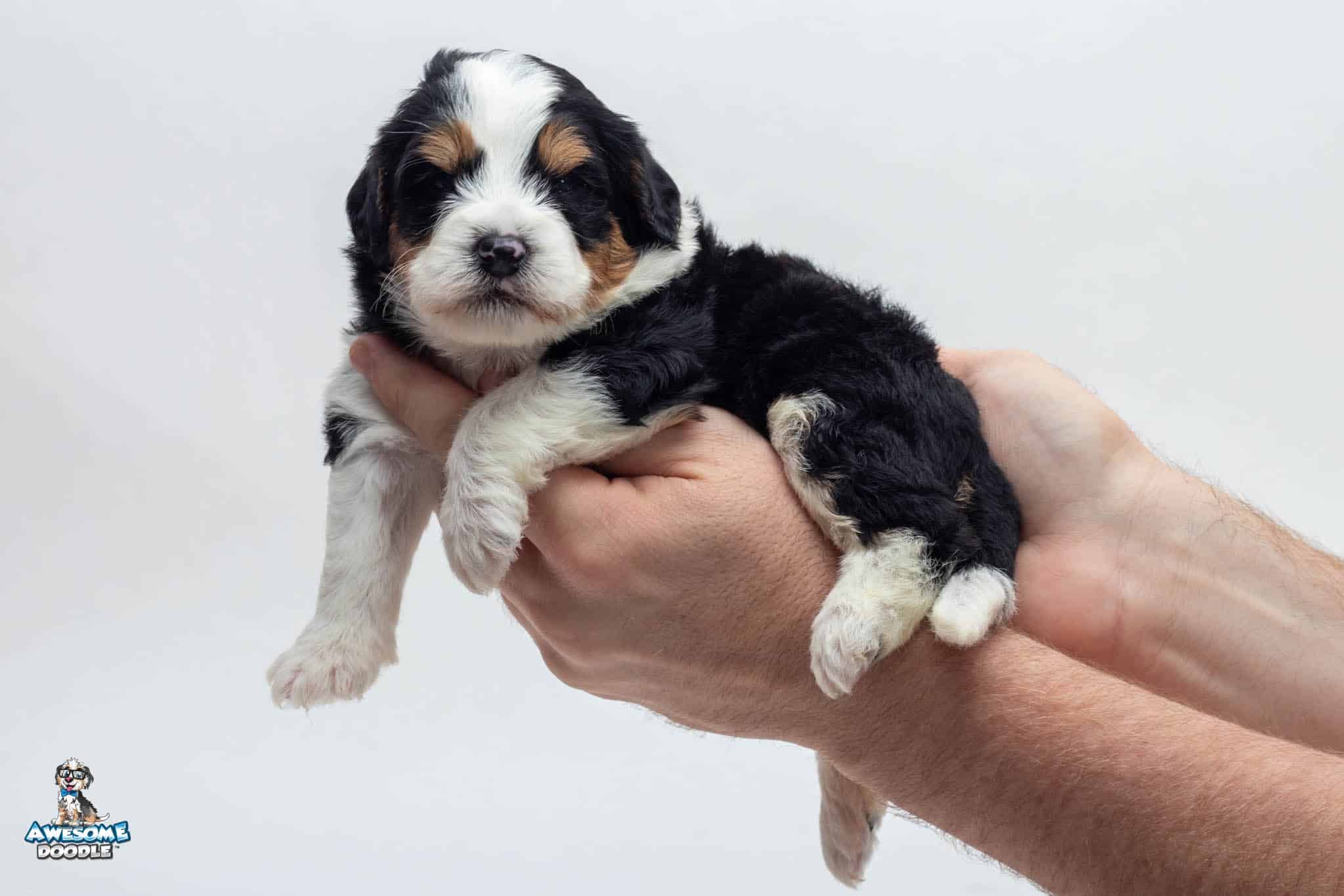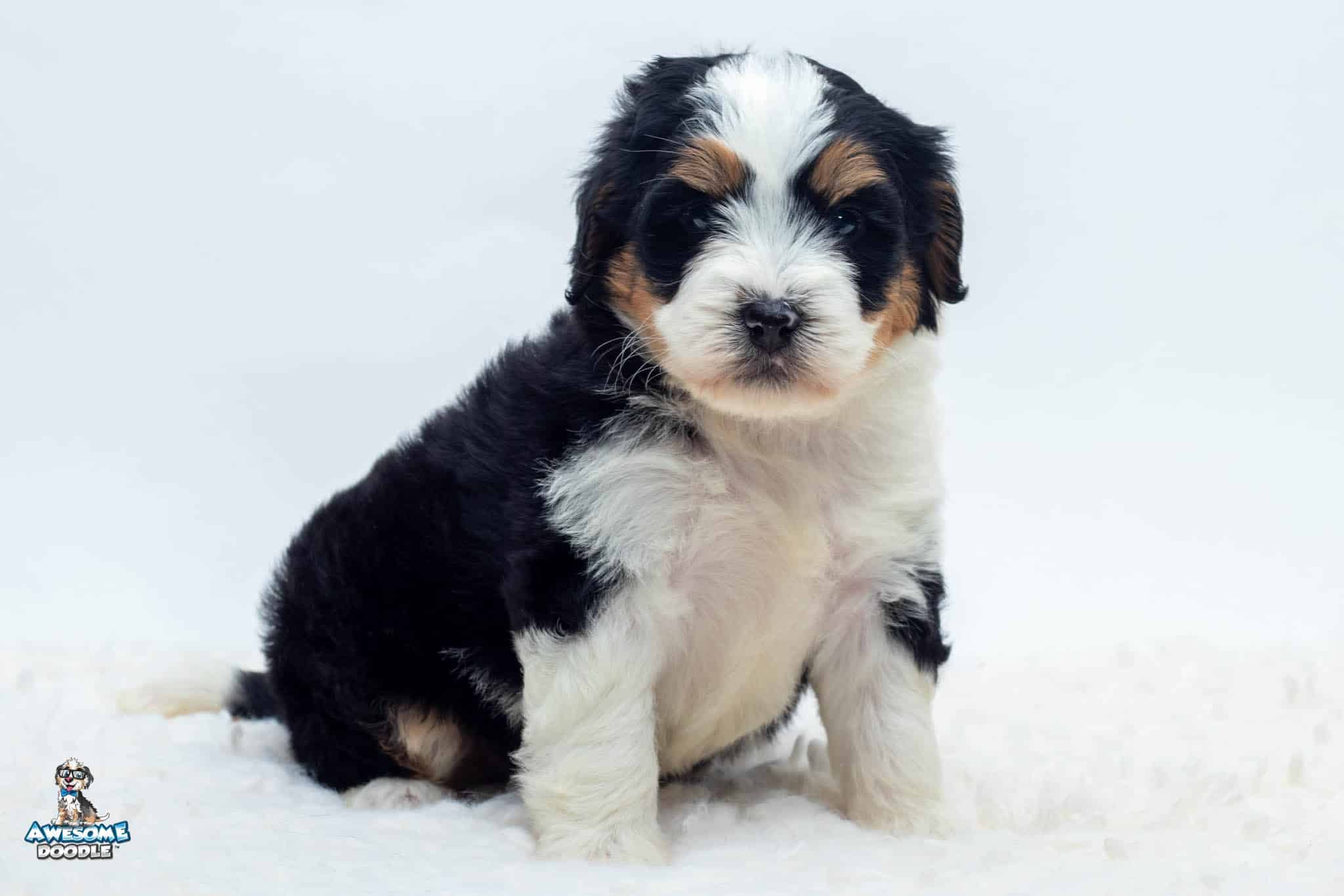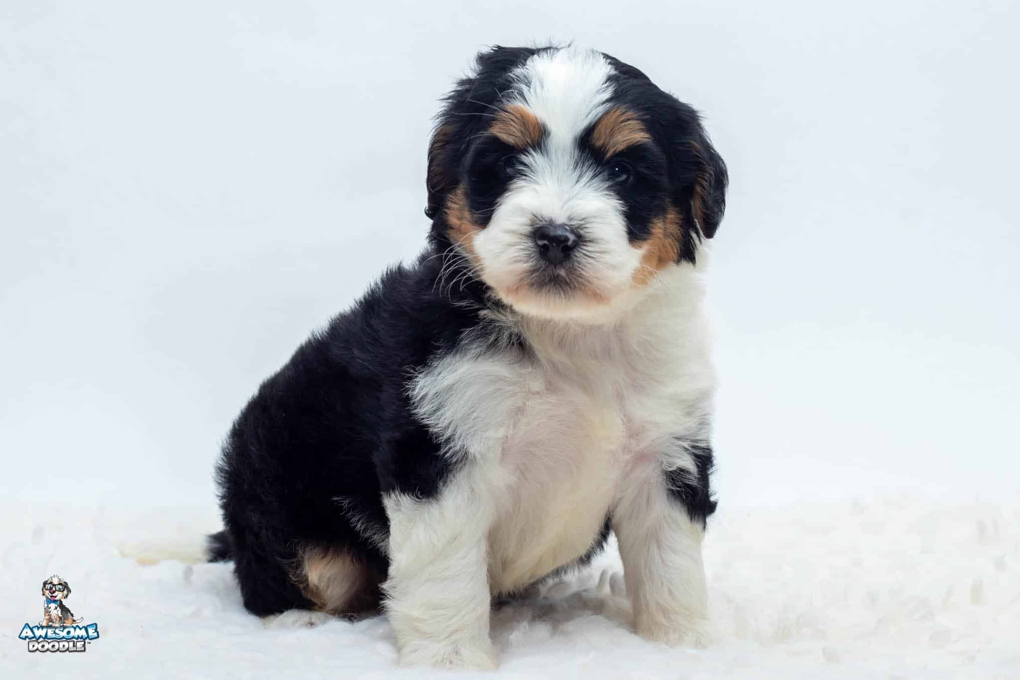 Tucker Moose Poppe is a male Black Tri-Color F2 BerneDoodle puppy.