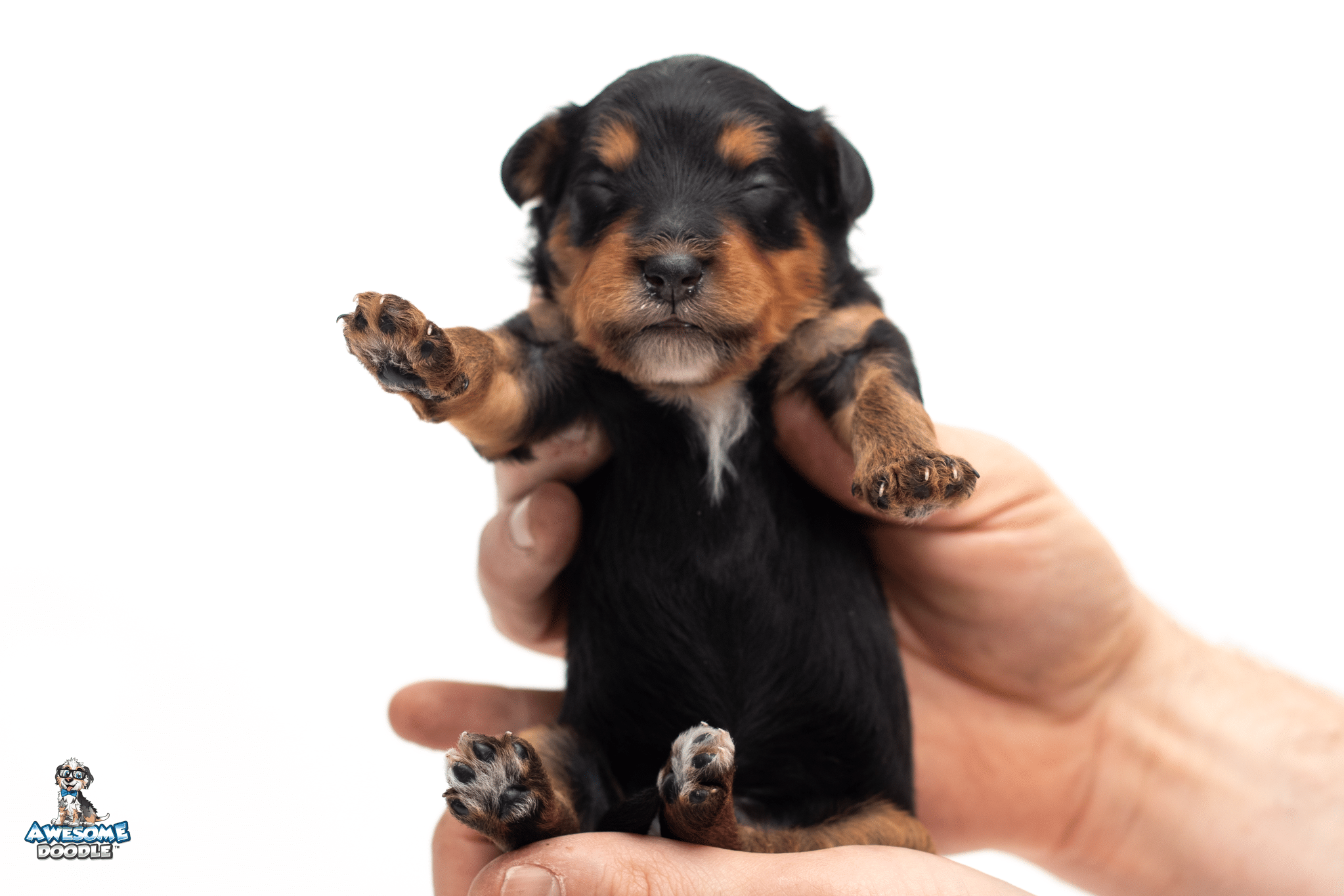 Rex is a male Black Phantom F1 AussieDoodle puppy.